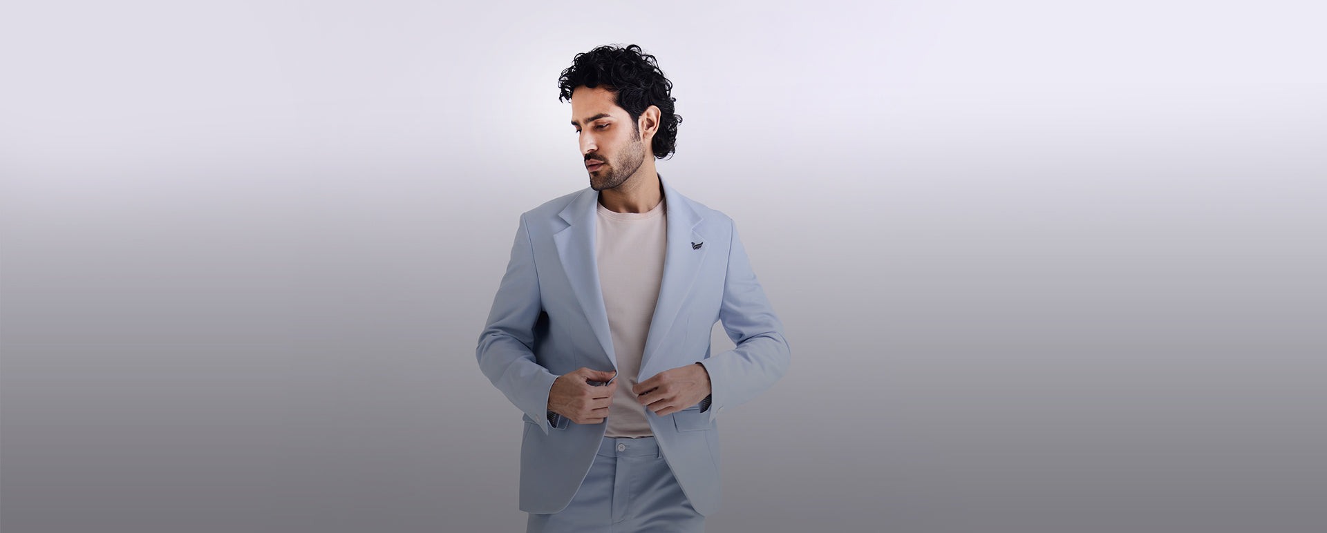 Formal Light Blue Textured Blazer - Blanc [₹ 9,479]