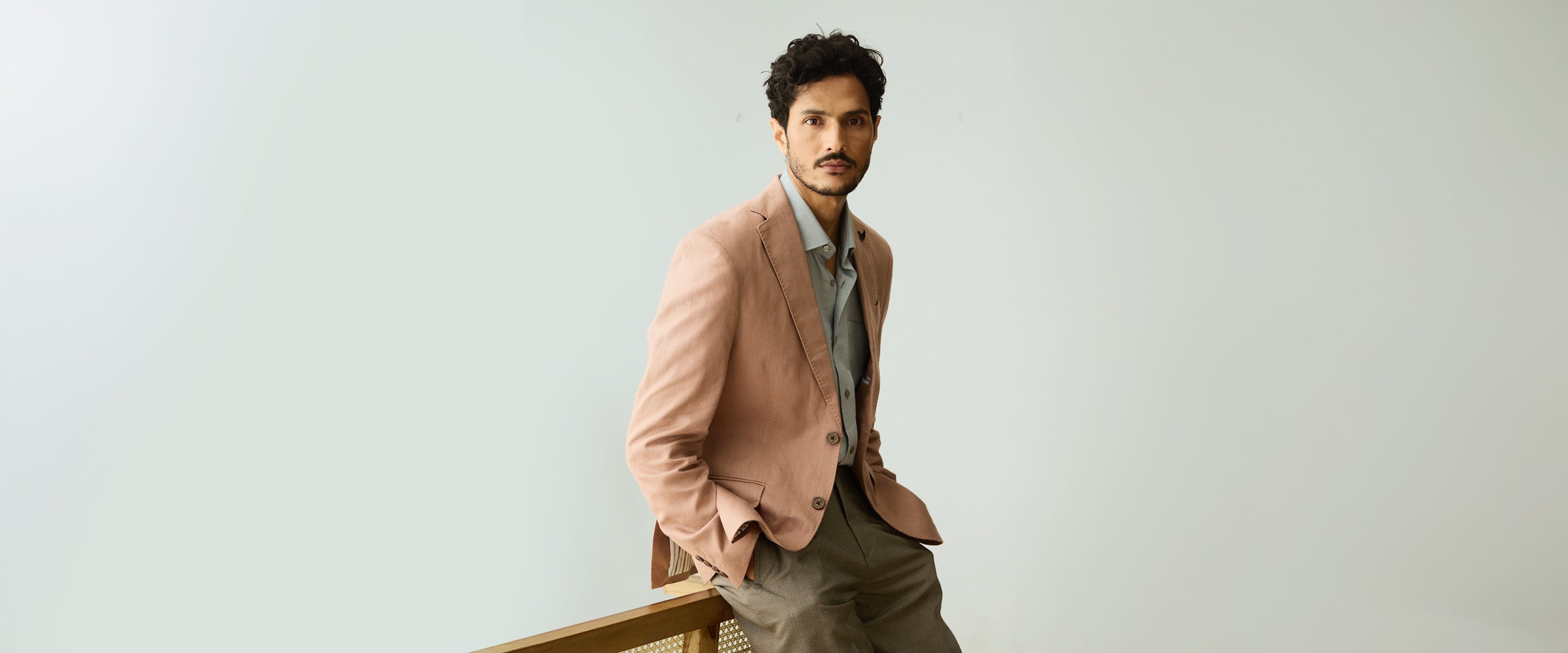 Linen Formal Pink Textured Blazer - Datsun [₹ 8,419]