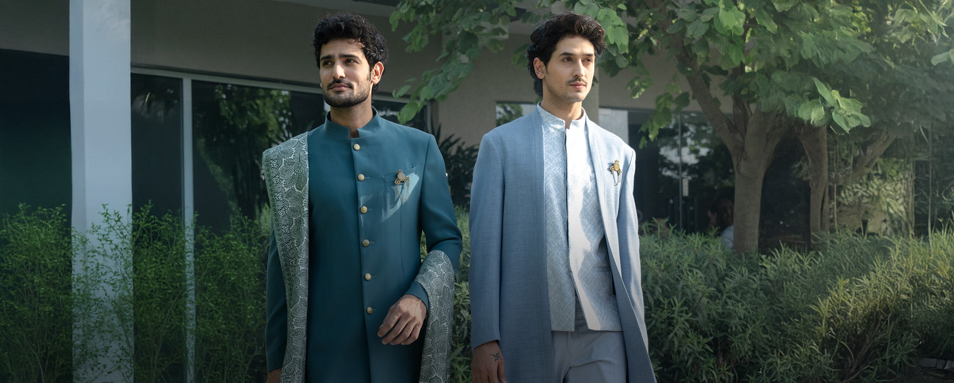 Blue Swarn Textured Achkan Set - Regal [₹ 8,999]