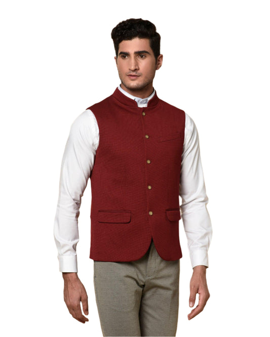 Bandhgala Formal Peach Textured Waistcoat - Sable [₹ 2,625]