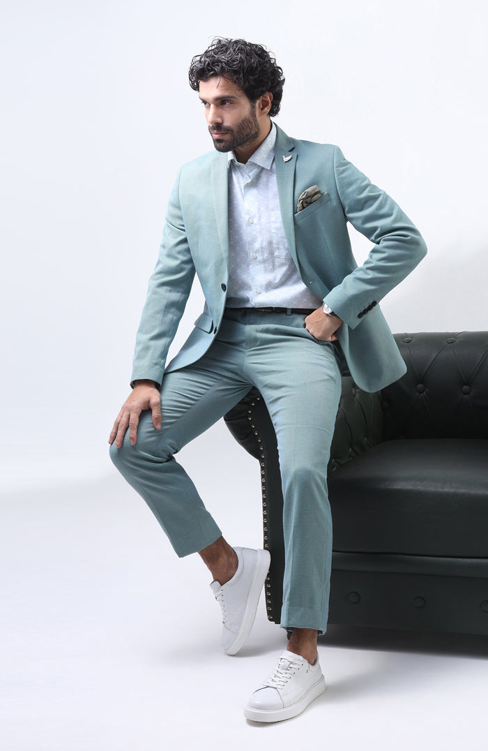 Two Piece Mint Textured Formal Suit - Orcus [₹ 11,999]
