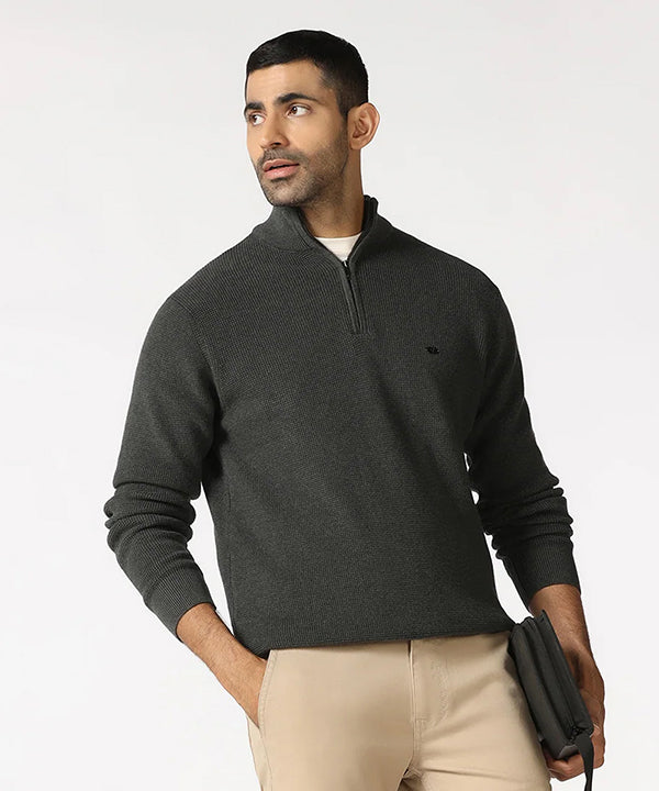 Charcoal High Neck Jacquard Sweater - Price [₹ 3,685]