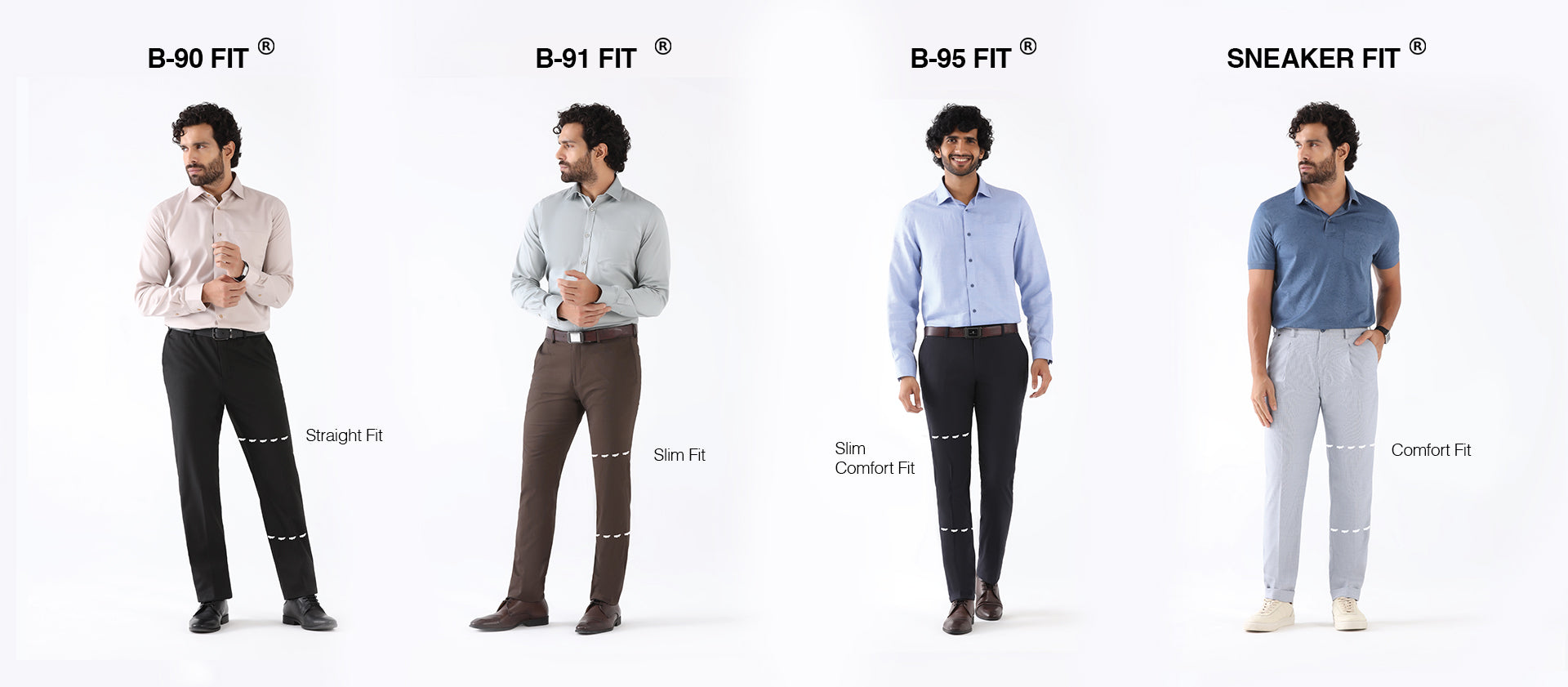 India’s most celebrated fit - B-95 trousers are where ease meets refinement. It sits naturally at the waist and tapers with precision from the knee, offering a clean, modern silhouette. Designed to complement all body types, this fit brings together comfort and confidence in one effortless choice.