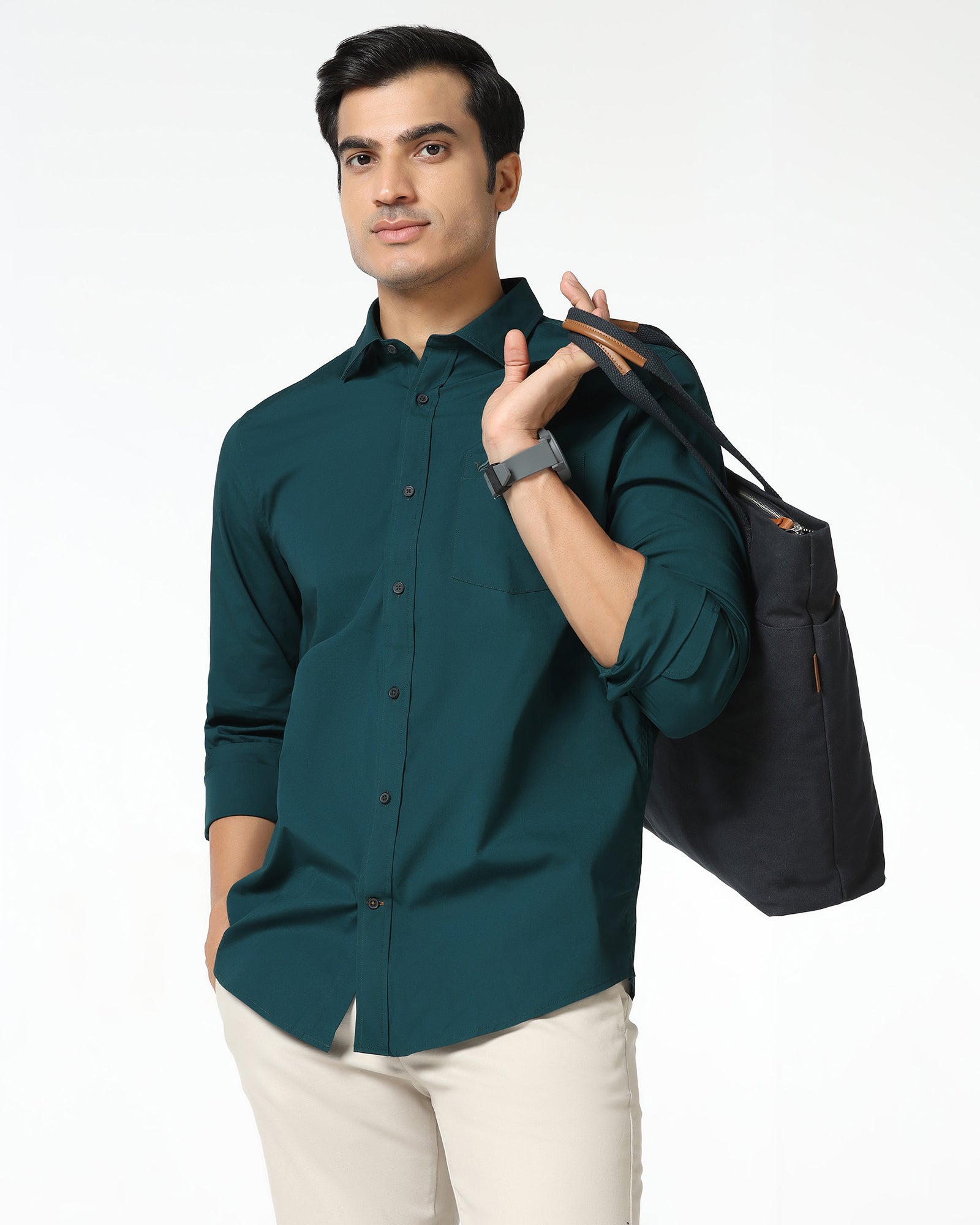 Transcend everyday refinement with the Casual Shirt, crafted from high-quality woven fabric with a modern slim fit with a twist. With the solid design combined with a stretchable feel and all the charm of a box placket, you'll find it's sophisticated but approachable. These casual shirts for men are a staple feature of modern menswear and can be worn in pretty much any scenario.