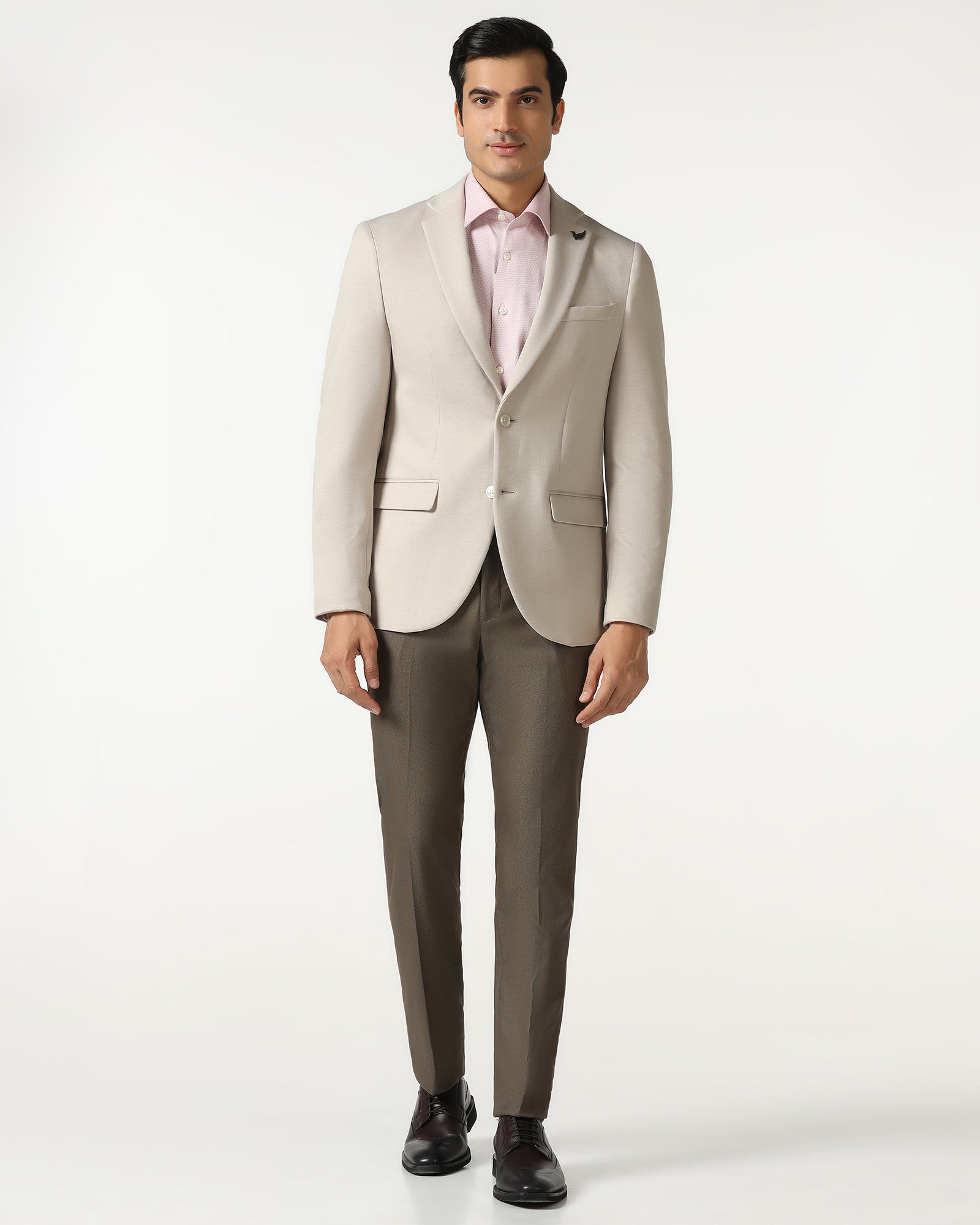 • For an effortless boardroom impact, pair this summer blazer for men with a Blackberrys solid shirt and trousers.