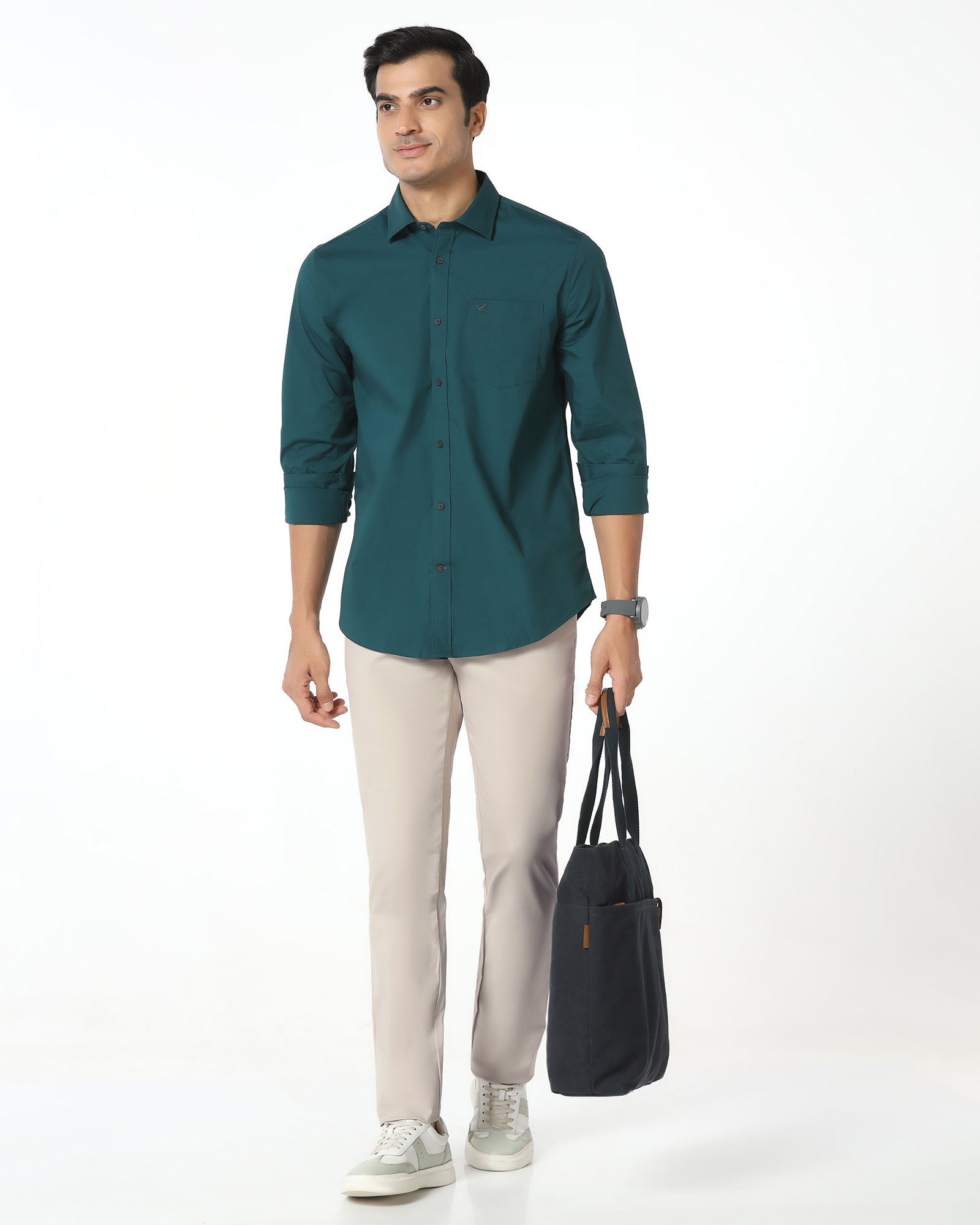 Inspired by the formidable strength of Earth, the designers crafted these Casual Trousers made of textured dobby woven fabric that element of class without going over the top. The trousers have a B-91 (slim) fit and a mid-rise stretchy waist that is not too tight and provides you with that tailored fit without being uncomfortable. A wardrobe essential, these cotton trousers for men are perfect for all occasions, keep you looking chic and provide versatility.