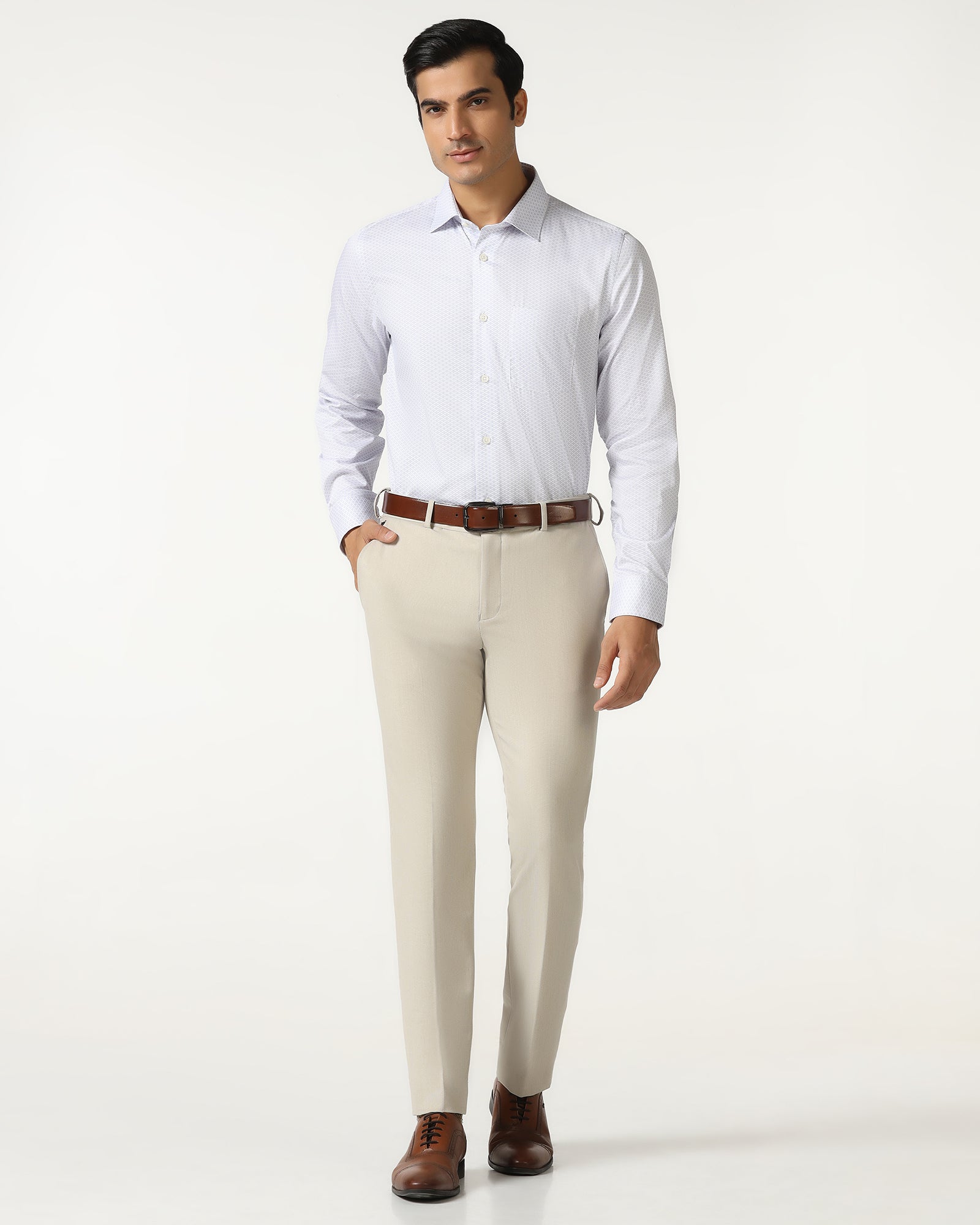 You will be moving in style with this expertly crafted for a crisp, structured look, and these Formal Trousers will make an impression. Constructed from a woven fabric that offers subtle texture and stretch, you will have comfort as well as ease of movement. These stretchable trousers for men embrace a B-91 (slim) fit and low-rise waist, and with a clean line, they redefine flexible formal trousers with modern-day precision.