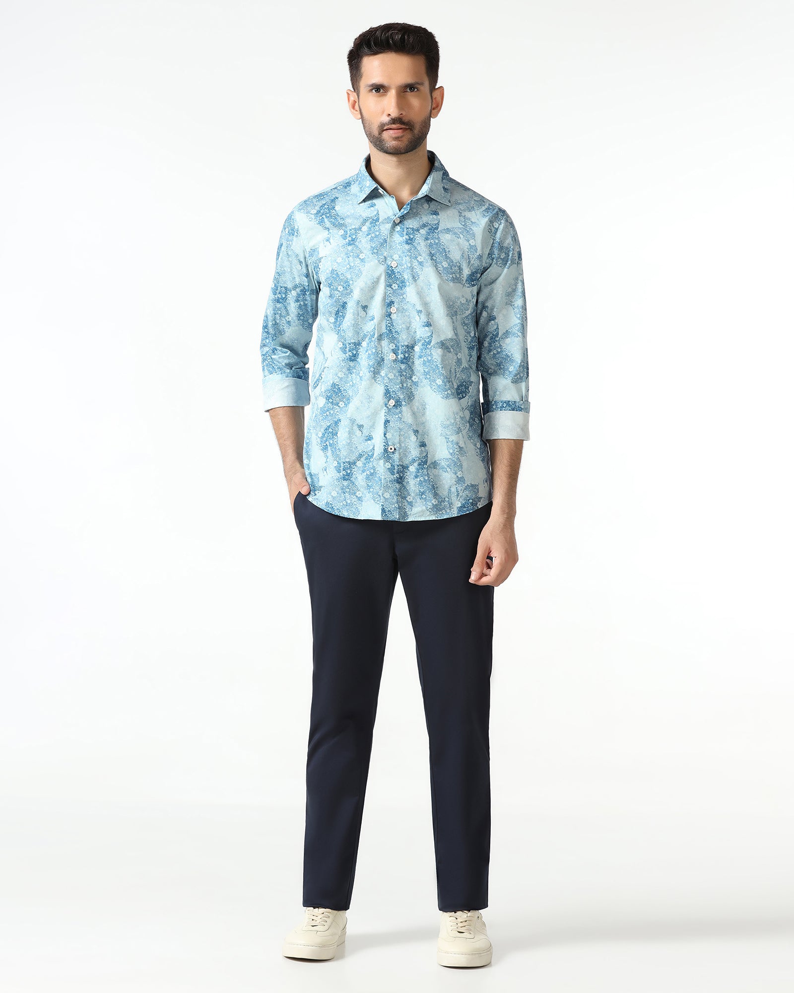 Command attention with refined ease in this Casual Shirt crafted from lustrous woven fabric and tailored to a sleek slim fit. The self-fold placket adds a clean, contemporary and structured finish, while the breathable structure ensures comfort throughout your workday. Perfectly suited for both office hours and evening engagements, it offers understated elegance with every wear.