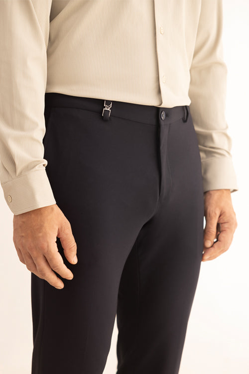These Formal Trousers are crafted using a premium woven fabric with a muted microstructure for added depth, presenting a refined elegance. Features a B-95 (slim comfort) fit and stretch waist for added comfort while maintaining structure in these stretchable formal pants. With a mid-rise waist and tapered bottom, it ensures a streamlined look, with modern lines that instil confidence and entrepreneurial style.