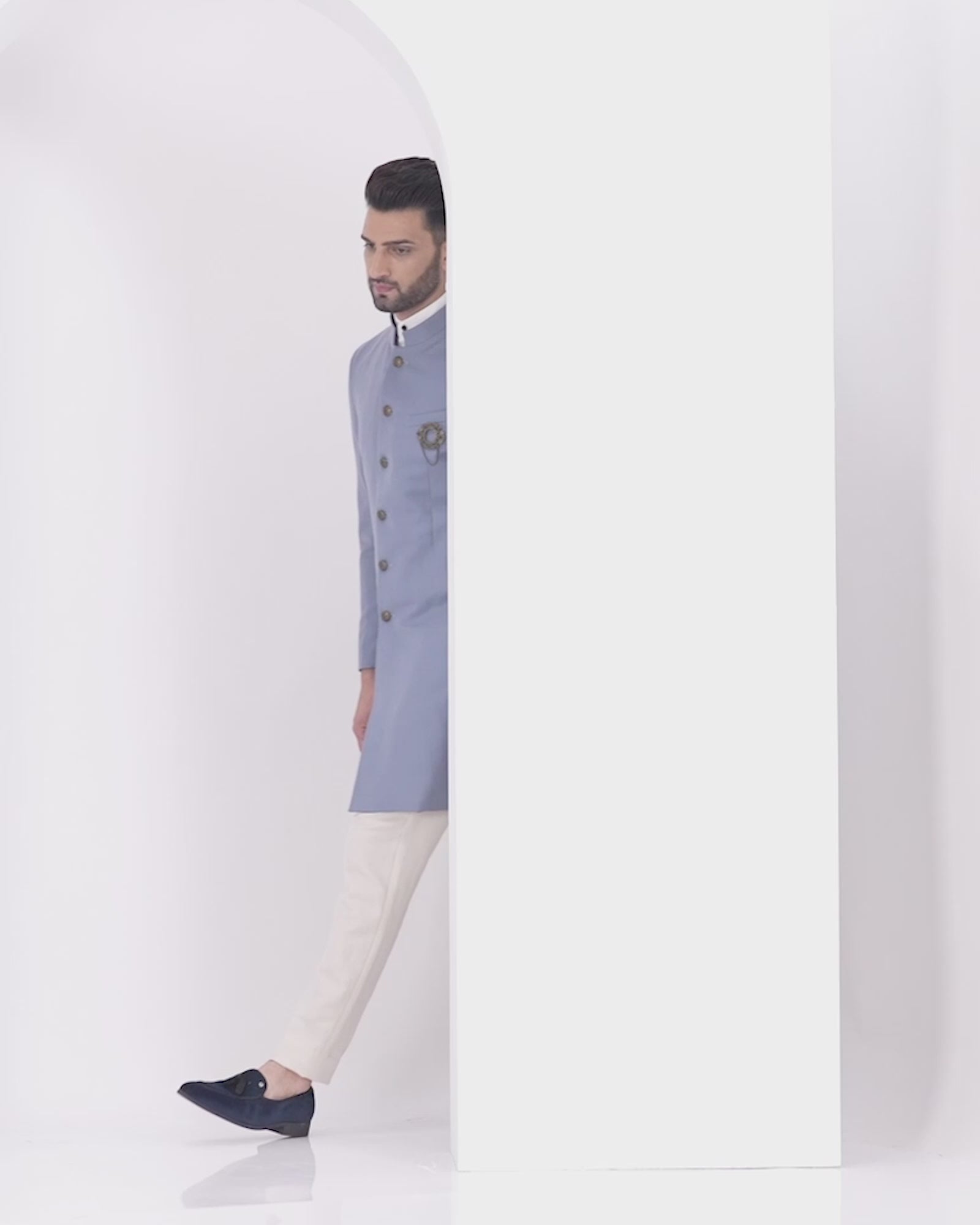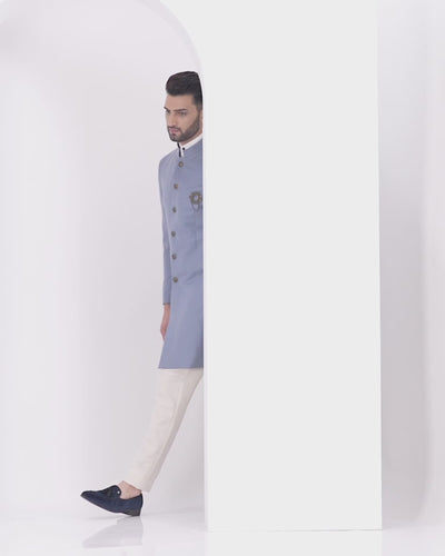 Blue Swarn Solid Achkan Set - Bruse