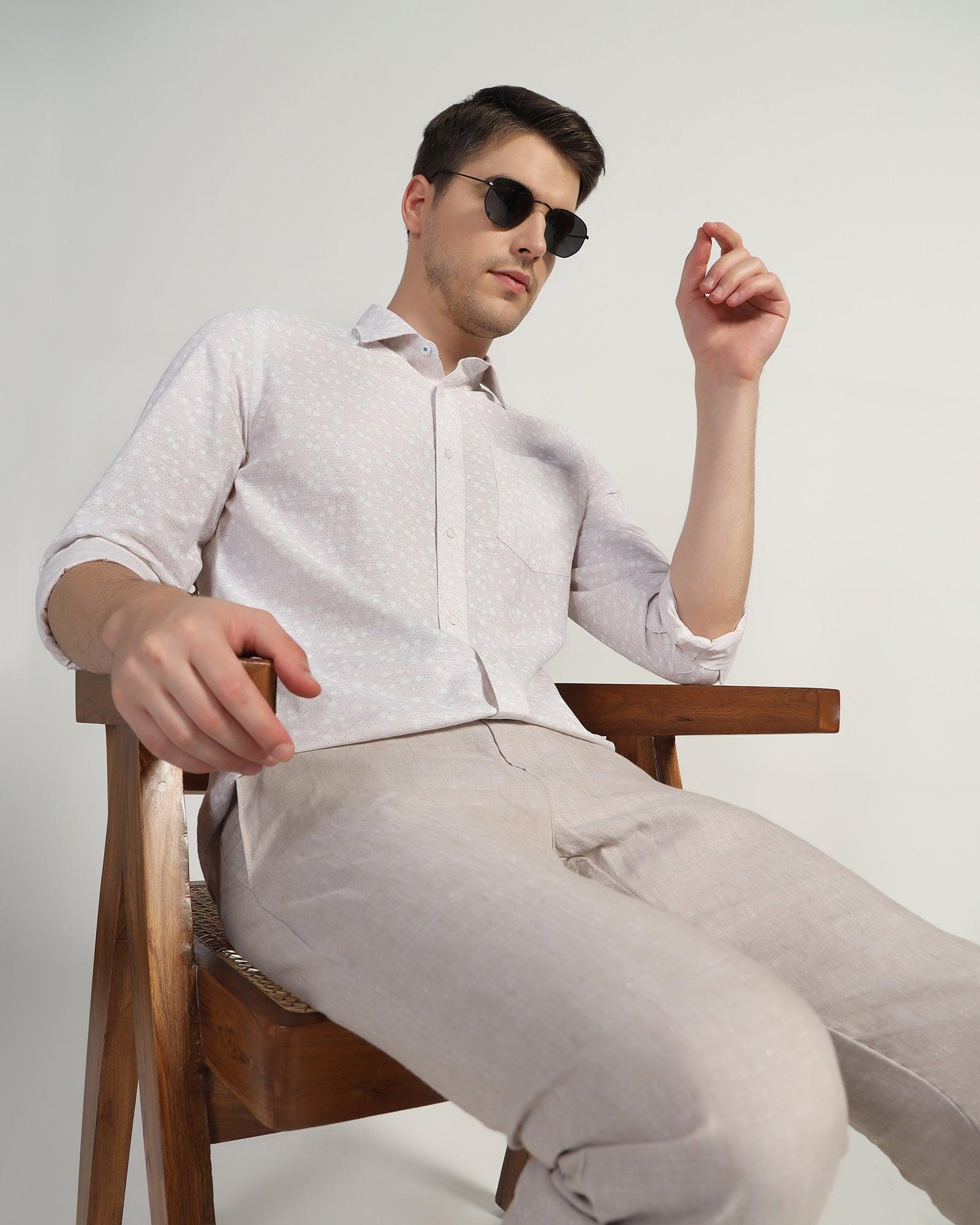 Elevate your wardrobe with this Beige Printed Shirt. Crafted for the modern man, this shirt has a printed pattern that effortlessly combines versatility with trendsetting fashion. The India slim-fit design ensures a tailored look that exudes confidence. The full sleeves add a touch of refinement, making these shirts suitable for any occasion. The button-down design adds a classic element, while the soothing beige hue enhances the shirt's overall elegance.