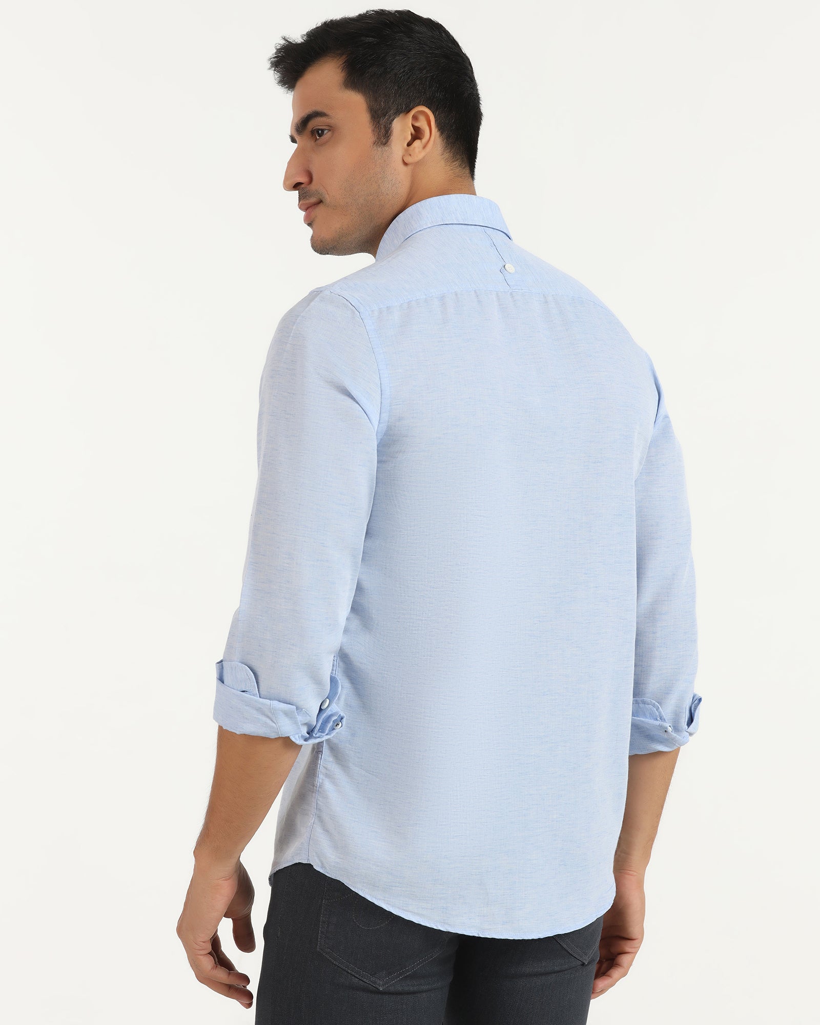 Casually comfortable – upgrade your wardrobe with this Blue Semi Cut Casual Shirt. Made using pure flax linen and knit-based fabric, this slim-fit shirt provides the best degree of breathable support combined with a cool feel of comfort for the whole day round. The full sleeves and a pocket across this semi cut-away casual shirt for the boys inject a classic touch of romance into these outfits. This casual shirt is ideal for casual wear and semi-formal occasions.