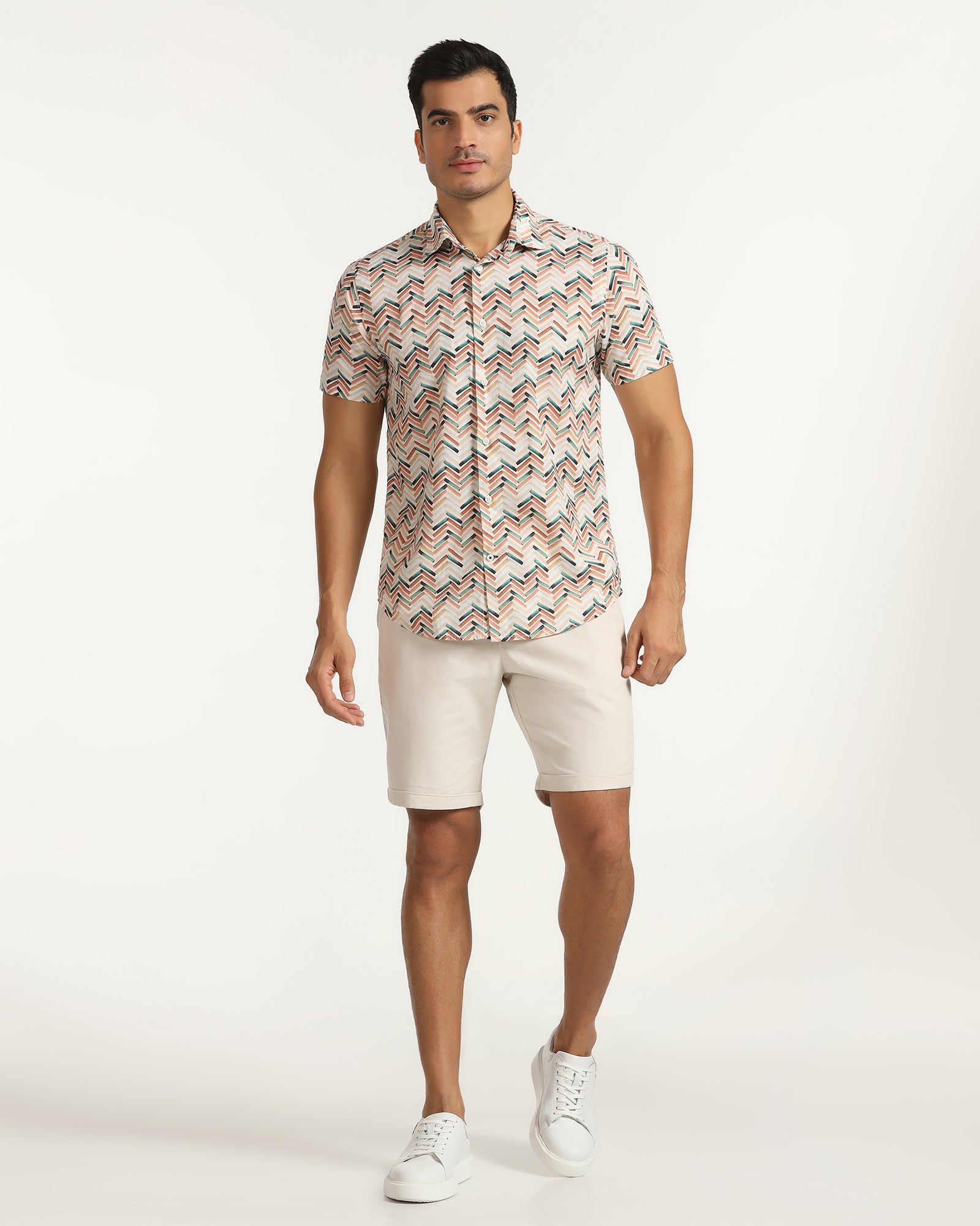 Casual Half Sleeve Beige Printed Shirt - Alba