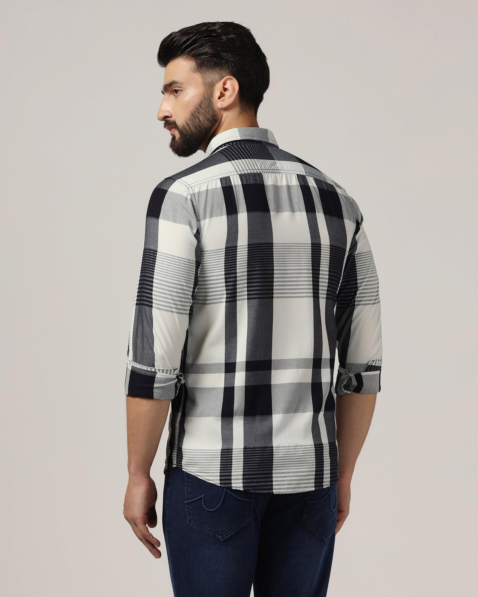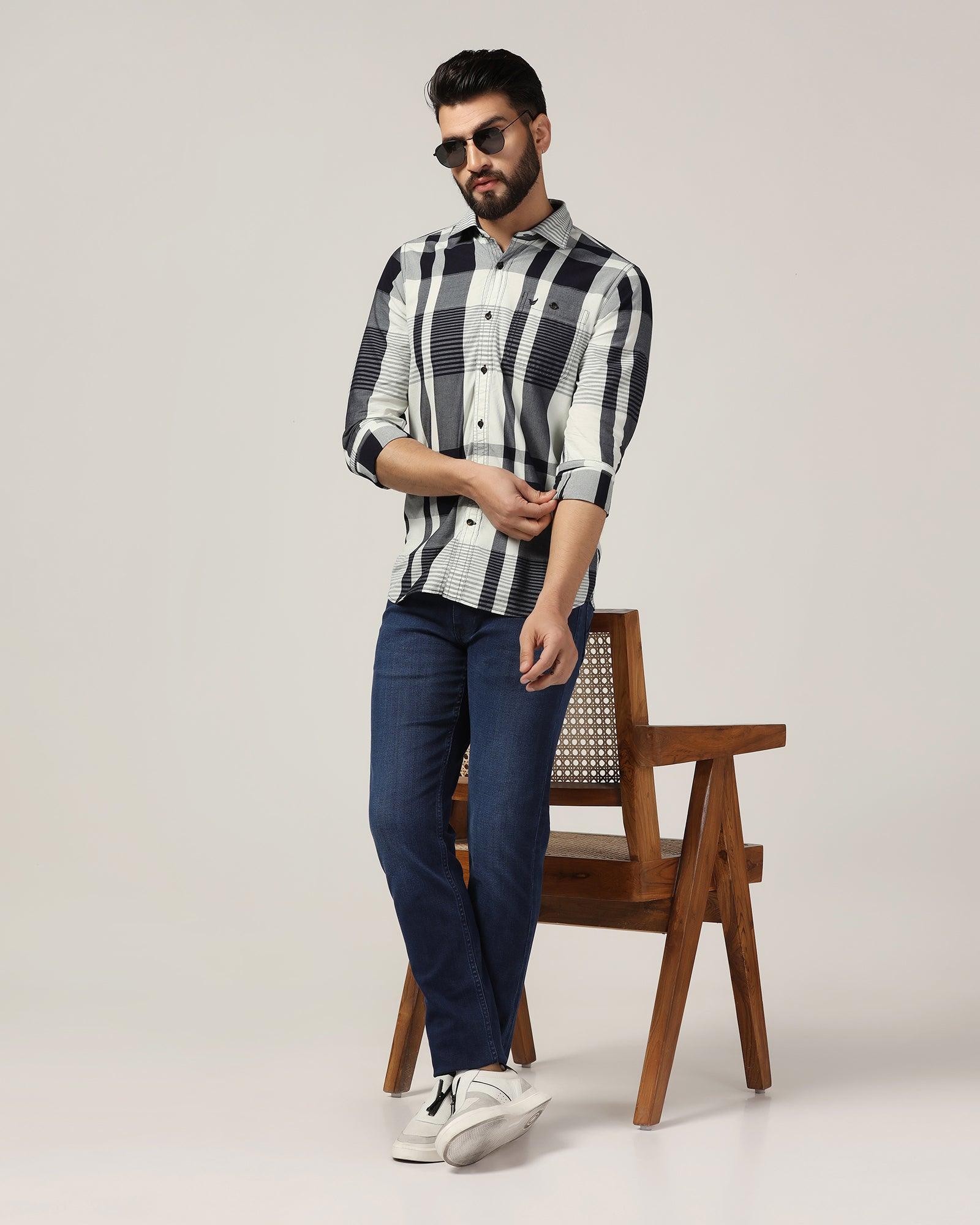Unleash your inner gentleman with the Indigo Check Shirt. The eye-catching check pattern adds panache, while the rich indigo colour exudes timeless charm. Meticulously tailored to perfection in India Fit, this shirt ensures a sleek silhouette, complemented by full sleeves for year-round versatility. The button closure adds a polished finish, making it ideal for casual and semi-formal occasions.