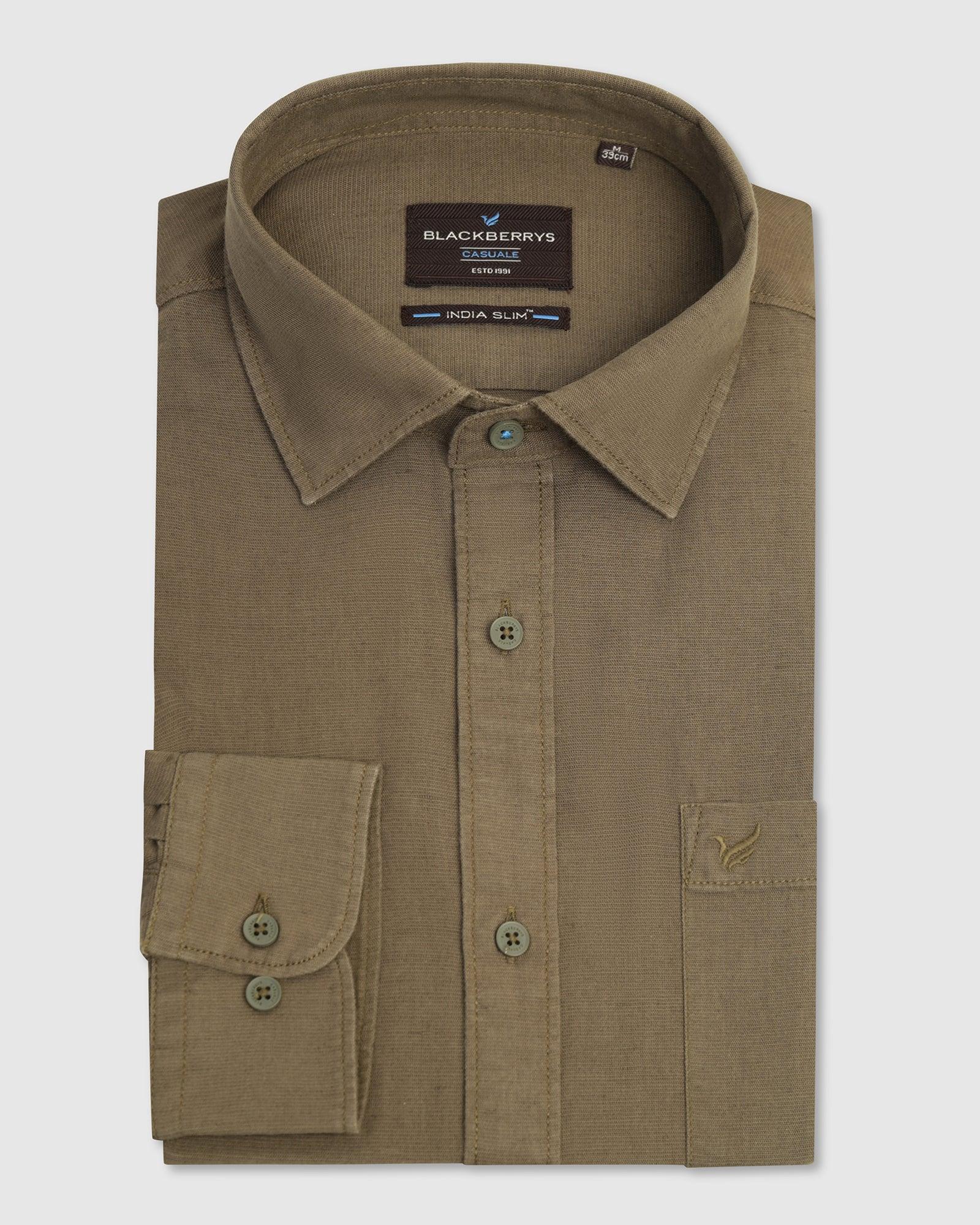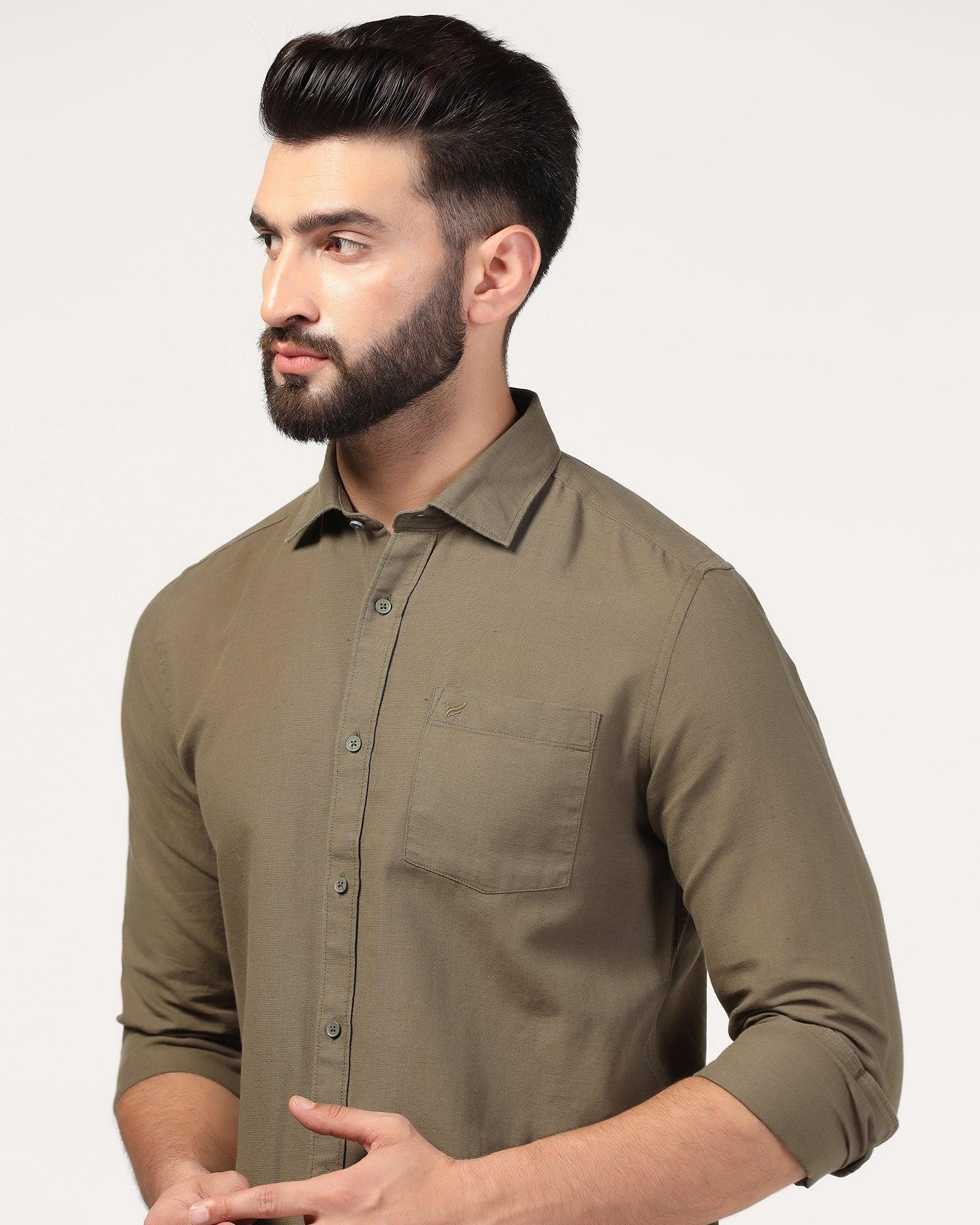 Casual Olive Solid Shirt - Lang