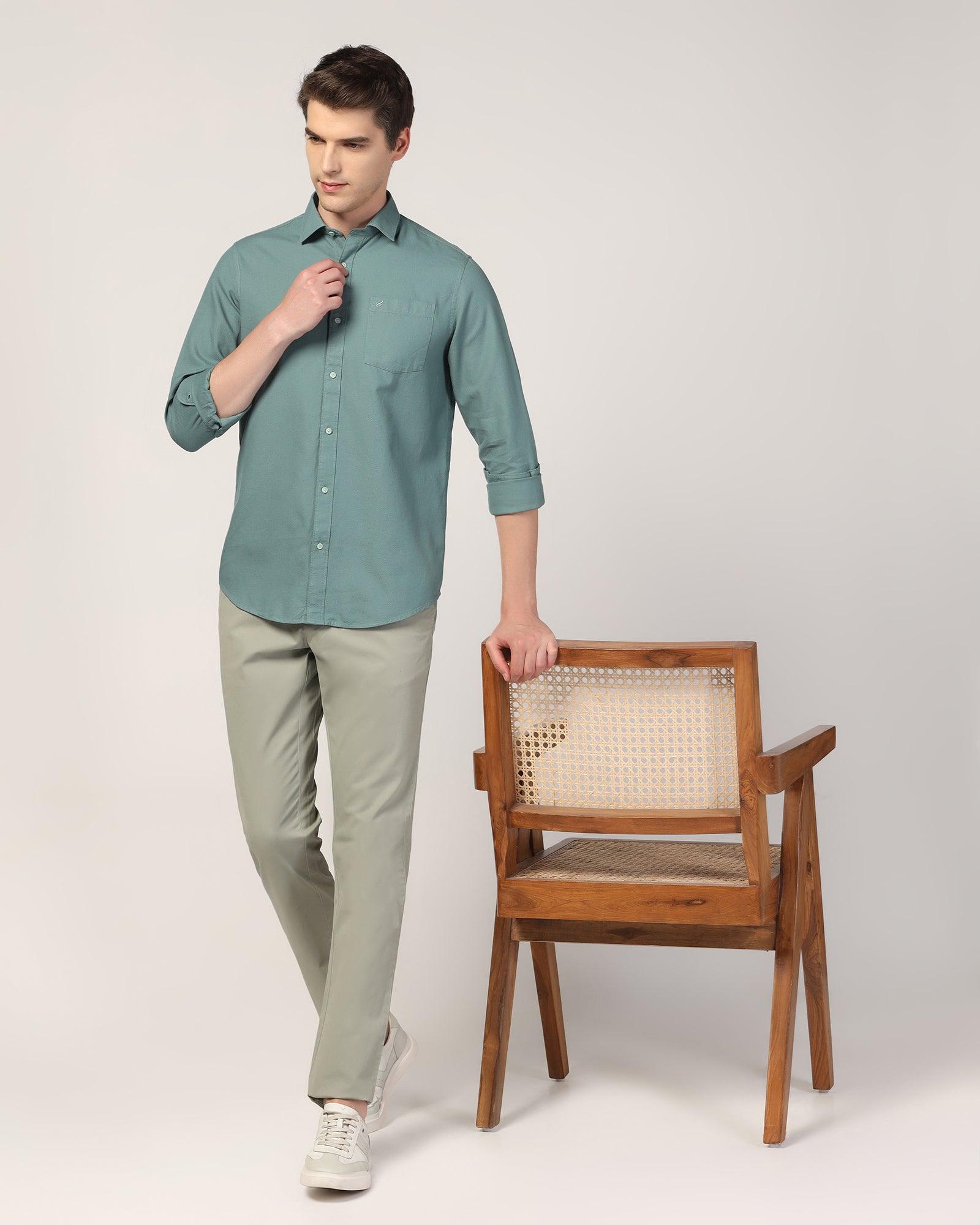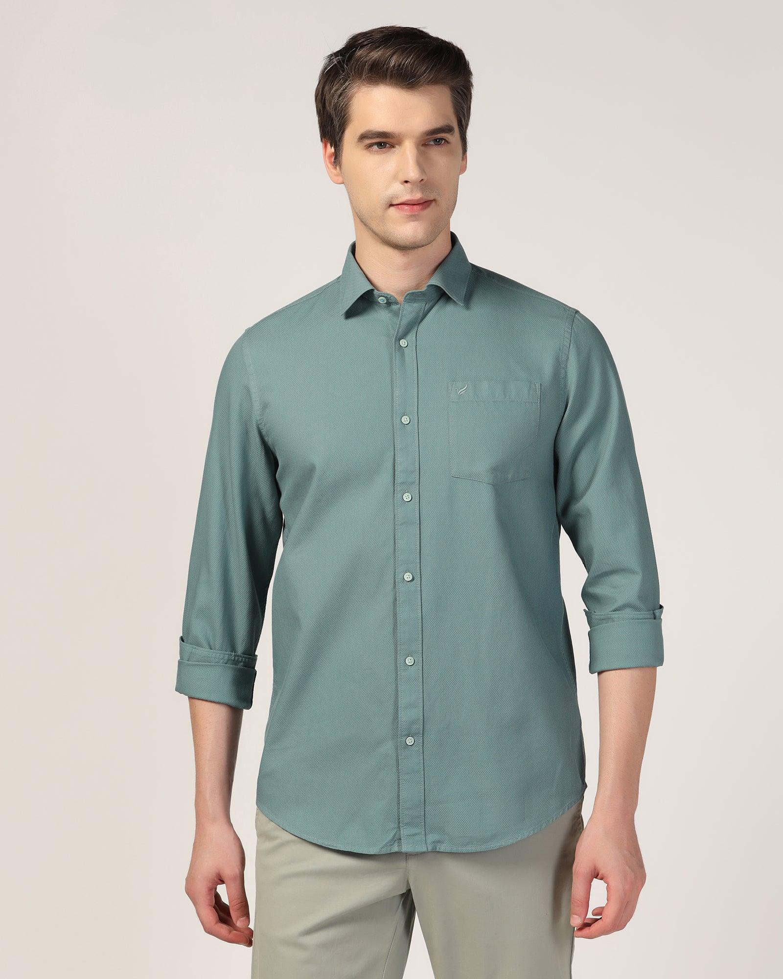 Step into timeless style and unparalleled comfort with this Olive Casual Shirt. Crafted with a stylish dobby pattern, this solid shirt adds texture and interest to any outfit. The semi-cutaway collar exudes classiness, while the India Fit offers a modern and flattering silhouette. Made from high-quality woven fabric, it ensures durability and comfort for all-day wear. Complete with practical full sleeves and a convenient chest pocket, this olive-hued shirt combines functionality with style.