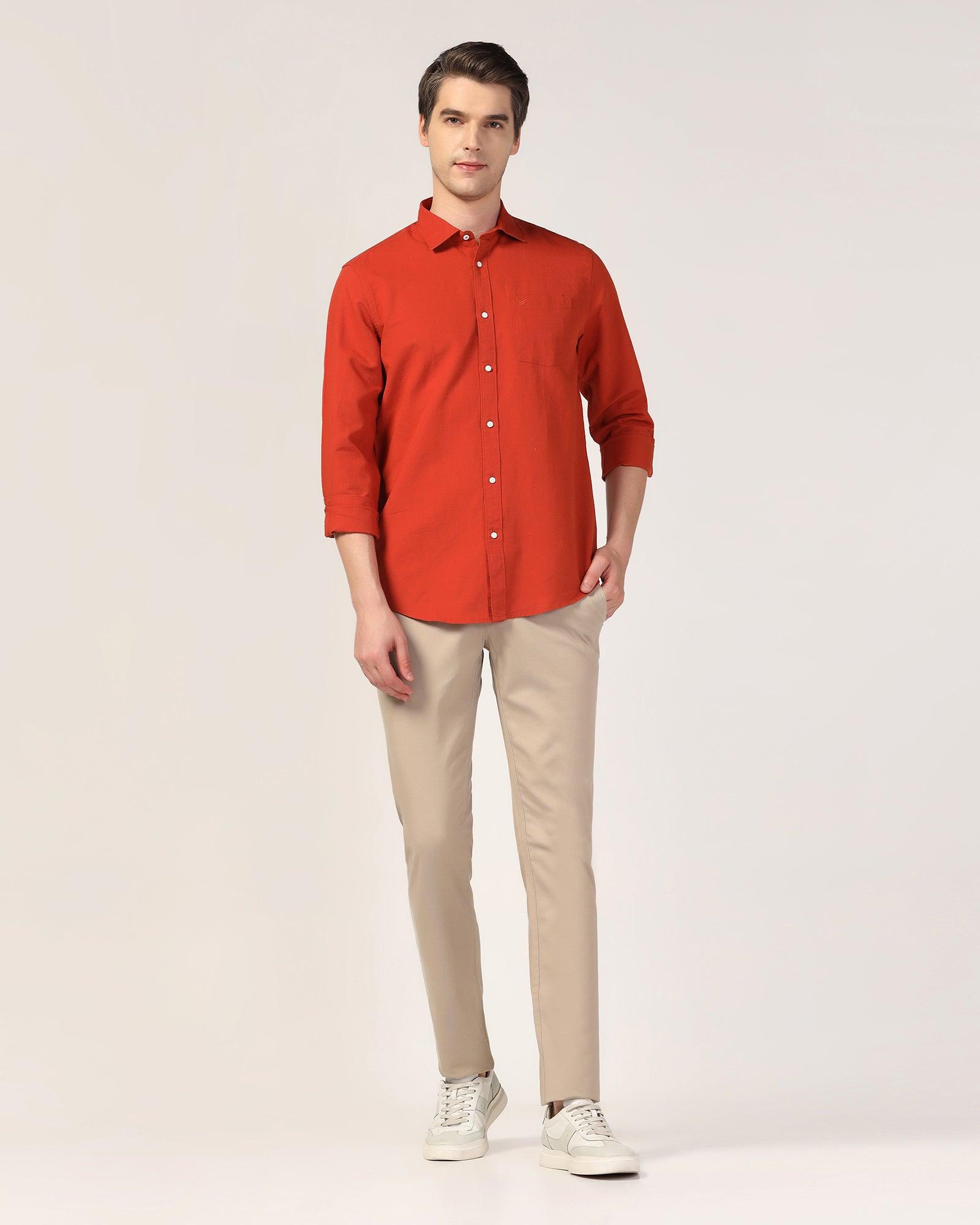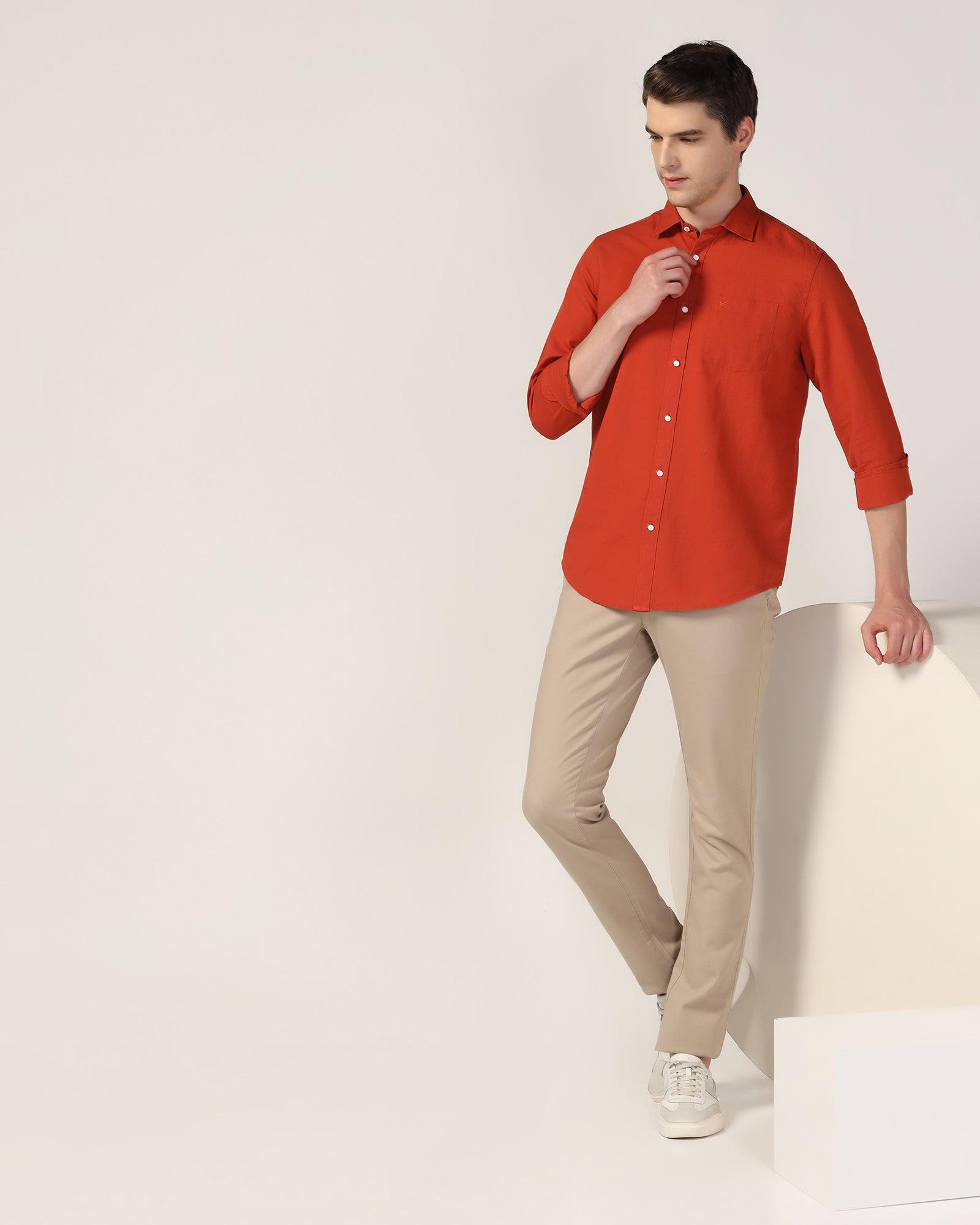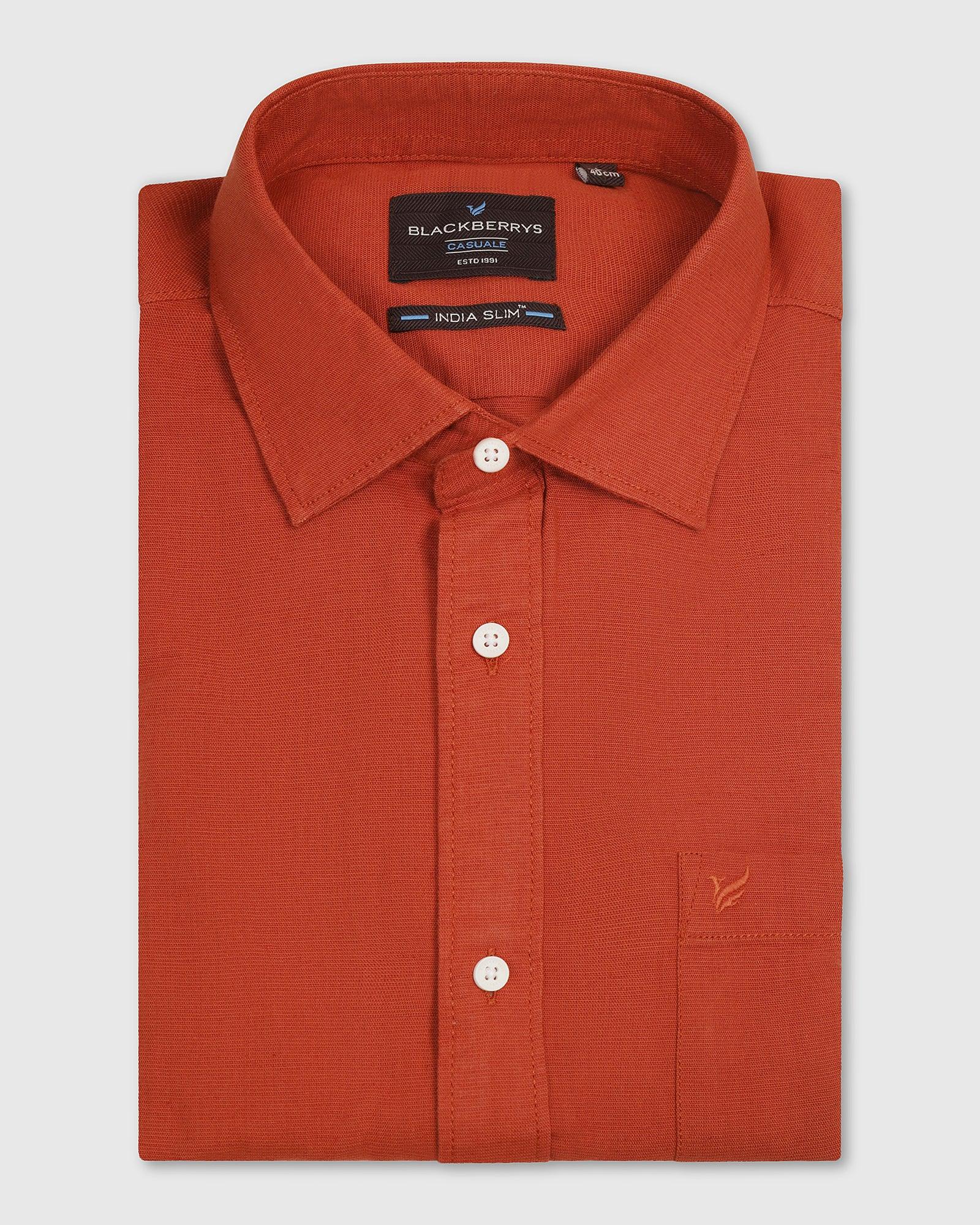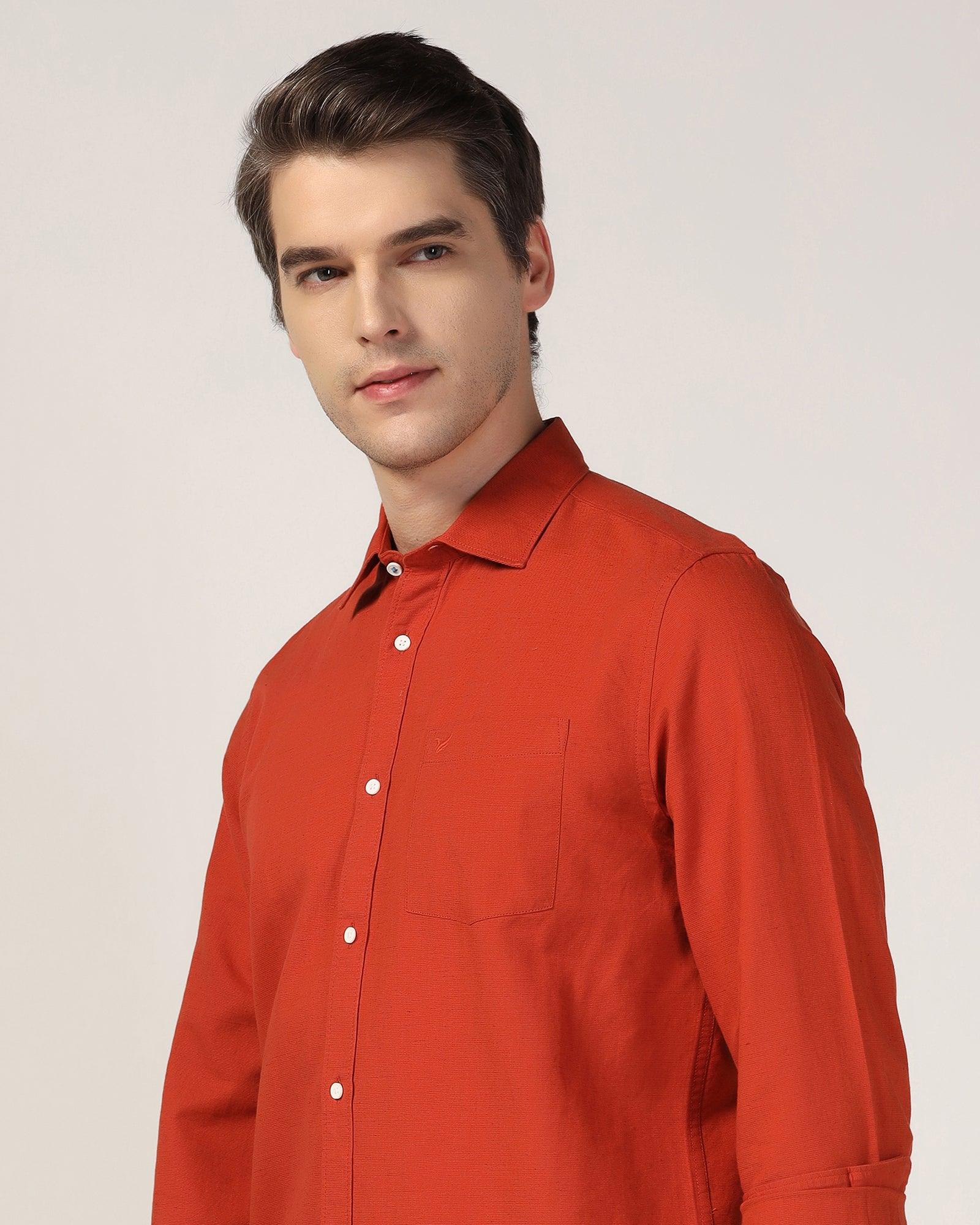 Enter an ambience of refined refinement with the Rust Checked Shirt, merging classic allure with a touch of modernity. This shirt features an enchanting checked pattern, imparting a sense of sophistication to your attire. Designed in a slim fit, complemented by a semi-cutaway collar and crafted from premium fabric, this rust-coloured shirt embodies sleekness and contemporary style. The inclusion of a chest pocket offers functionality and versatility.