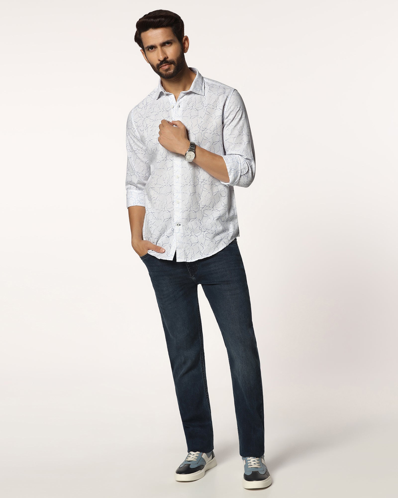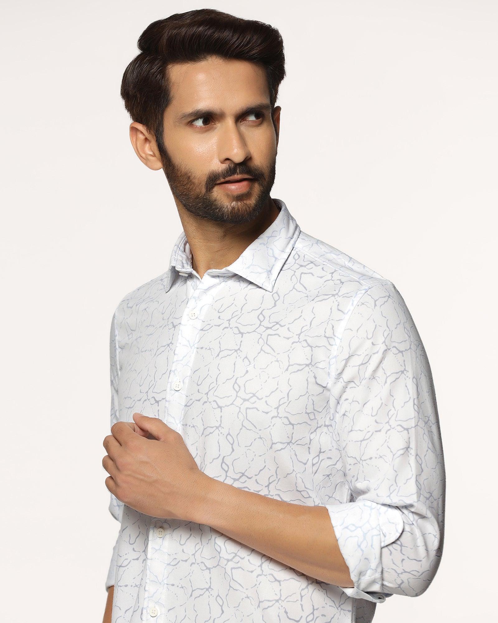 Eye-catchy charm in every stitch – refresh your casual wardrobe by wearing this White Printed Casual Shirt. Designed with a semi cut-away collar and a slim fit, this casual shirt for men is made from premium woven fabric featuring a refined jacquard weave for added texture. The white hue of this shirt brings a modern edge to your look. Perfect for casual outings or laid-back gatherings, this shirt blends style and comfort seamlessly.