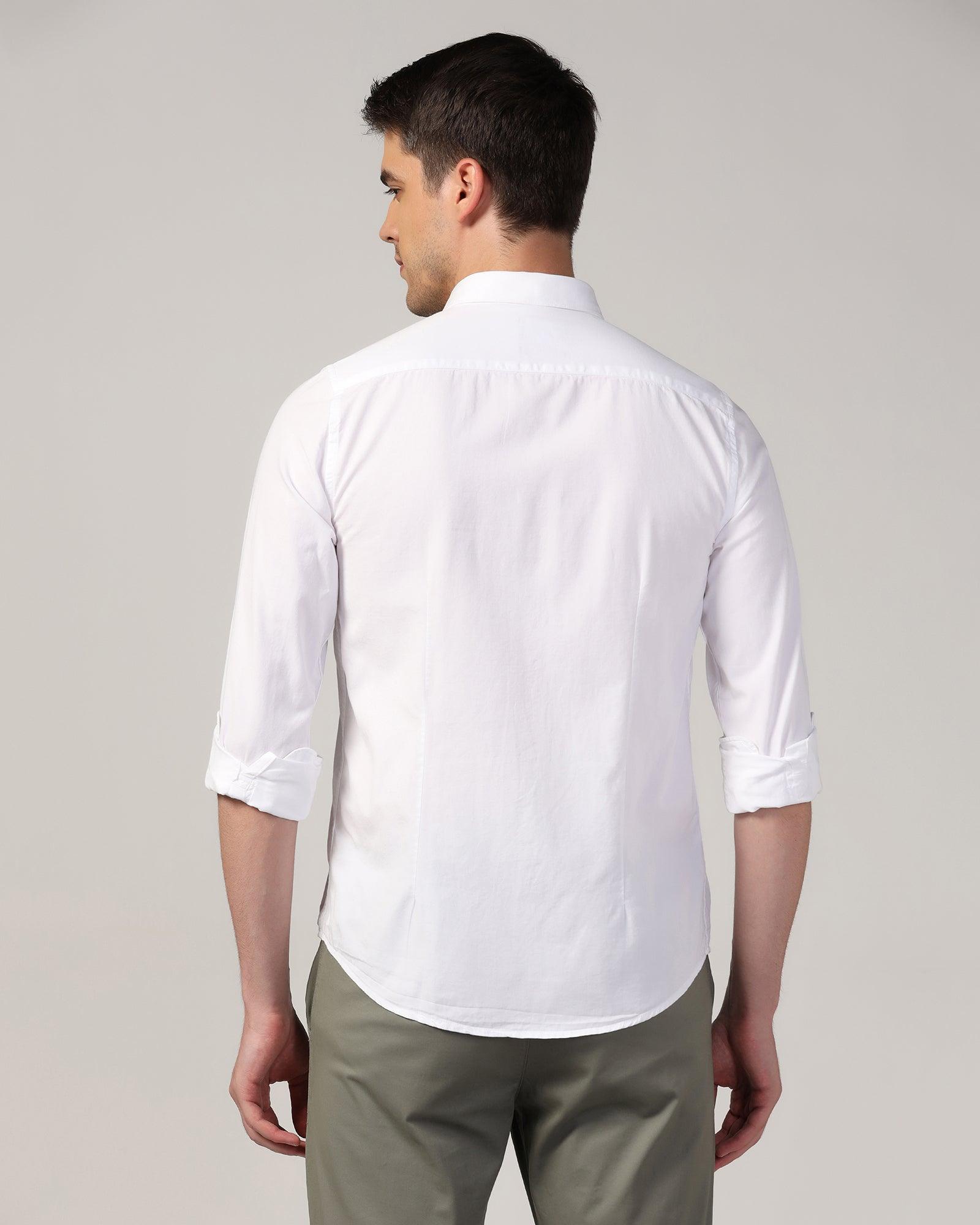 ● Pair this white casual shirt with Blackberrys trousers for a trendy look.
