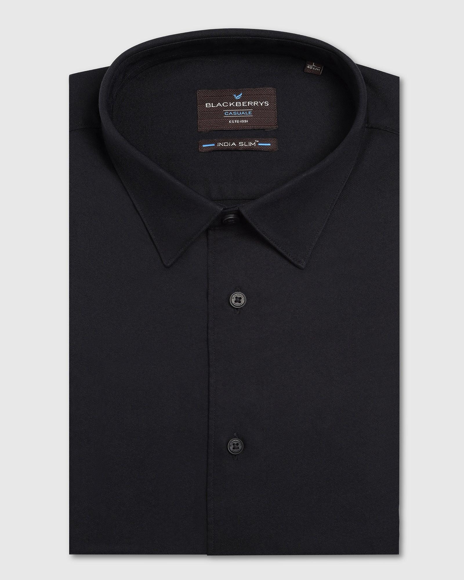 Reveal the harmonious blend of fashion and ease with this Black Full Sleeved Casual Shirt, meticulously crafted for today's discerning gentleman. With its slim collar, it emanates contemporary charisma while retaining an elegant profile. Made with superior stretchability, this solid shirt ensures comfort without compromising on style. The rich black tone injects a touch of refinement into any outfit, establishing it as a versatile wardrobe staple.