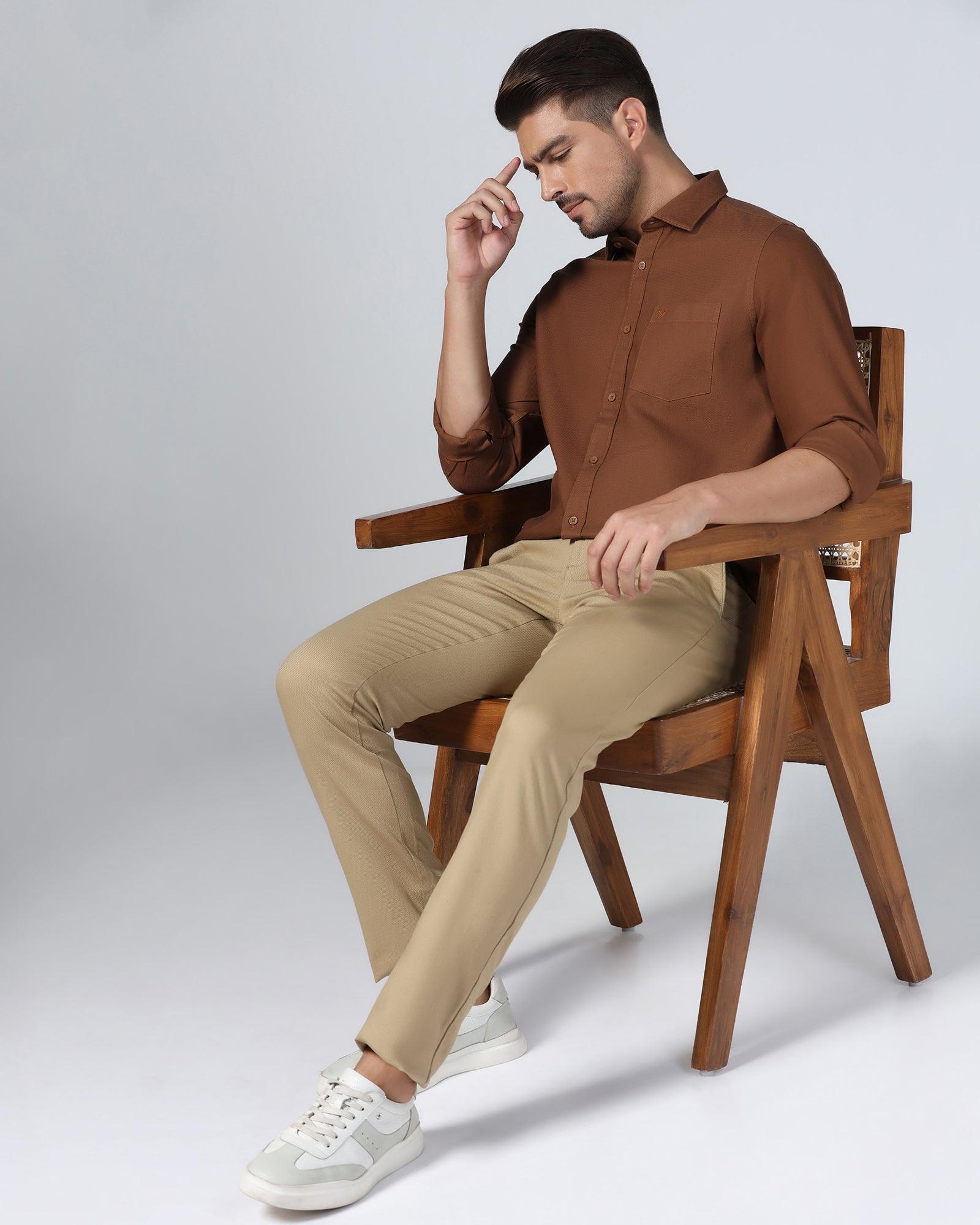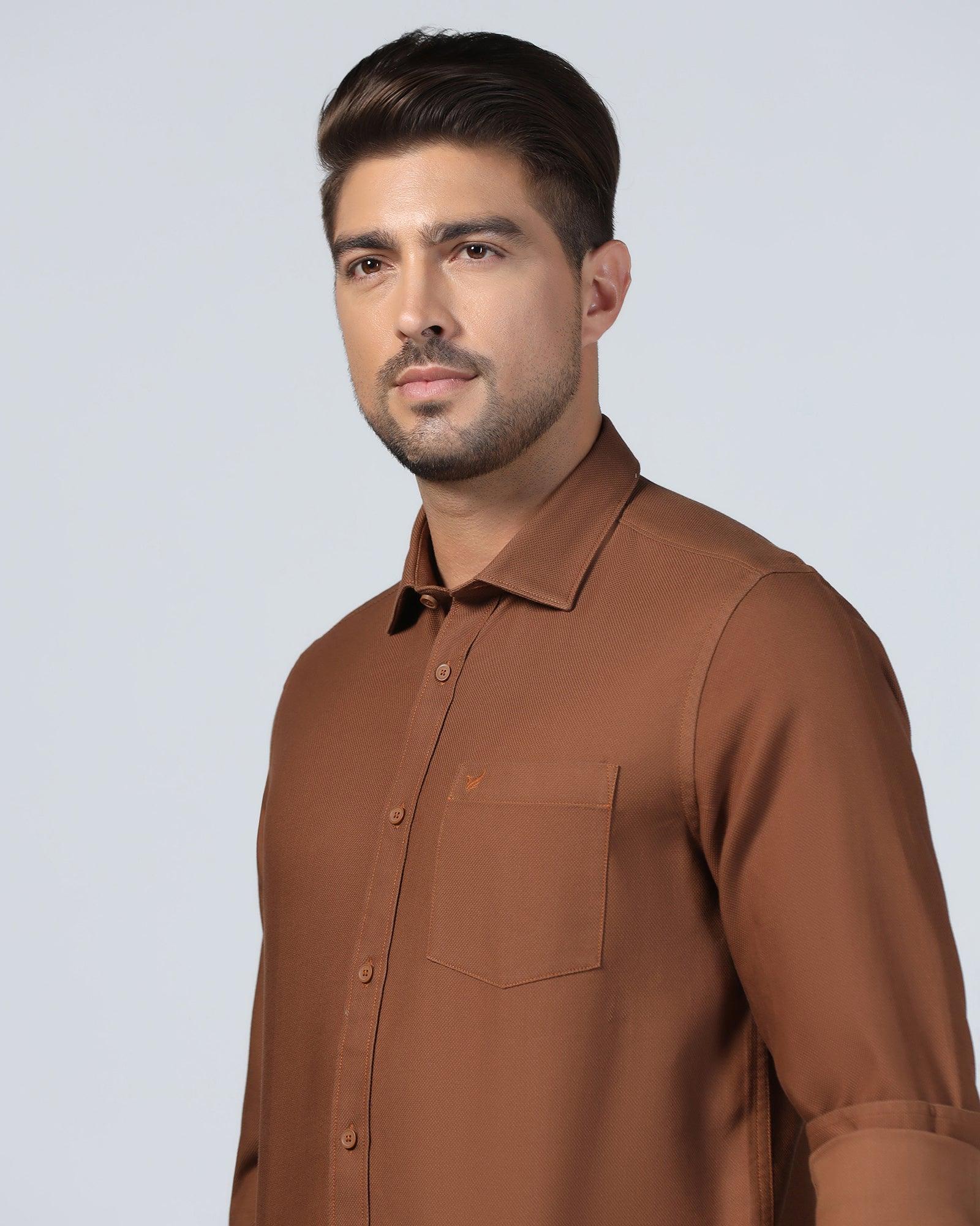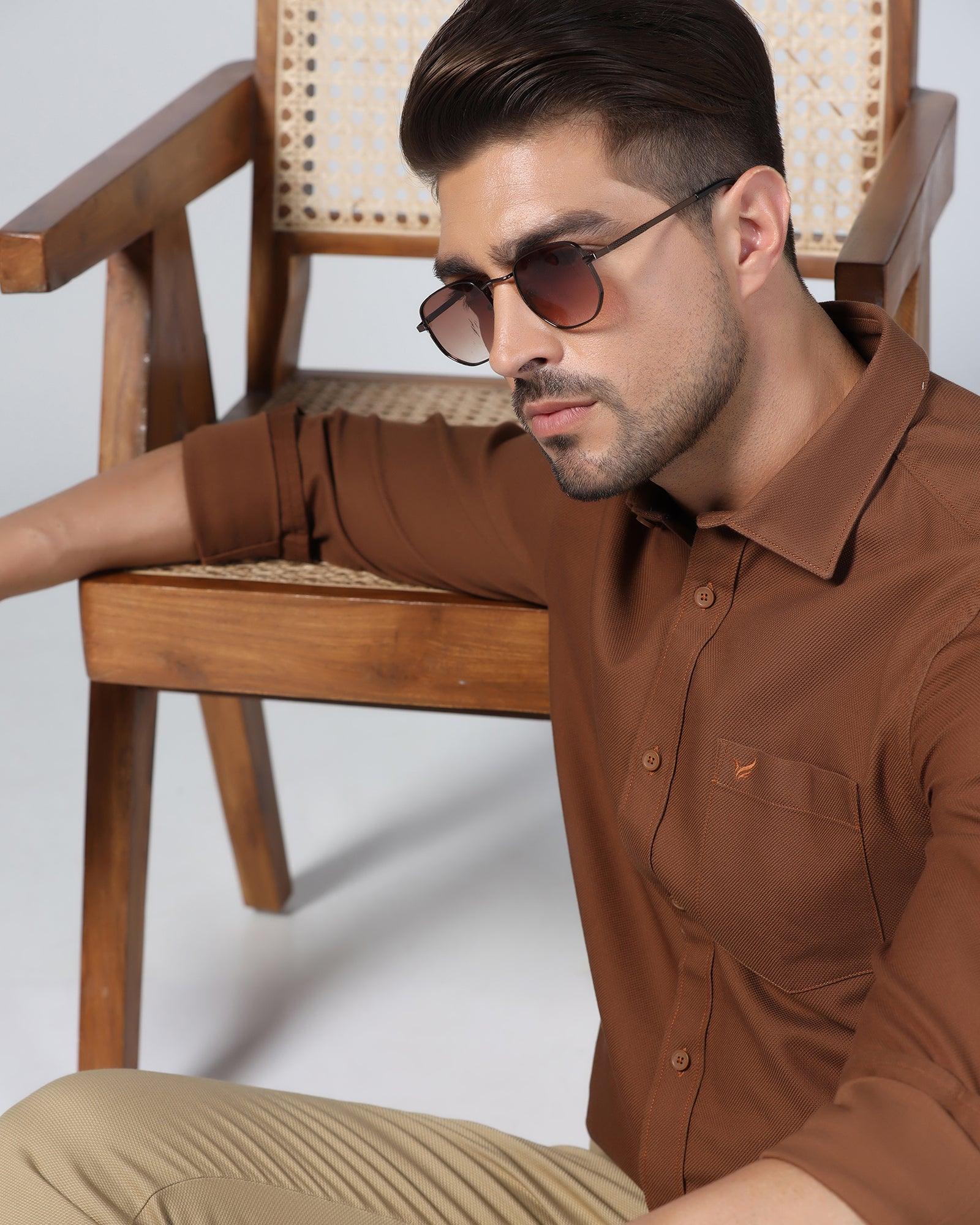 Casual Brown Textured Shirt - Caty