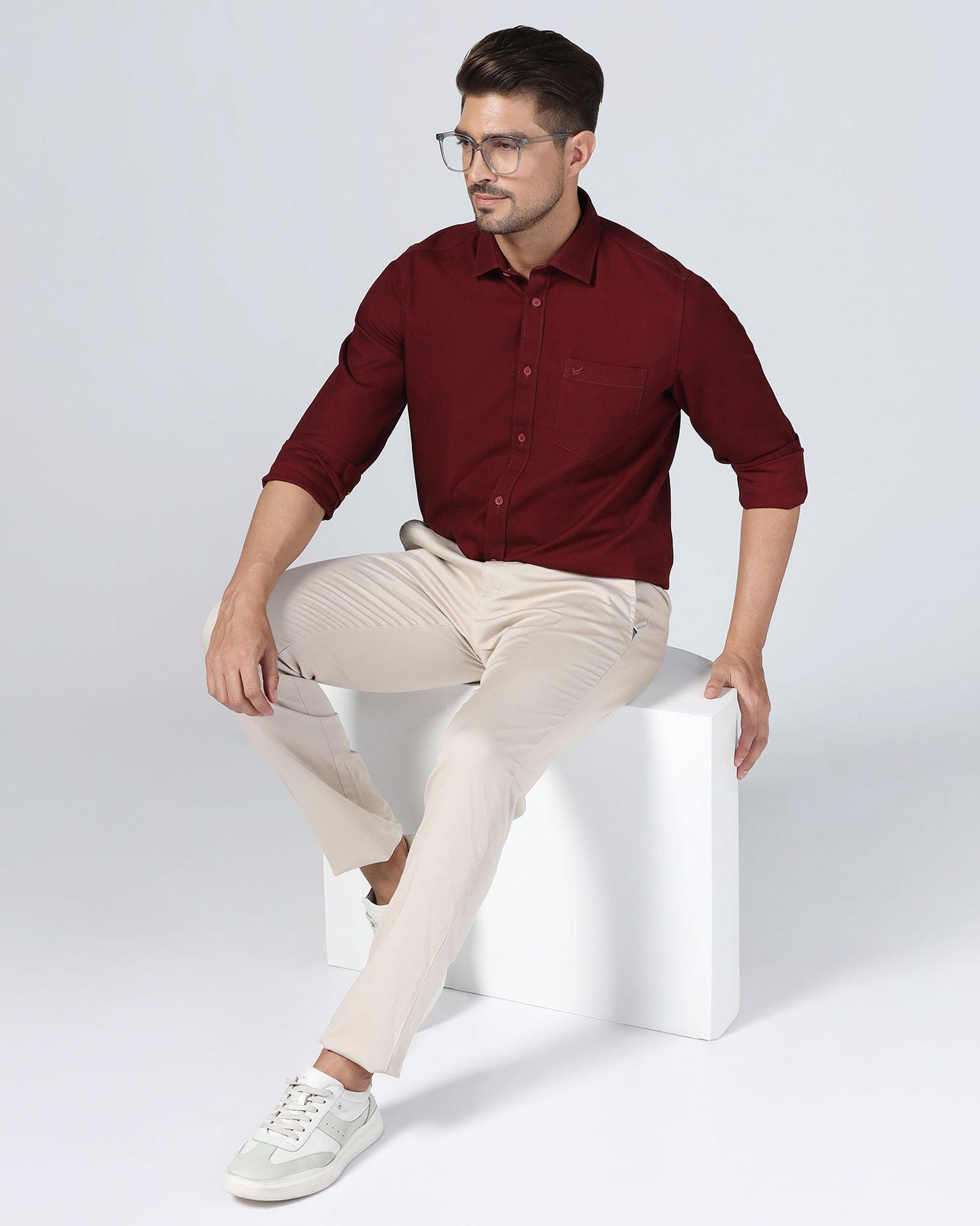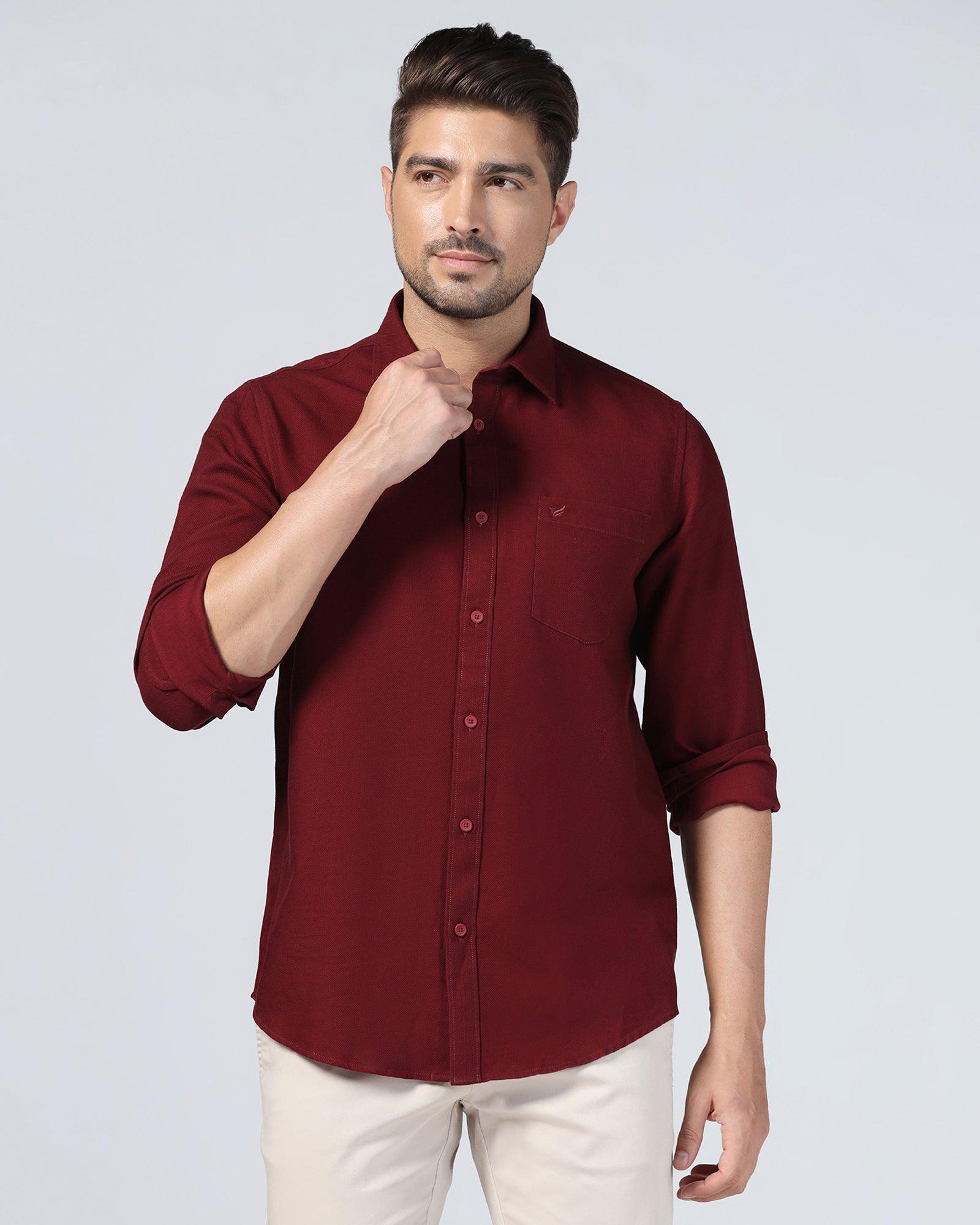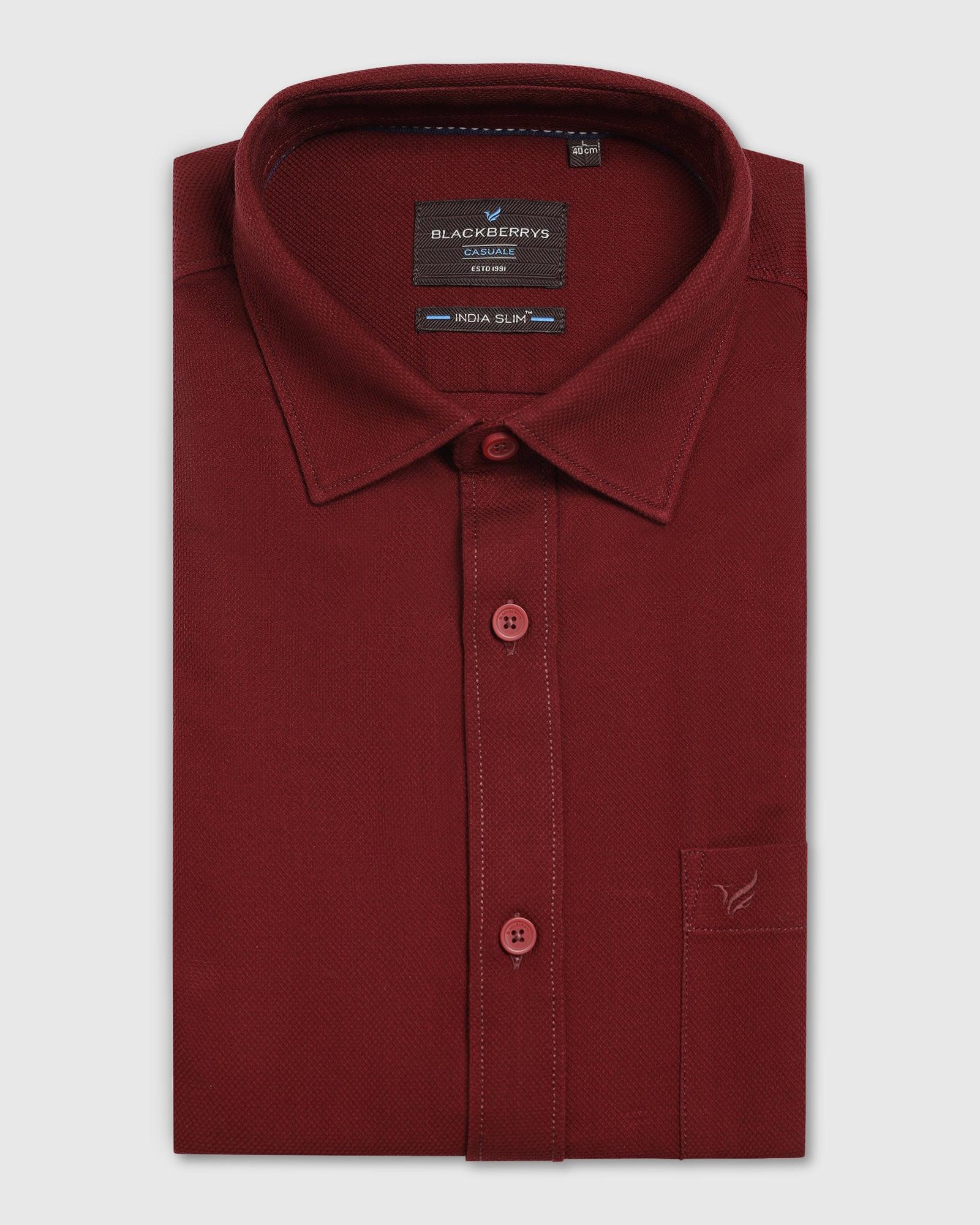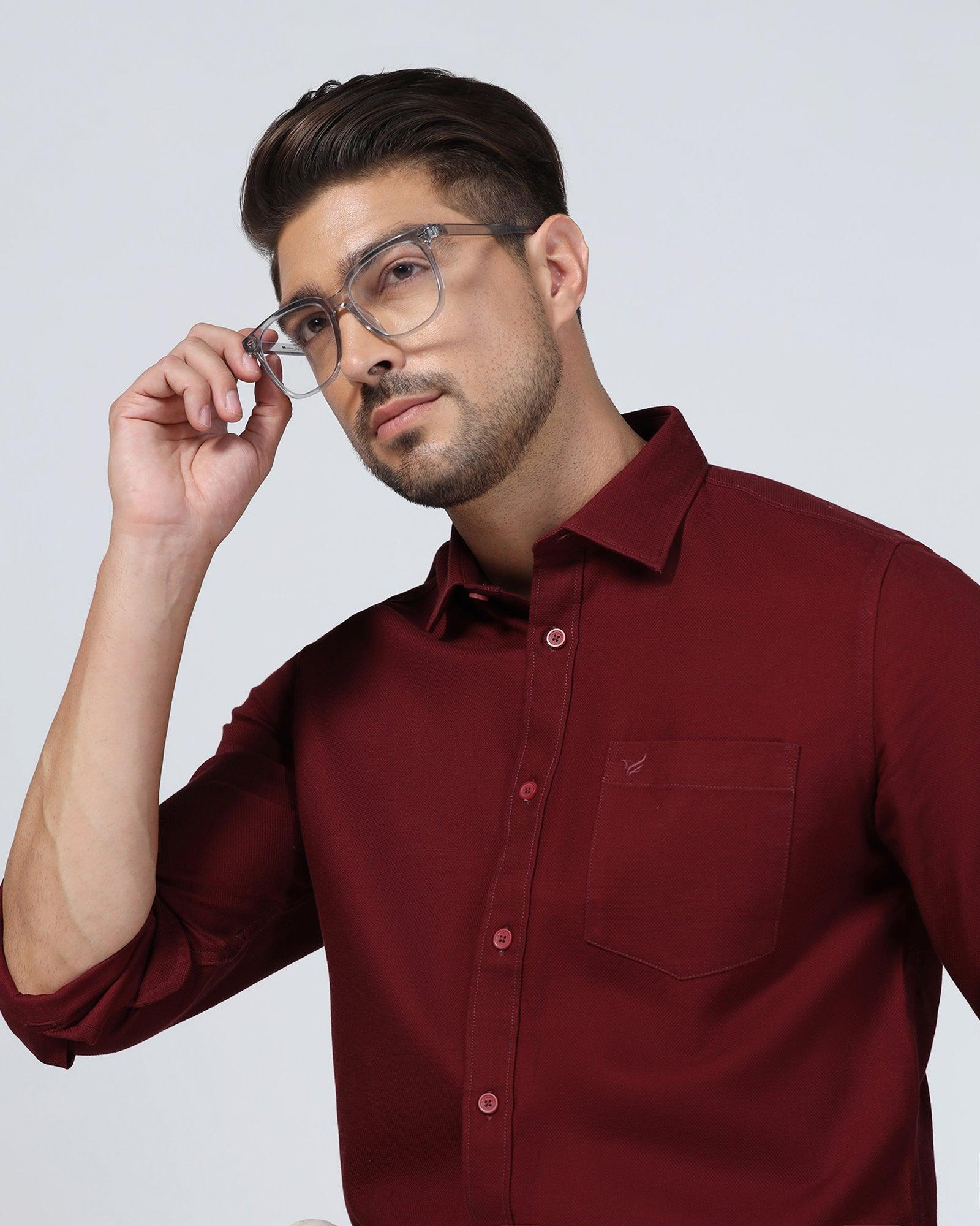 Step into grace with this Wine Textured Casual Shirt, a statement piece crafted for the modern gentleman. A versatile addition to your wardrobe, this casual shirt for men features a chest pocket for practicality and convenience. Embrace comfort and style with its full sleeves, ensuring you're ready for any occasion. Tailored to perfection with an India Fit, it effortlessly complements your silhouette, exuding confidence wherever you go.