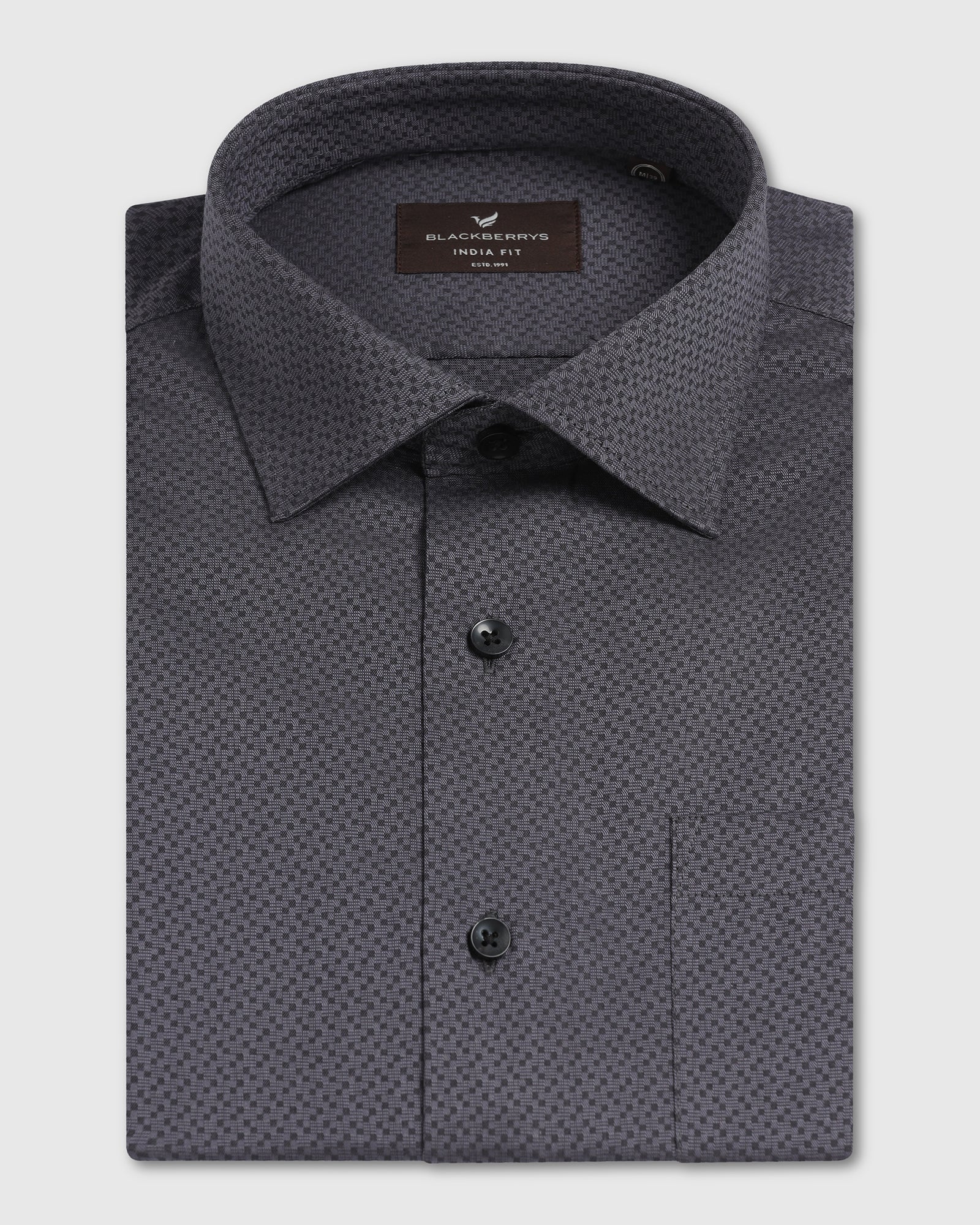 Charm of refinement matched with everyday suitability - this Formal Shirt epitomises classy grace. This stunning style is crafted from luxurious Giza yarn, which has a soft, smooth hand and a subtle sheen and is complemented by the subtle dobby texture and India fit. The chest pocket, extended placket and clean chest add the functional note needed to go formal and allow the formal shirt to move smoothly from the boardroom to evening dinner. You can wear it with confidence.