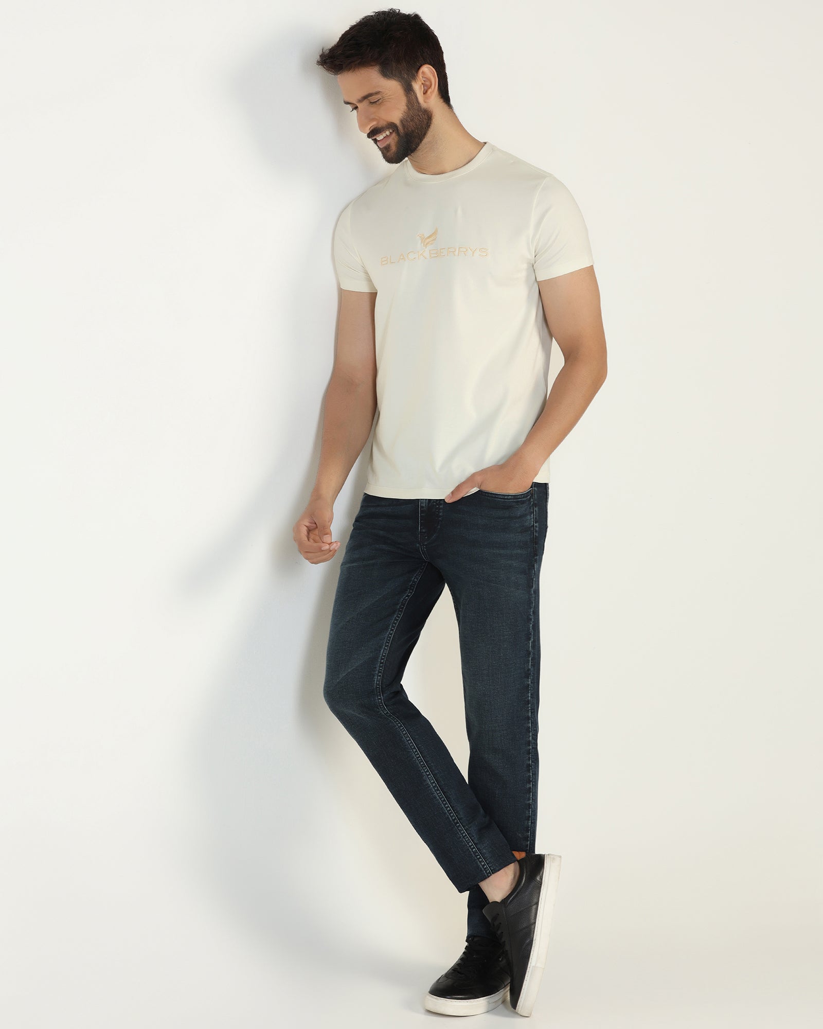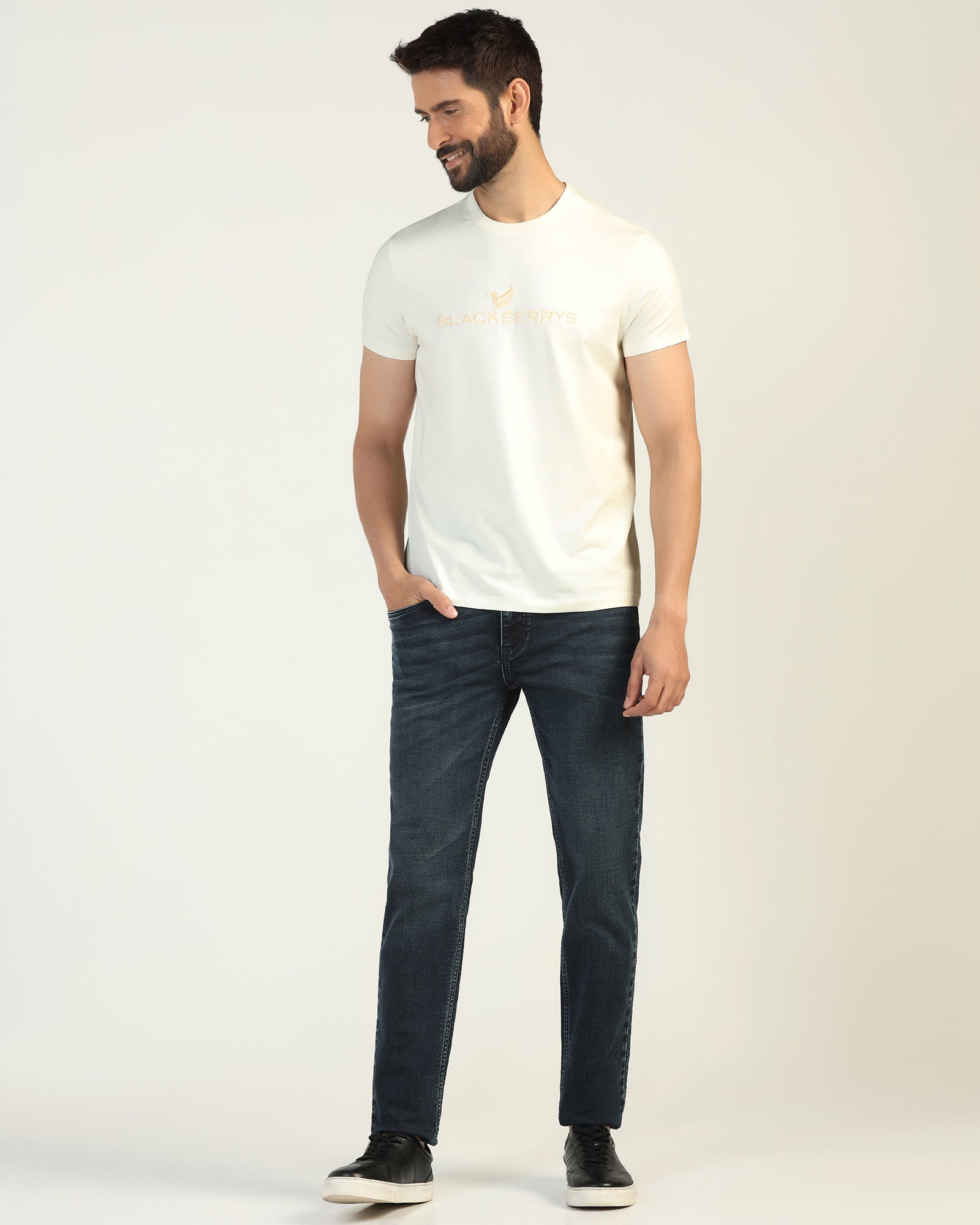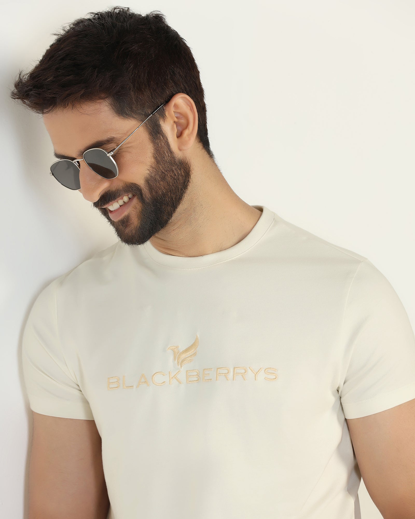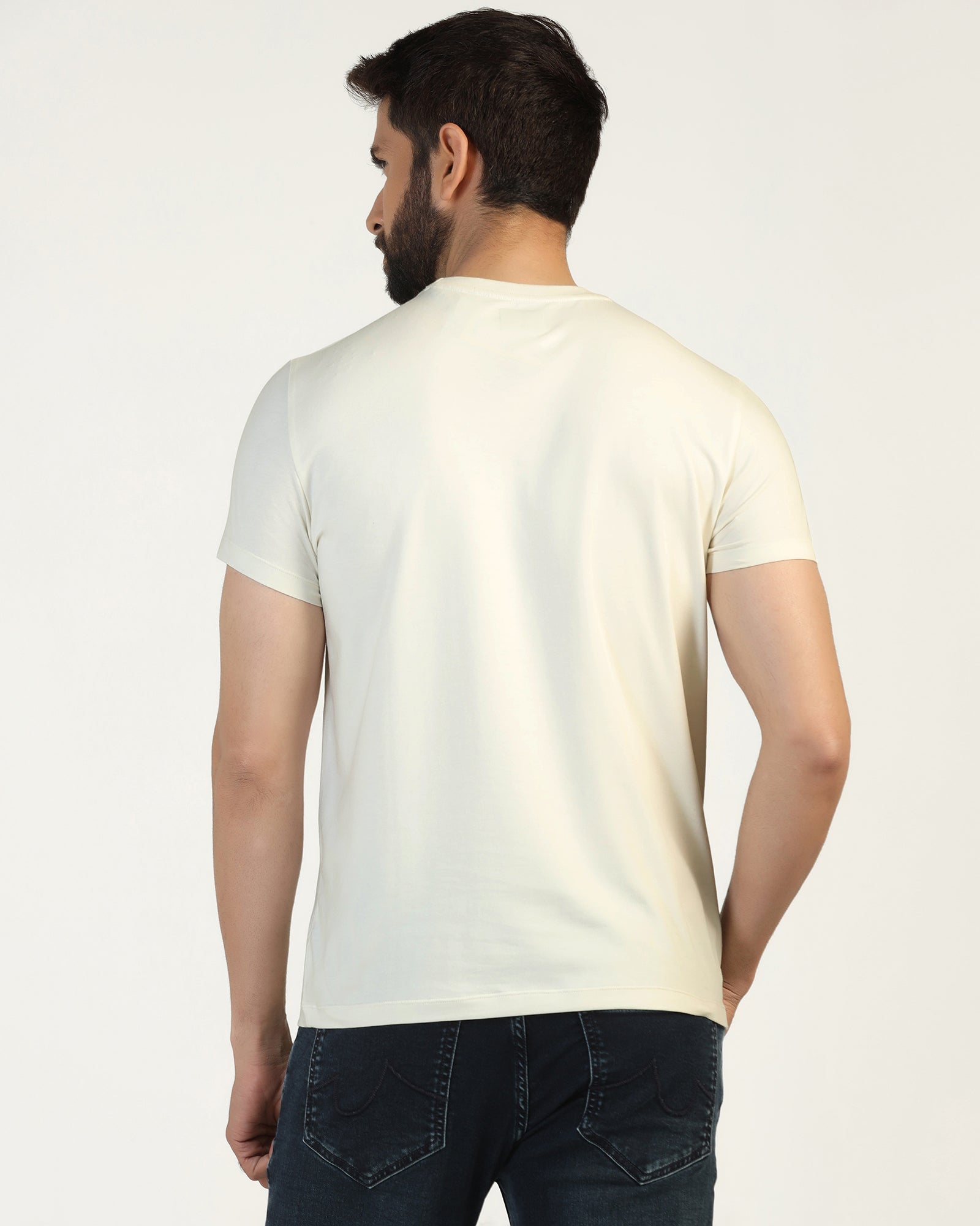 Crew Neck Off White Solid T-Shirt - Phoenix