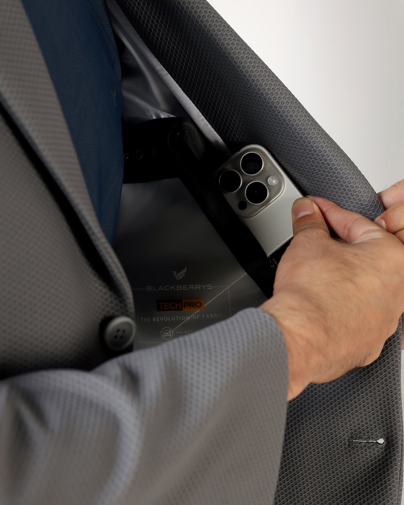 Check out the Tech Pro Formal Jacket for a touch of class. It's made with smart dry fabric in a slim fit cut that moves with you, all day long. The special macrostructure-knit makes it breathable, stretchy, and wrinkle-resistant, so you'll look good whether you're at a meeting or out for the night. With its classy two-button style, single-breasted front and double vent, this jacket mixes new tech with easy style.