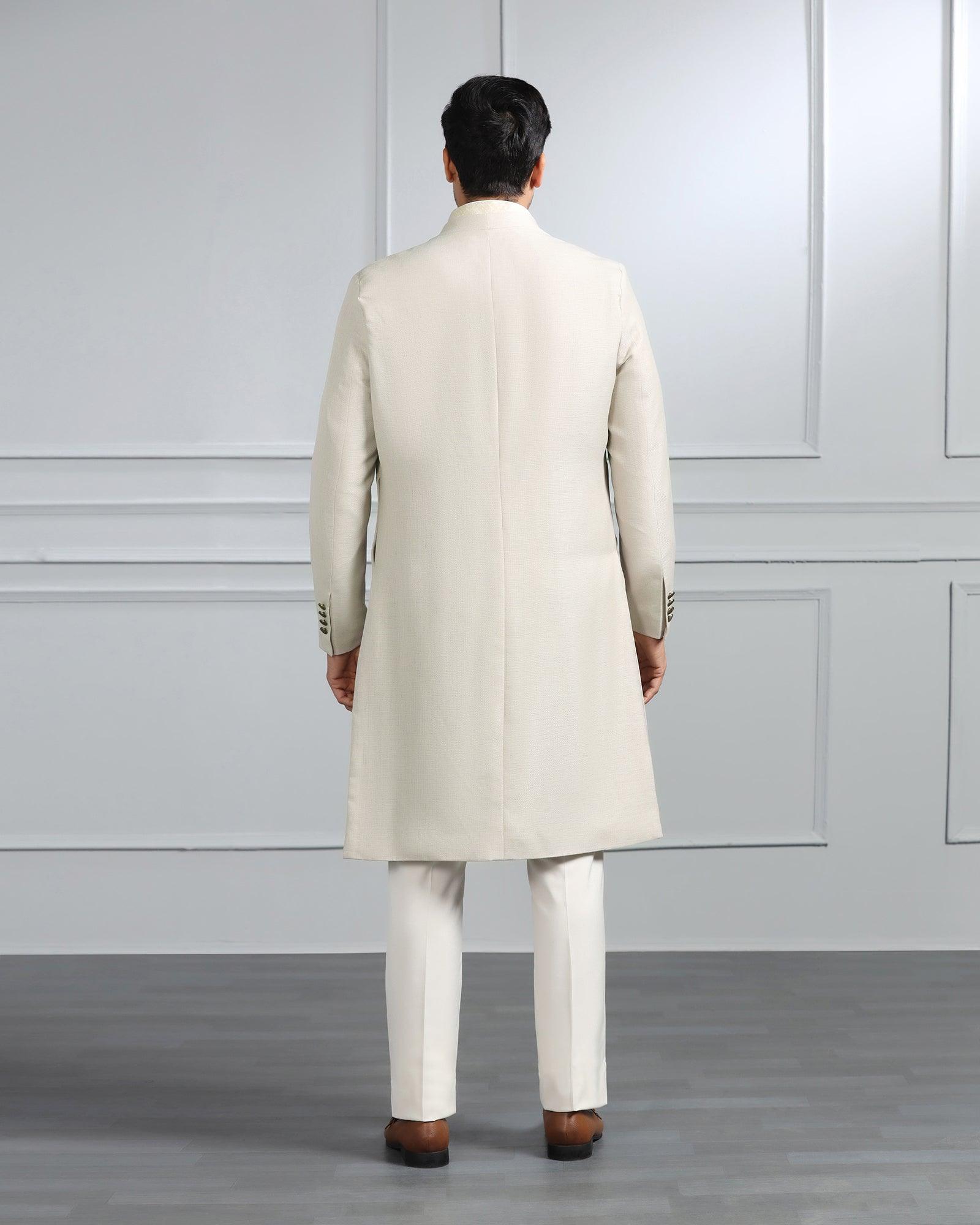 Step into the world of timeless sophistication with the Beige Ethnic Suit. This remarkable suit showcases an exquisite ethnic design meticulously woven to perfection, making it a standout choice for special occasions and cultural celebrations. Full sleeves and a woven weave ensure comfort and a polished appearance, allowing you to make a lasting impression.