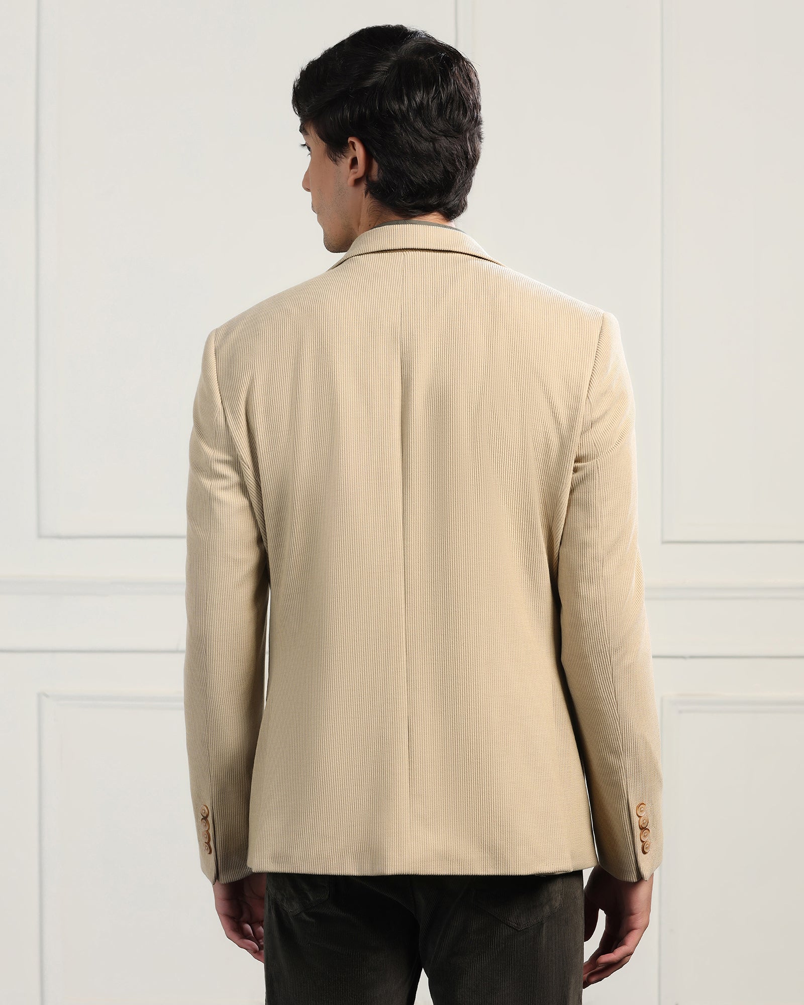 Flaunt your unique style with the perfect blend of style and versatility in the Beige Stripe Blazer. Crafted with precision, this Blazer features a classic flap pocket that adds functionality. Enhanced with stretch fabric, it ensures comfort and ease of movement. The timeless stripe pattern brings a sophisticated yet modern edge to your ensemble. Ideal for both any type of gathering, this hybrid casual + formal Blazer seamlessly transitions from a day at the office to an evening out.