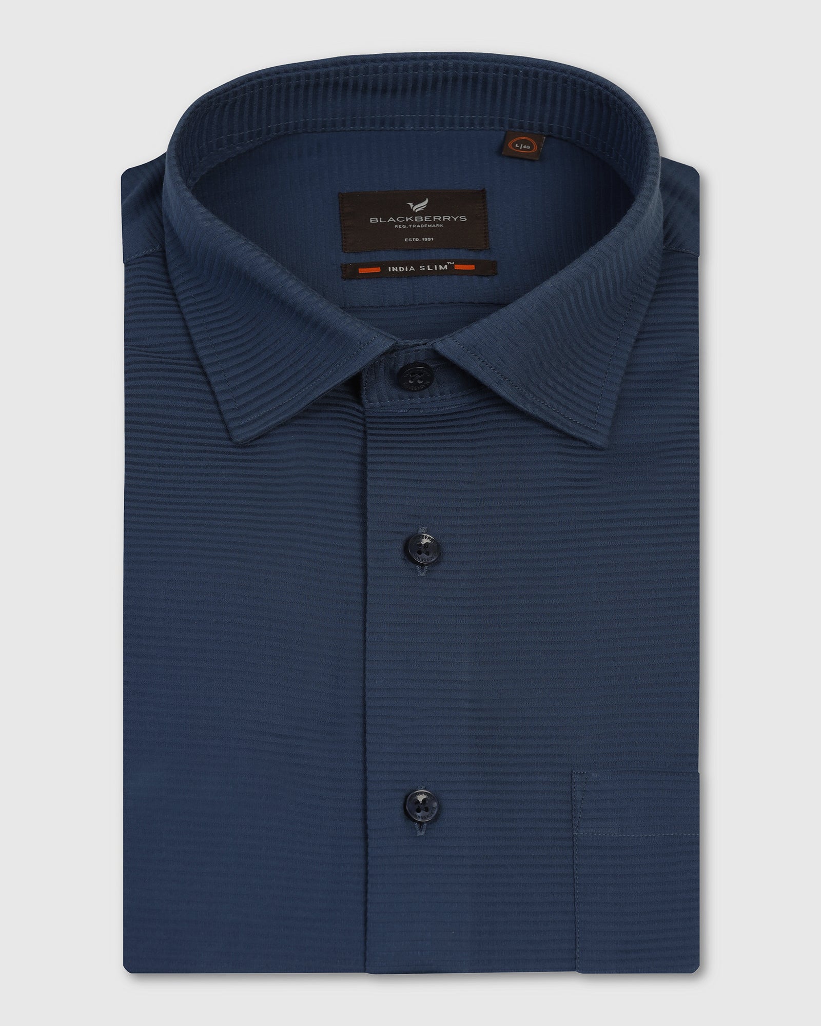 Heighten your formal wardrobe with this finely tailored Full Sleeved Formal Shirt, crafted from premium Giza yarn, for a luxurious feel. The dobby woven fabric in an India Fit offers a subtle sheen, perfect for all occasions. Designed with a chest pocket, it enhances its sophisticated appeal.