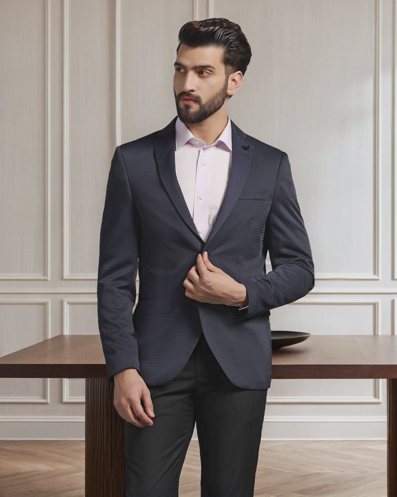 Make a statement, and exude a distinguished charm with this Navy Solid Formal Blazer. This blazer boasts a slim fit that effortlessly complements your physique, enhancing your silhouette with confidence and sophistication. The full sleeves add a touch of classic charm while ensuring you're ready to conquer any occasion, from important business meetings to stylish soirées. This is more than just a blazer; it symbolises your unparalleled style.