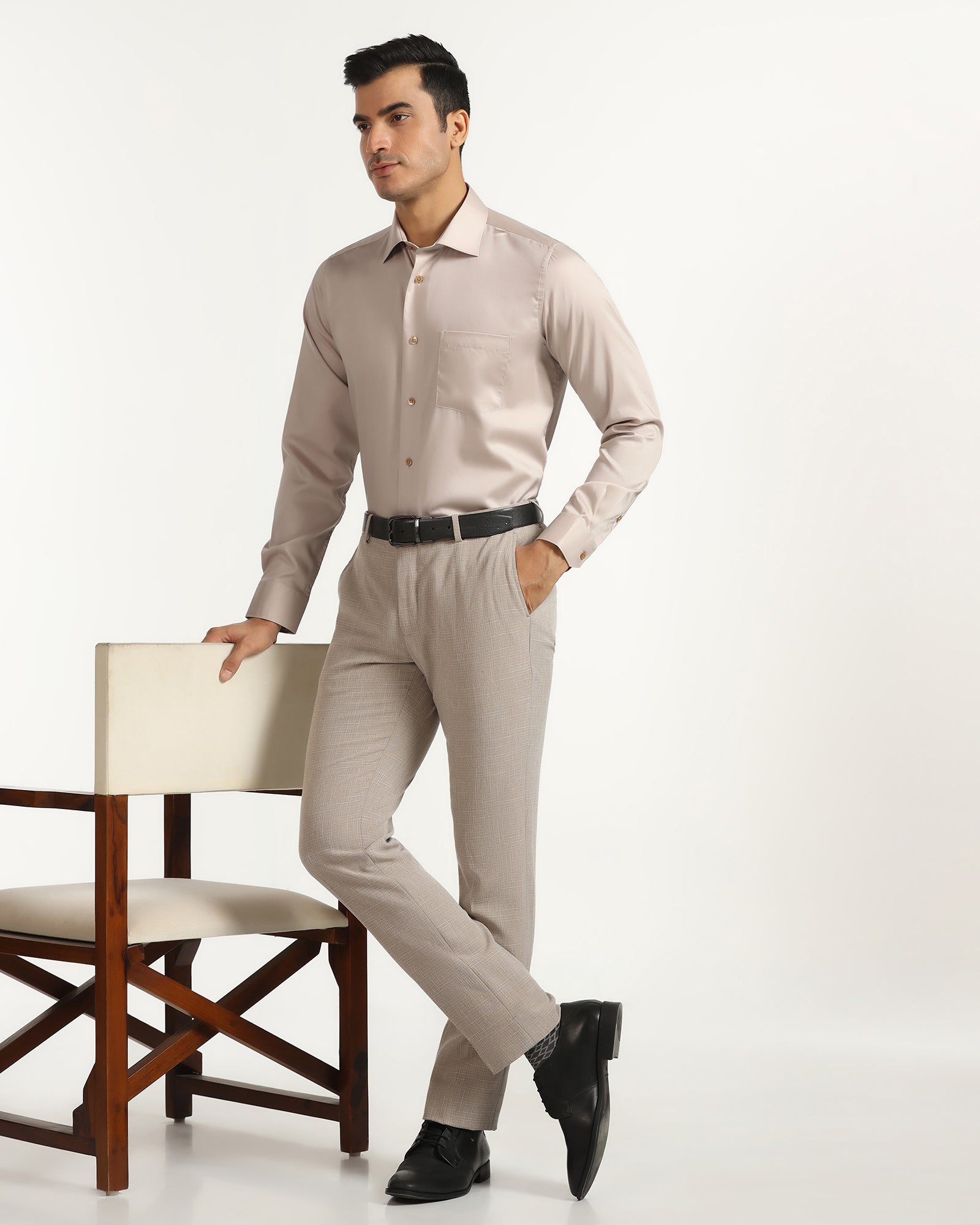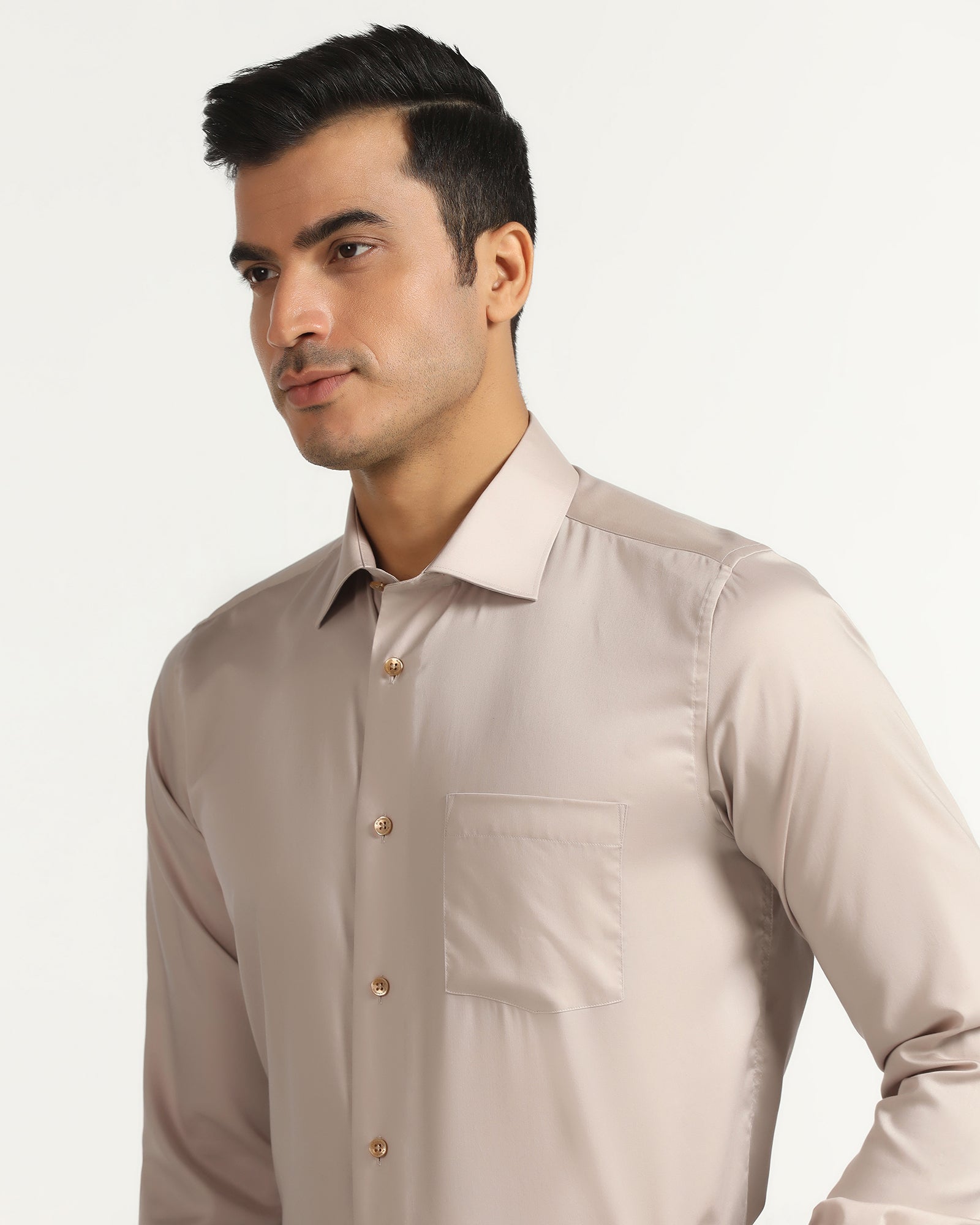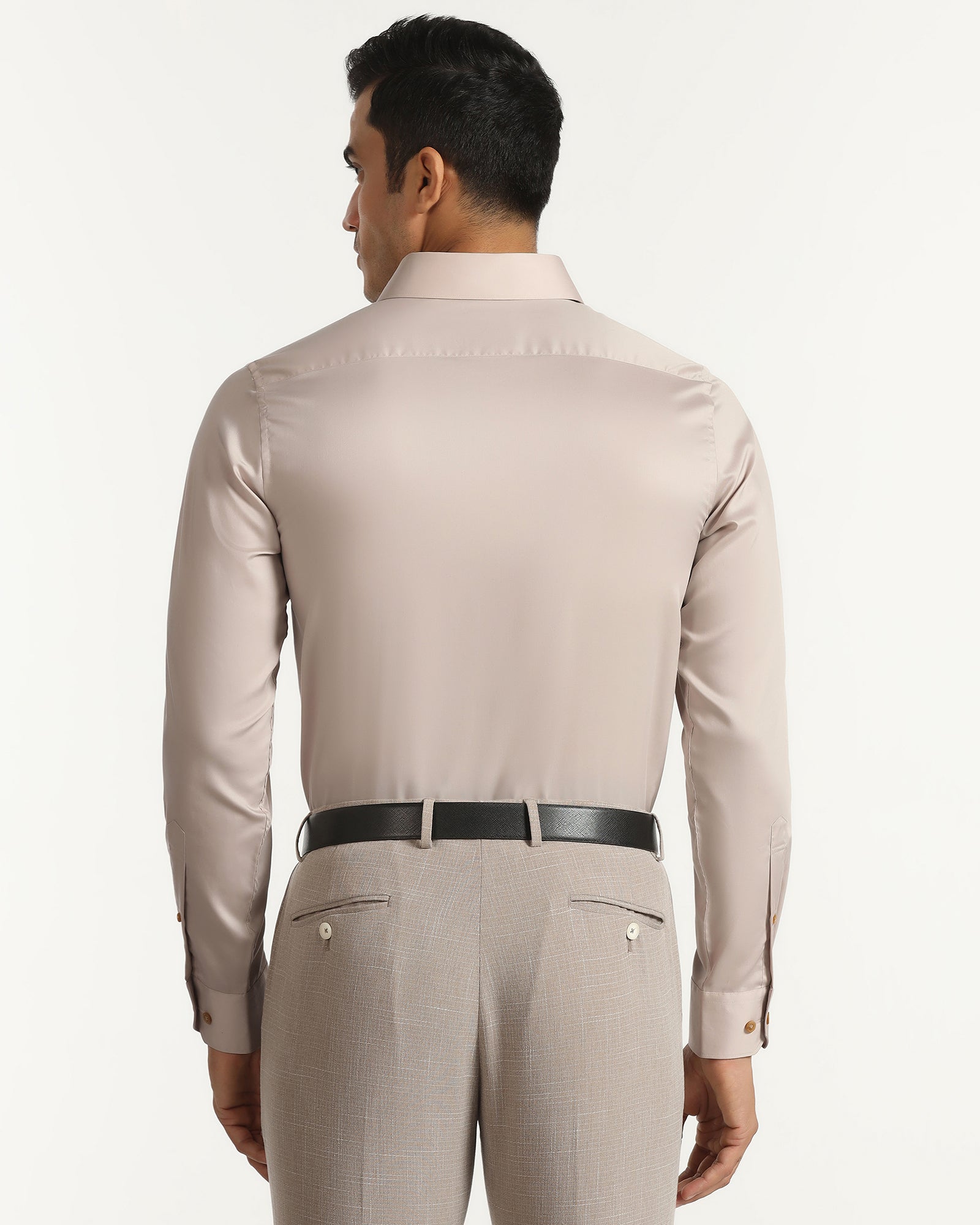 Elevate your formal wardrobe with the Solid Formal Shirt, crafted from premium Giza yarn for a classy touch. Designed in an India Fit, it offers a subtle sheen, perfect for all occasions. The high-stance collar, creaseless armholes, and extended placket ensure a sophisticated and polished look.