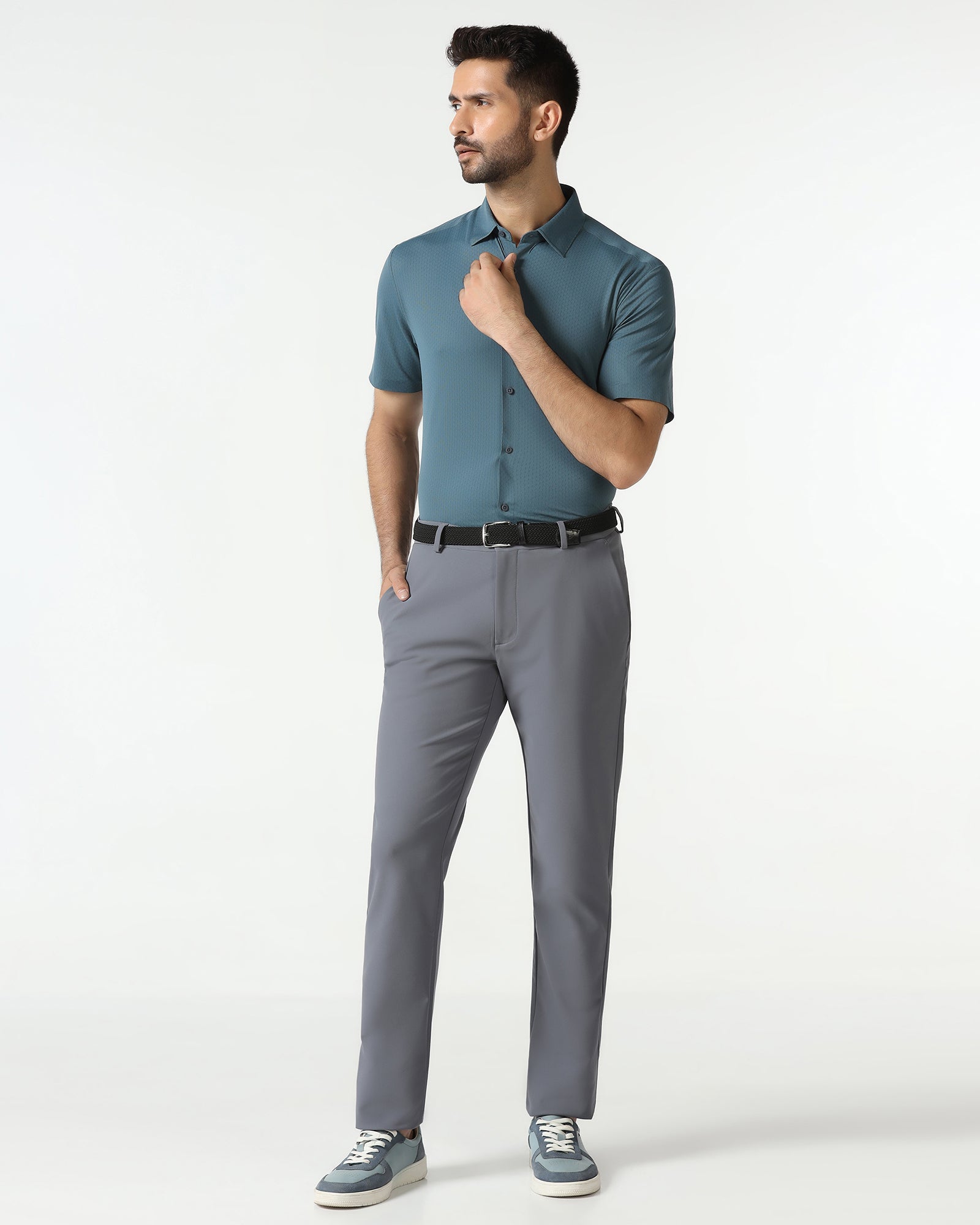 Take casual intricacy to the next level with these Tech Pro Casual Trousers, developed to keep you looking smooth and feeling comfortable. These trousers for men are made of dobby woven Smart Dry fabric that is stretchable, wrinkle-resistant and cut in a B-91 (slim) fit for a cleaner off-duty style. With a mid-rise waistband, the most common fit for a balanced look, these pants transition calmly from day to night.