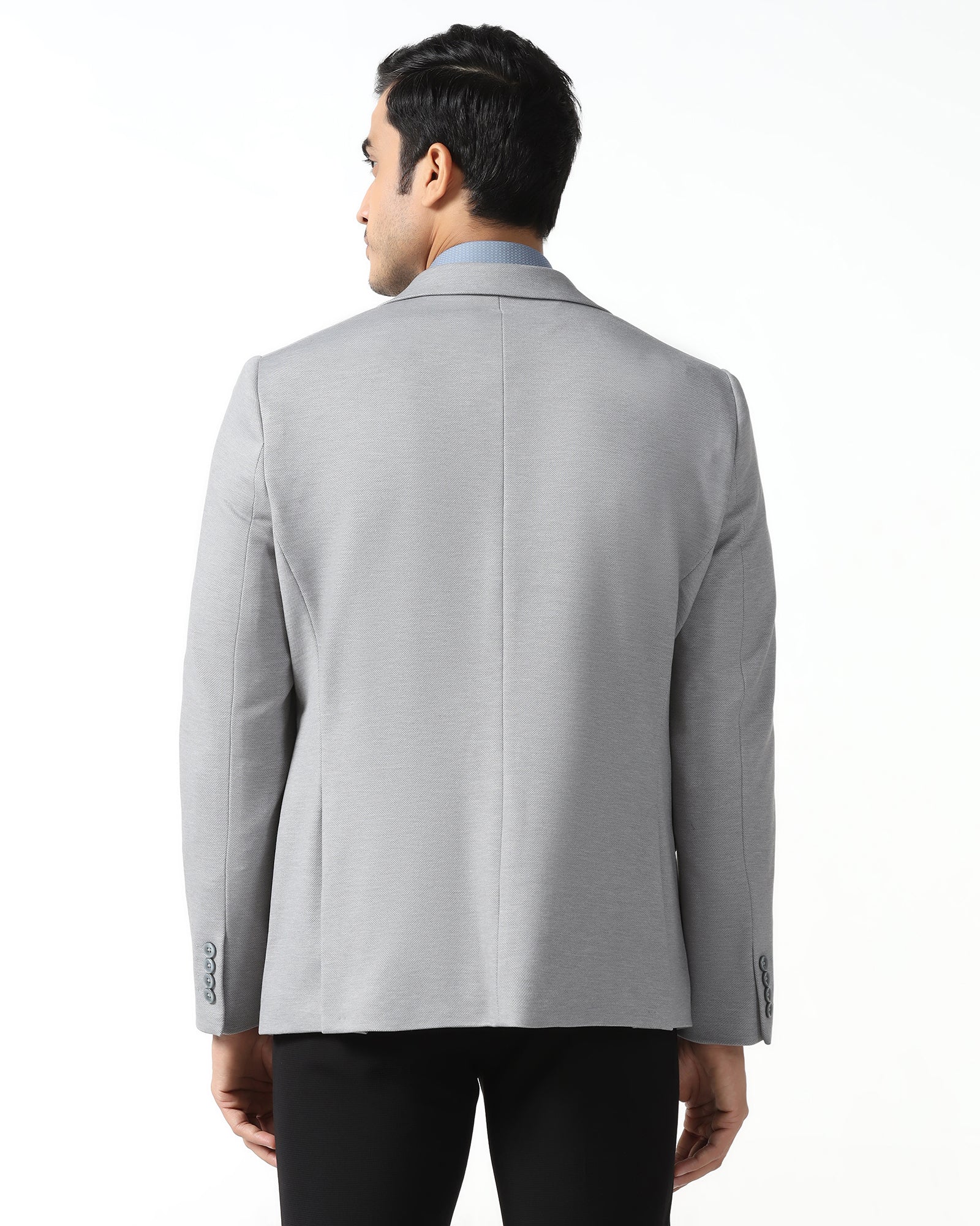 Heighten your formalwear with this Formal Blazer that has been perfectly tailored from stretchable knit fabric that has the mobility and trendy structure of a tailored suit jacket. The slim fit and subtle microstructure, along with the neatly finished flap pockets, create a better silhouette for today's professionals. This formal blazer for men combines comfort and quality and allows you to walk with confidence.