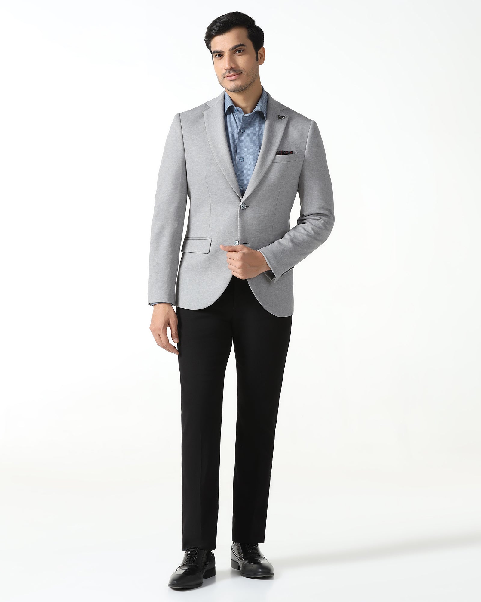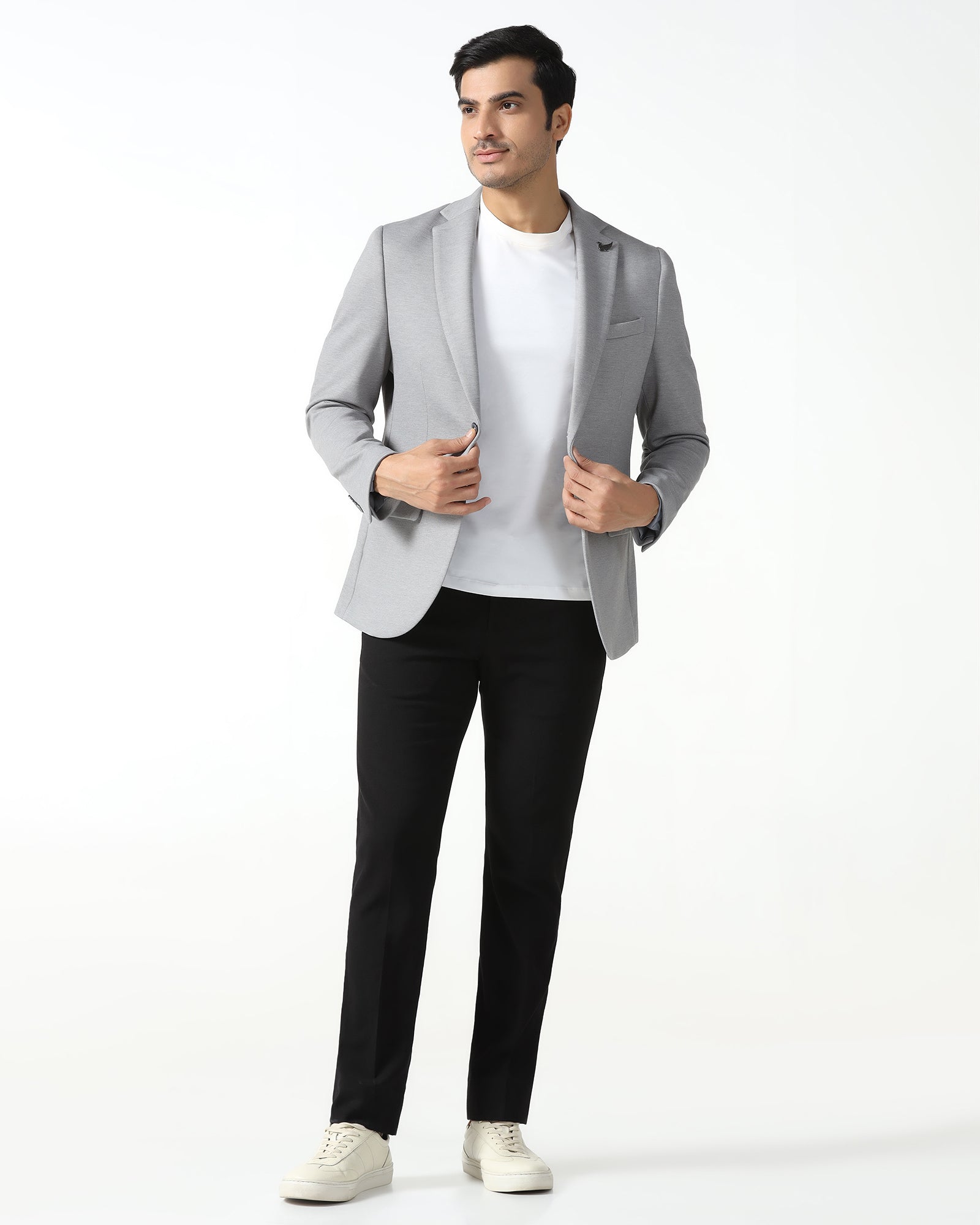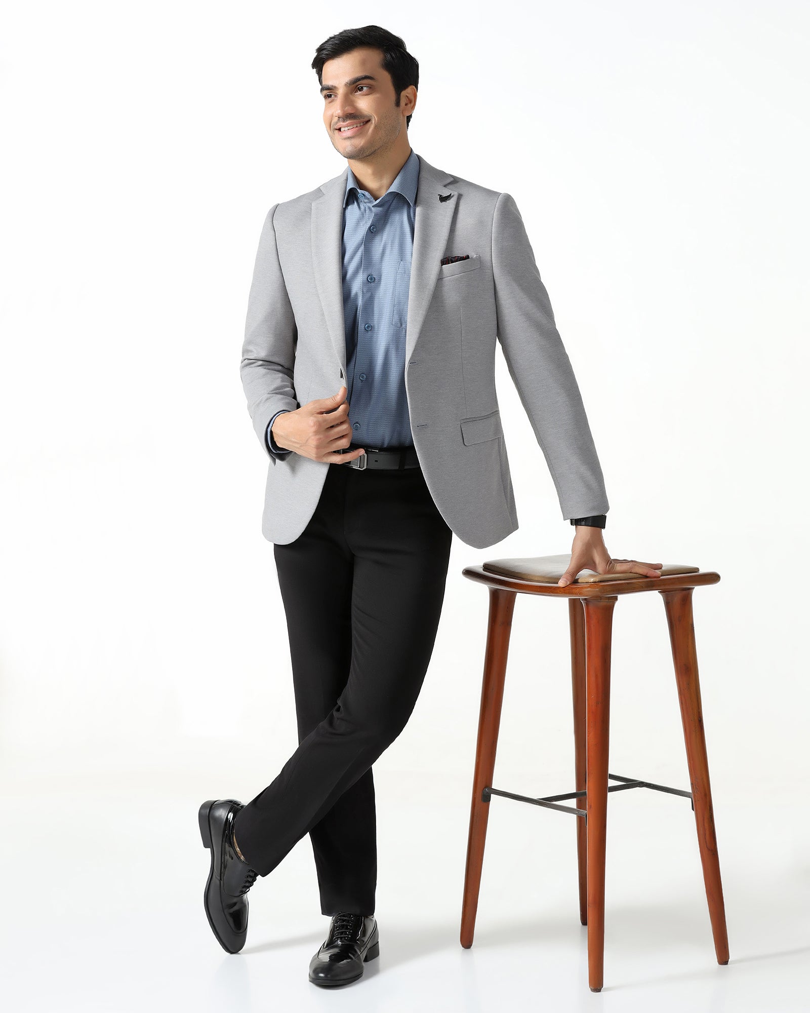 • For an effortless boardroom impact, pair this summer blazer for men with a Blackberrys solid shirt and trousers.