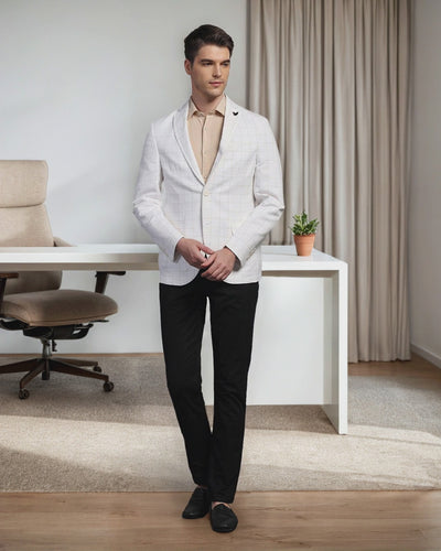Linen Casual Off White Check Blazer - Timothy