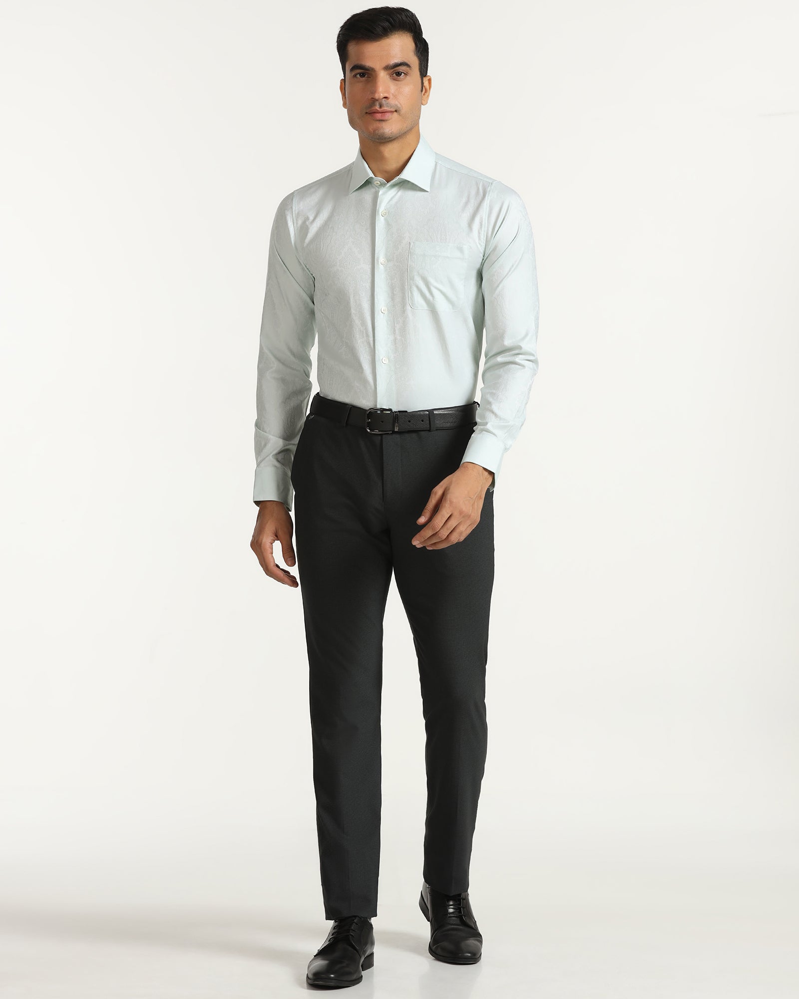 Refine your formal wardrobe with this Jacquard Formal Shirt, crafted from premium luxe wool fabric. The India Fit offers a sharp silhouette, superior craftsmanship, and offset seams for added comfort. A high stance collar, creaseless armholes, and an extended placket provide unmatched comfort.