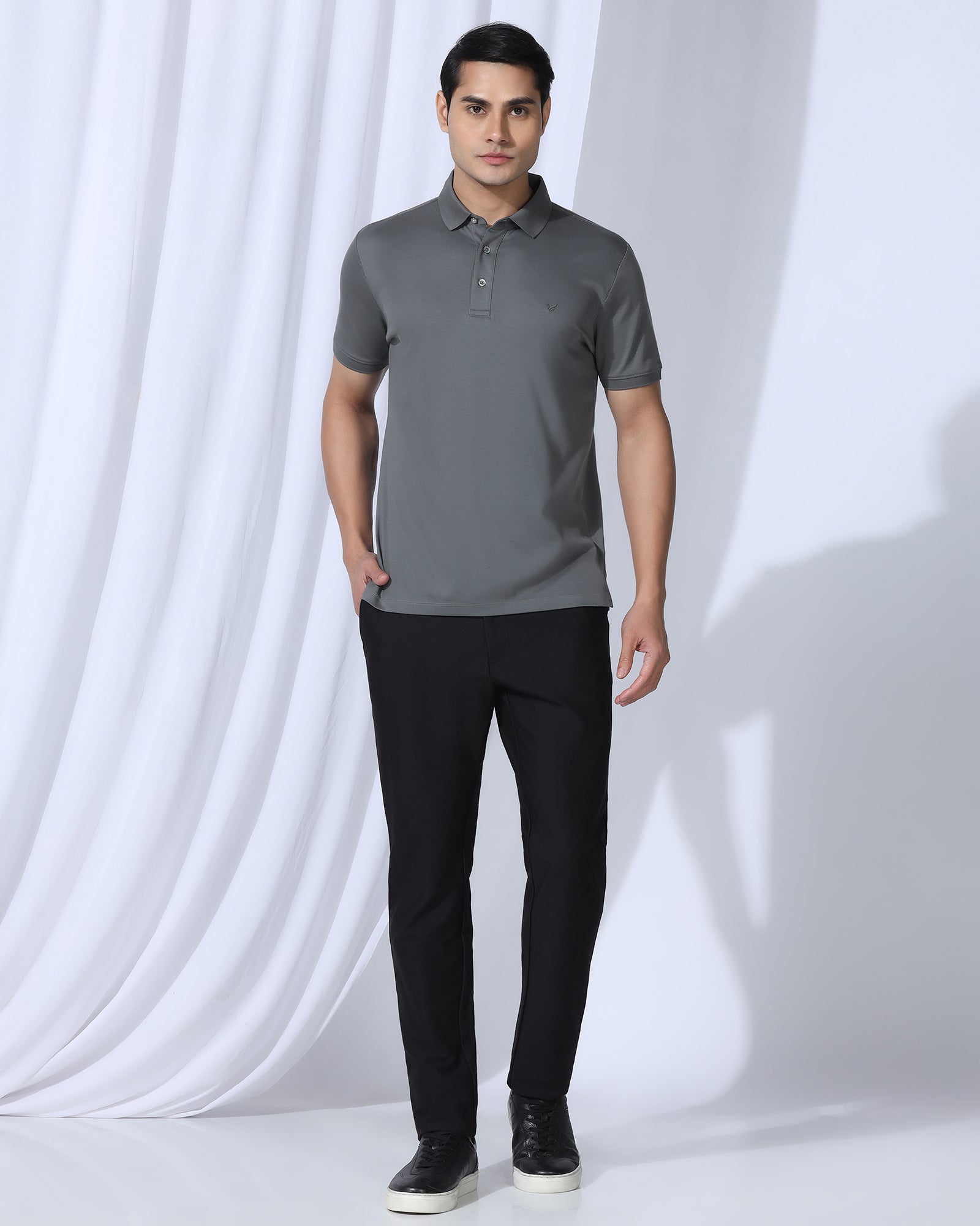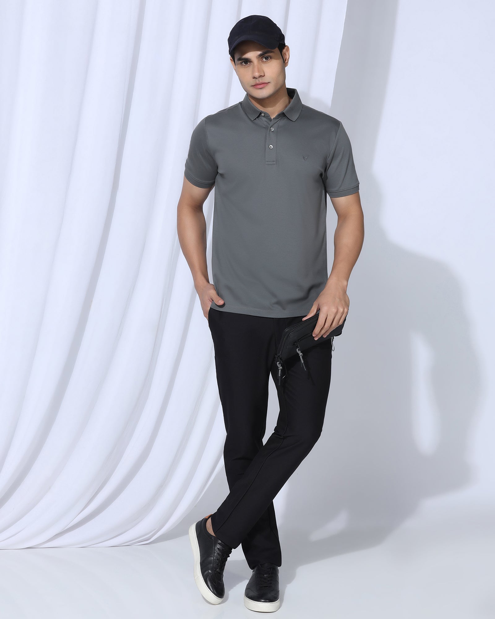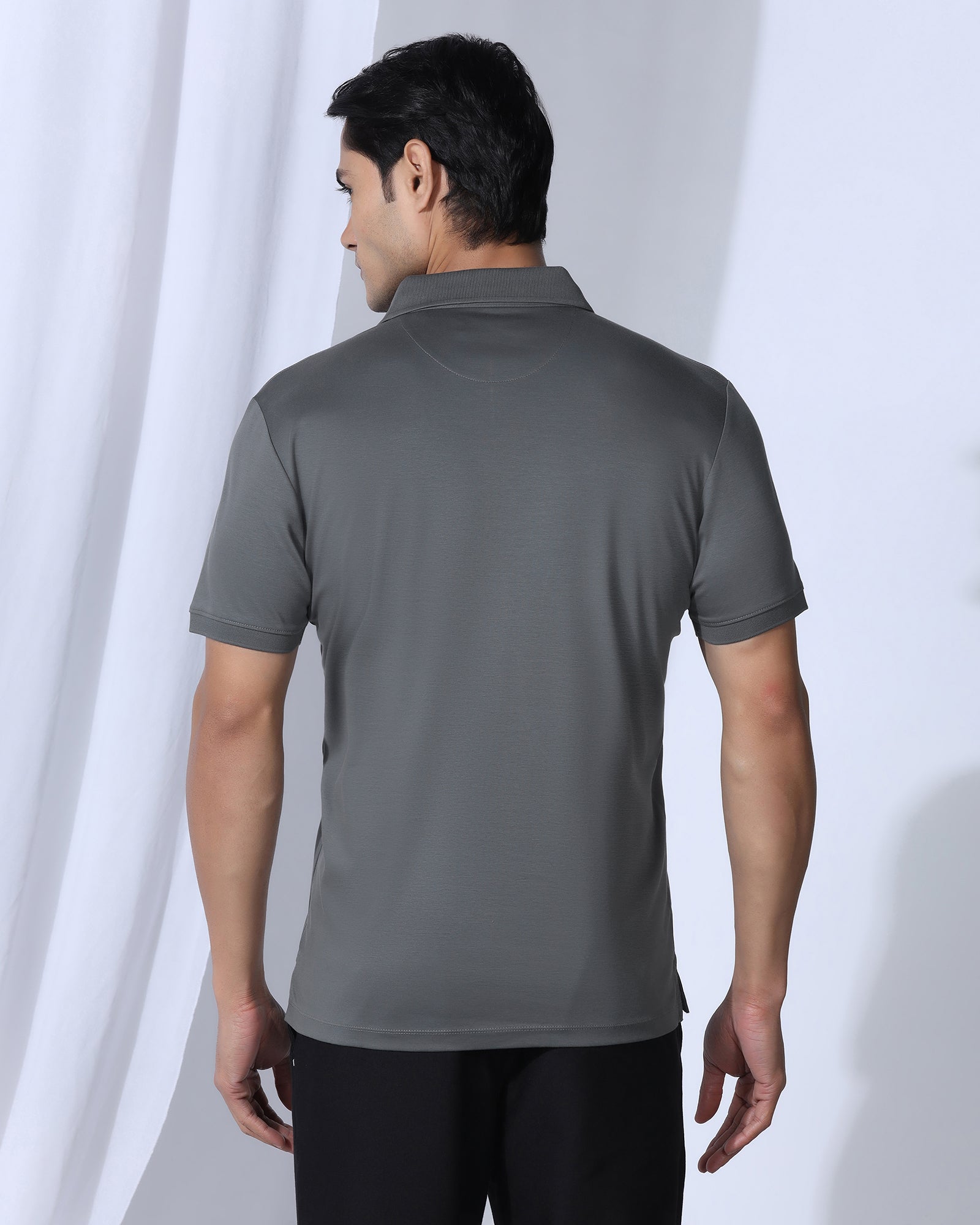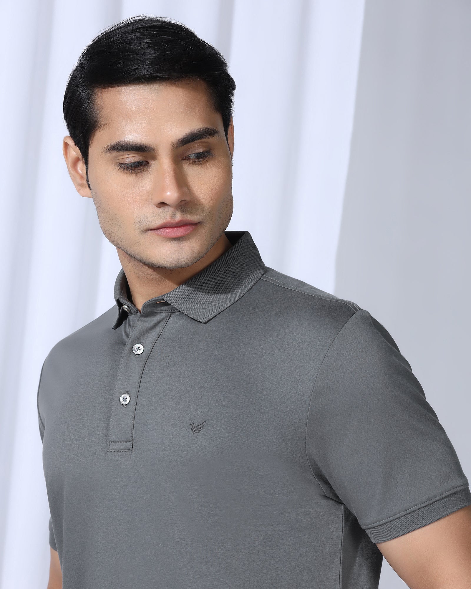 Luxe Polo Charcoal Grey Solid T-Shirt - Toll
