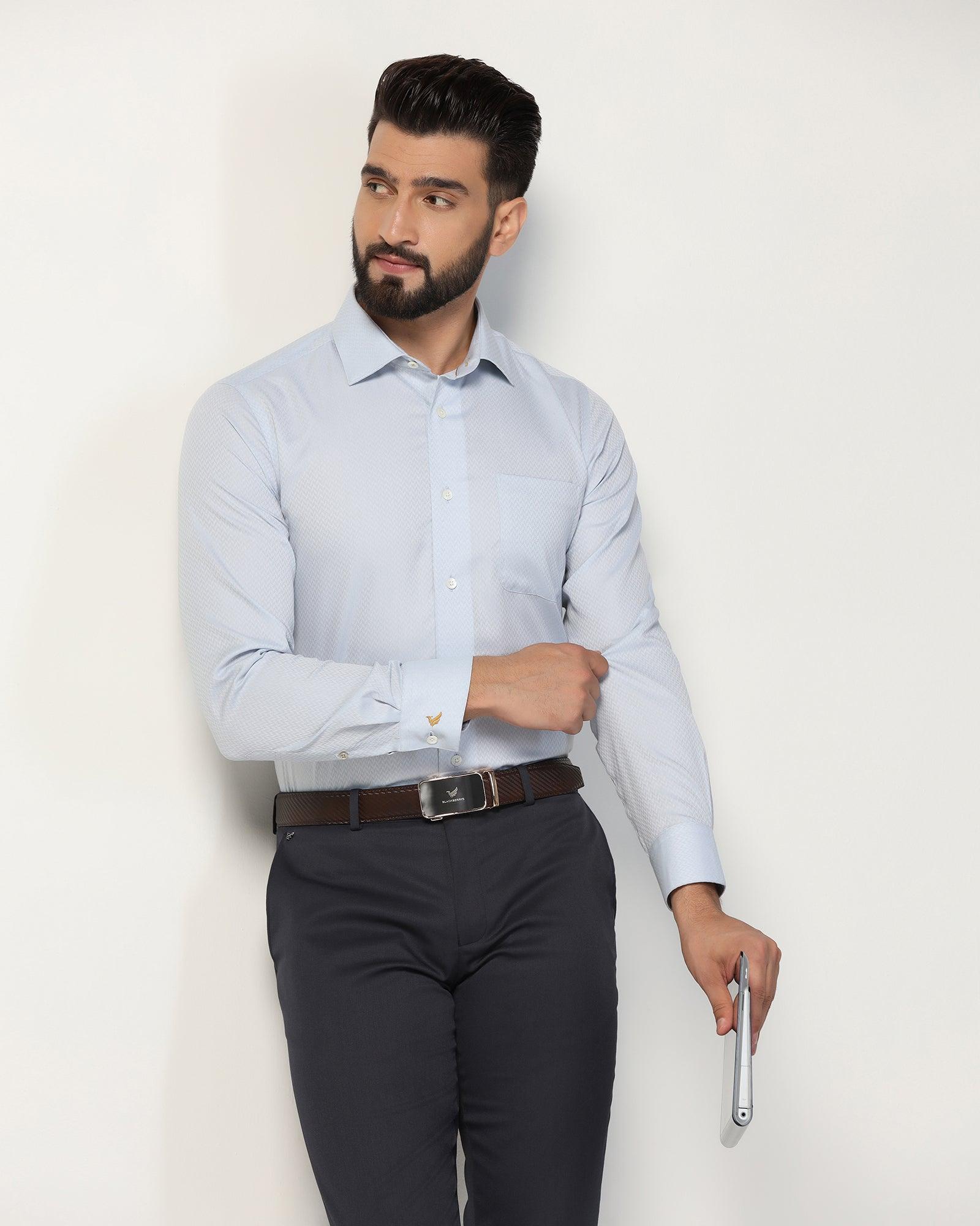 Look cool and be confident with this Textured Formal Shirt. It has a premium luxe fabric, superior craftsmanship, and offset seams for added comfort. This formal shirt has a sharp, high-stance collar and chic textured design, ideal for any suave affair