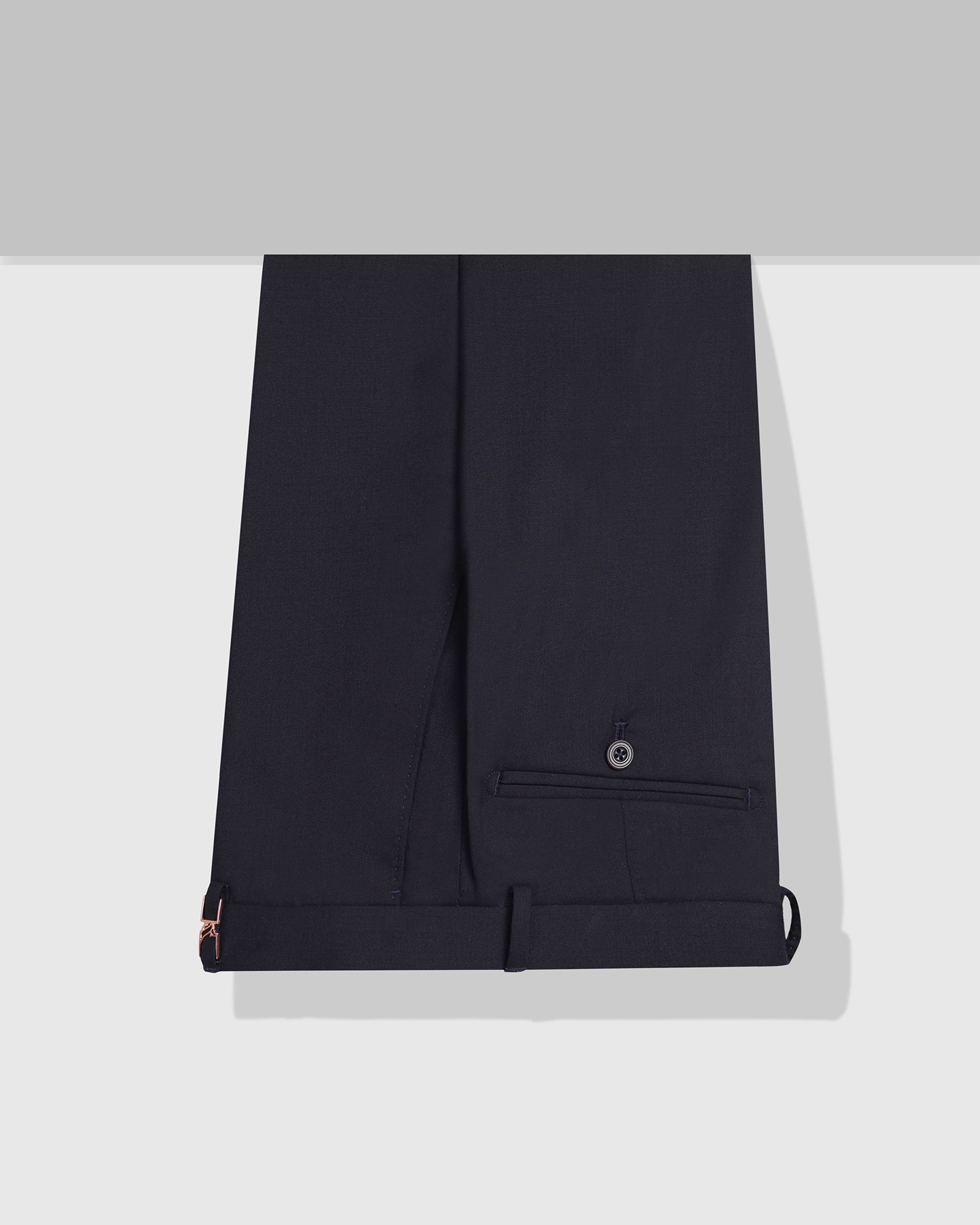 Enhance your wardrobe with the impeccably fitted Formal Trousers for the contemporary gentleman with style. Made with a luxurious blend of fabrics that provide a polished look with the luxurious comfort of a B-95 (slim comfort) fit. With excellent craftsmanship with offset seams for added comfort, knee-lining luxury, and cross pockets, these solid trousers epitomize classy tradition. Featuring a mid-rise waist to bring balance to your upper body, they can be matched in a formally styled ensemble.
