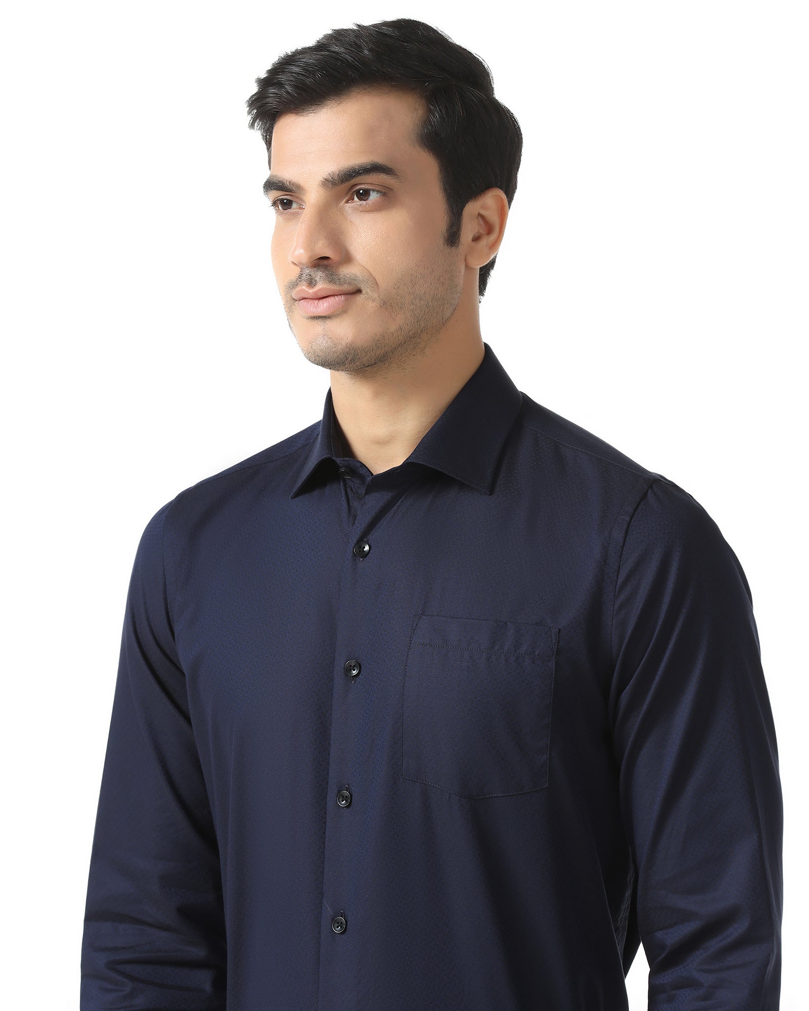 The Formal Shirt understands elegance in a new light, being made with luxury Giza yarn and a refined dobby woven texture. Designed in an India fit with a high stance collar and extended placket, it has a sophisticated shape. The subtle sheen and clean chest make this shirt perfect for all occasions.