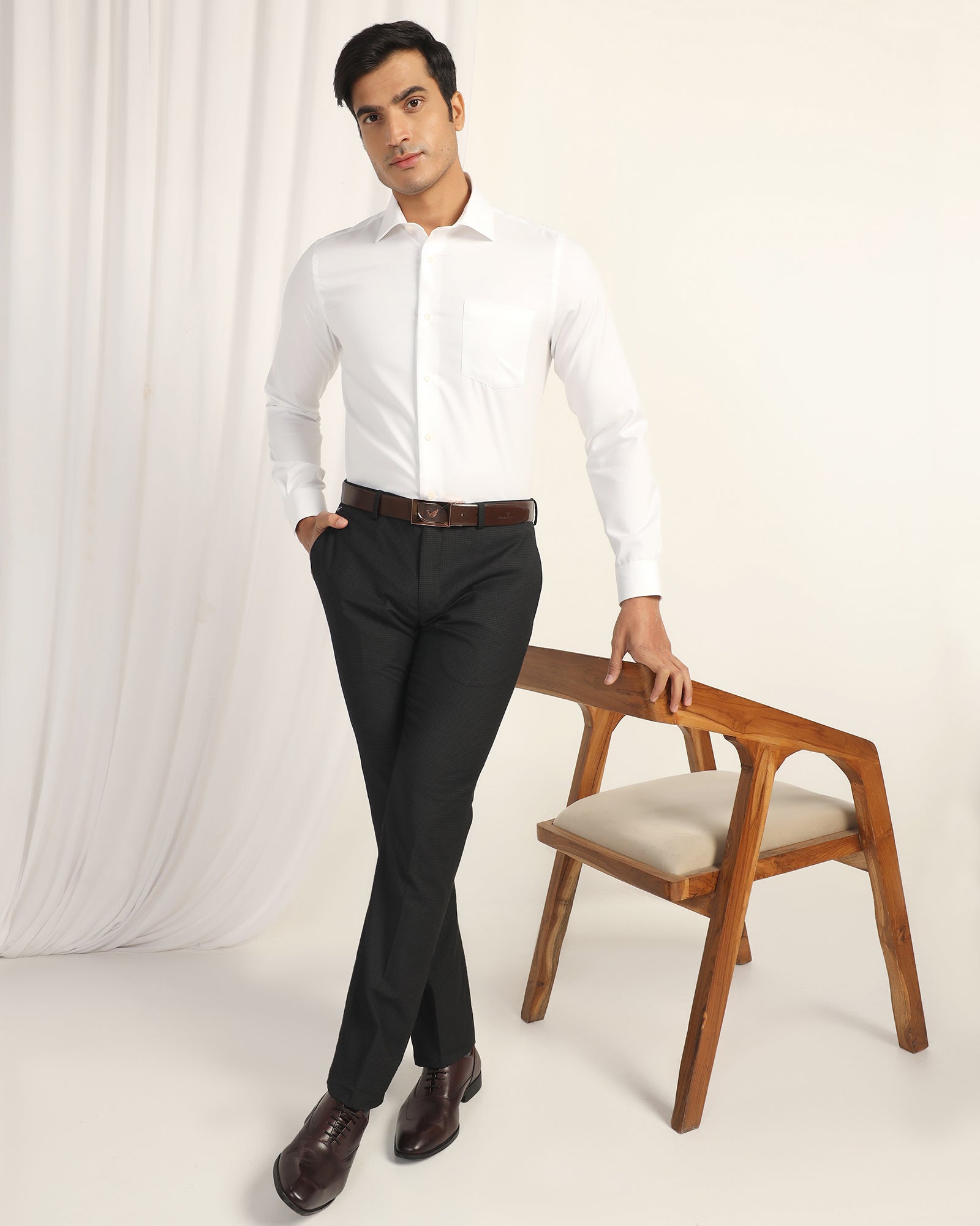 Achieve perfection with the Solid Formal Shirt. Made from premium dobby woven fabric with a DP (durable press) rating of 3.5 to 4, it offers an India fit for a sharp look. Made for all day flawless perfection for man on the go, it features wrinkle resistance and taped seams, ensuring chic class.