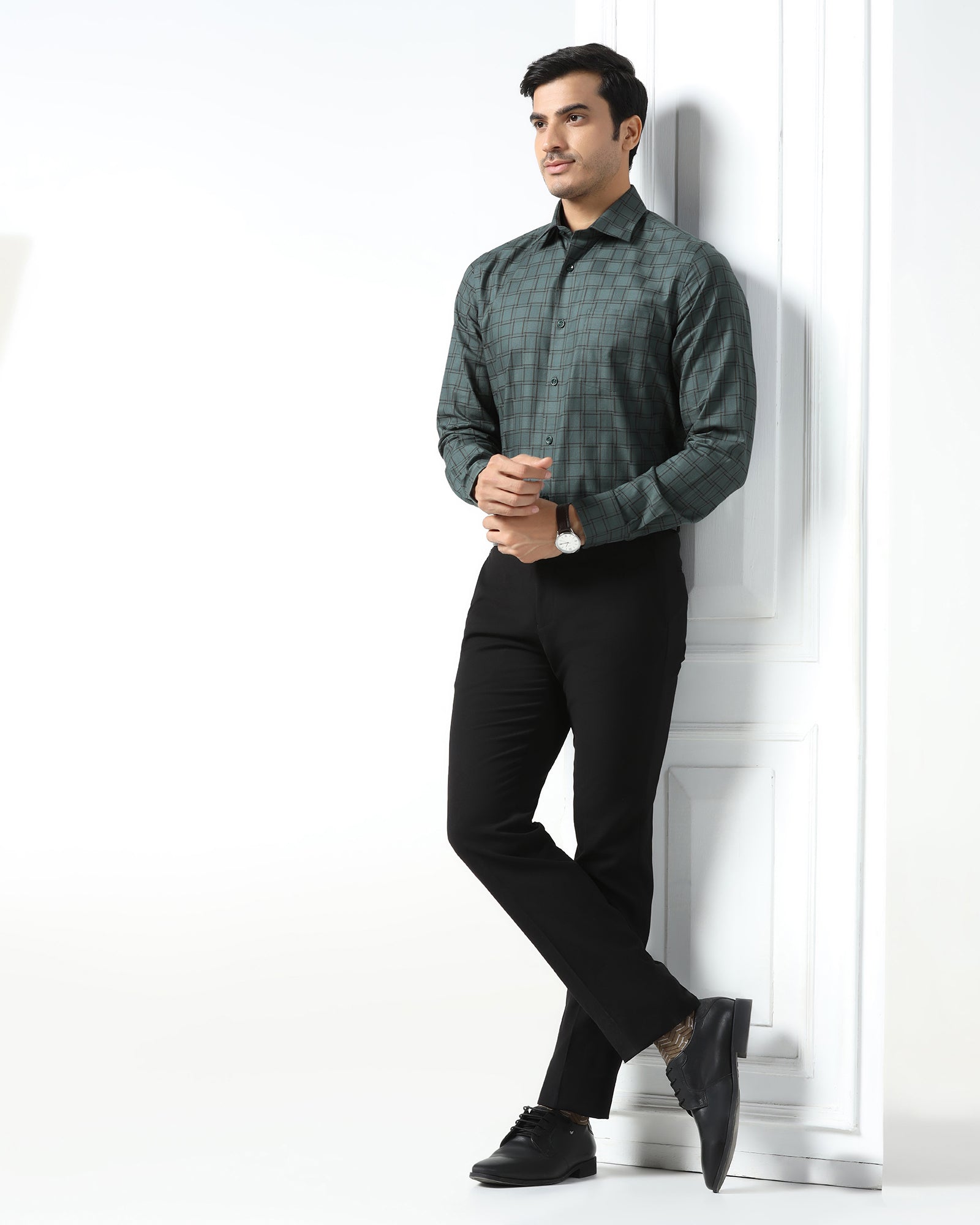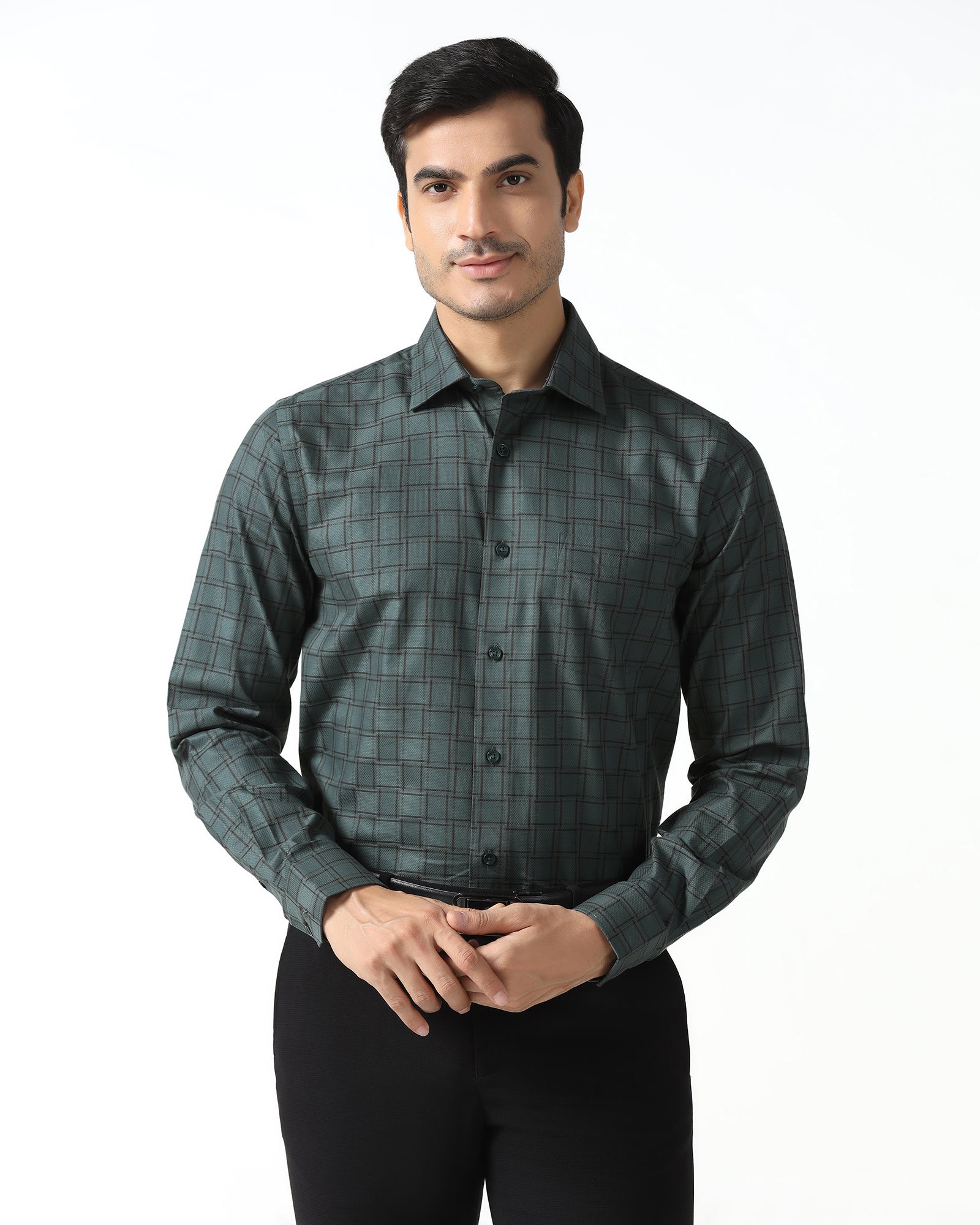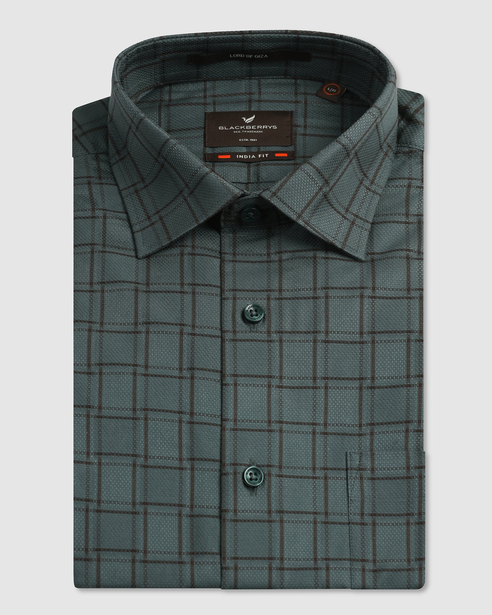 From thread to end this Formal Shirt is your ideal combination of day to night versatility and understated sophisticated charm. An exquisite shirt made from luxurious Giza yarn with a subtle sheen, detailed with a check pattern, which lends itself to classiness. This formal shirt is designed in an India fit with a tailored shape, high stance collar and extended placket to highlight the body's natural silhouette. With a practical chest pocket, it is perfect for everything from formal boardroom meetings to dinners.