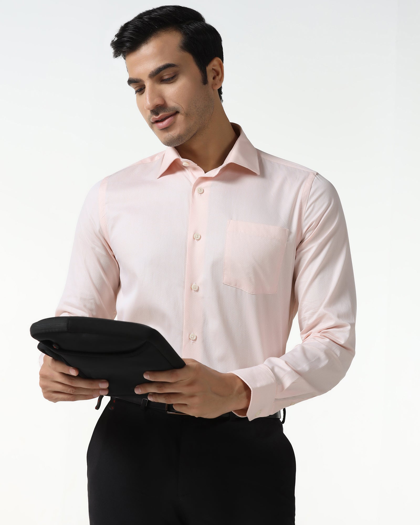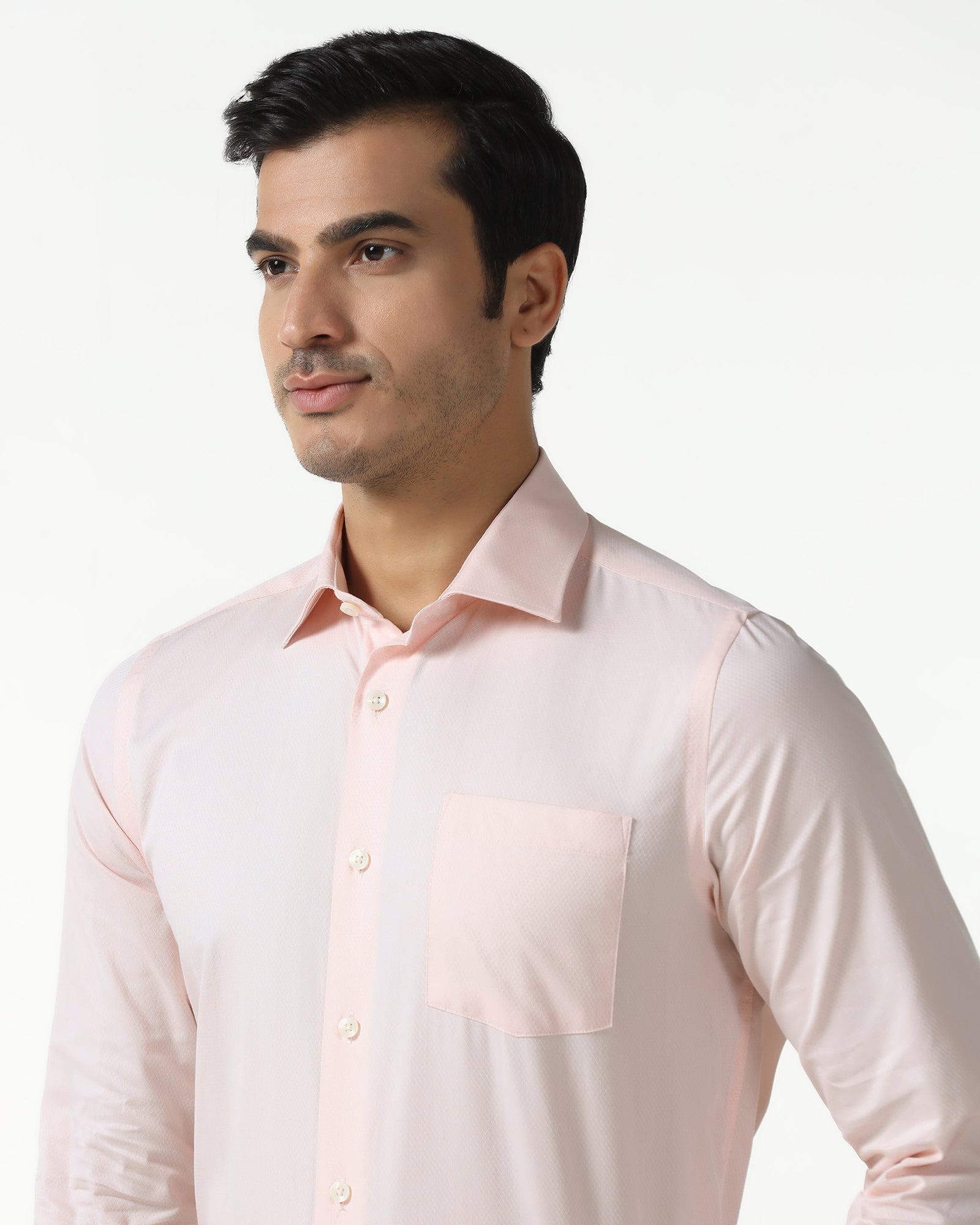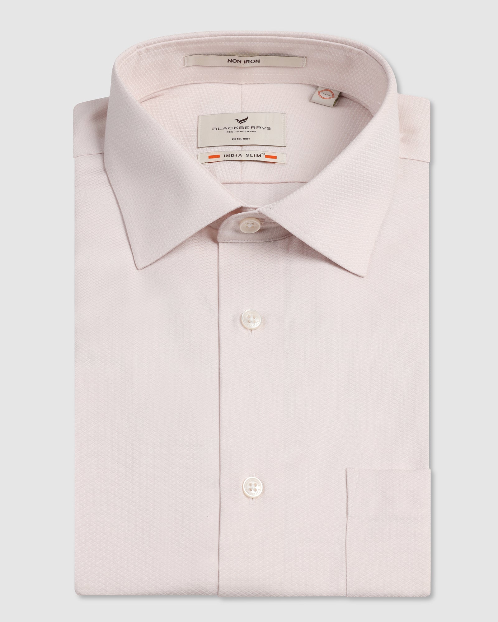 Liven up your formal wardrobe with this expertly designed Formal Shirt made from fine dobby woven fabric, tailored to a sharp India fit. The charming high stance collar and extended placket give it a modern touch, making it a versatile staple for anything from the boardroom to a dinner date. The clean design and subtle texture round out your formal style with a contemporary touch.