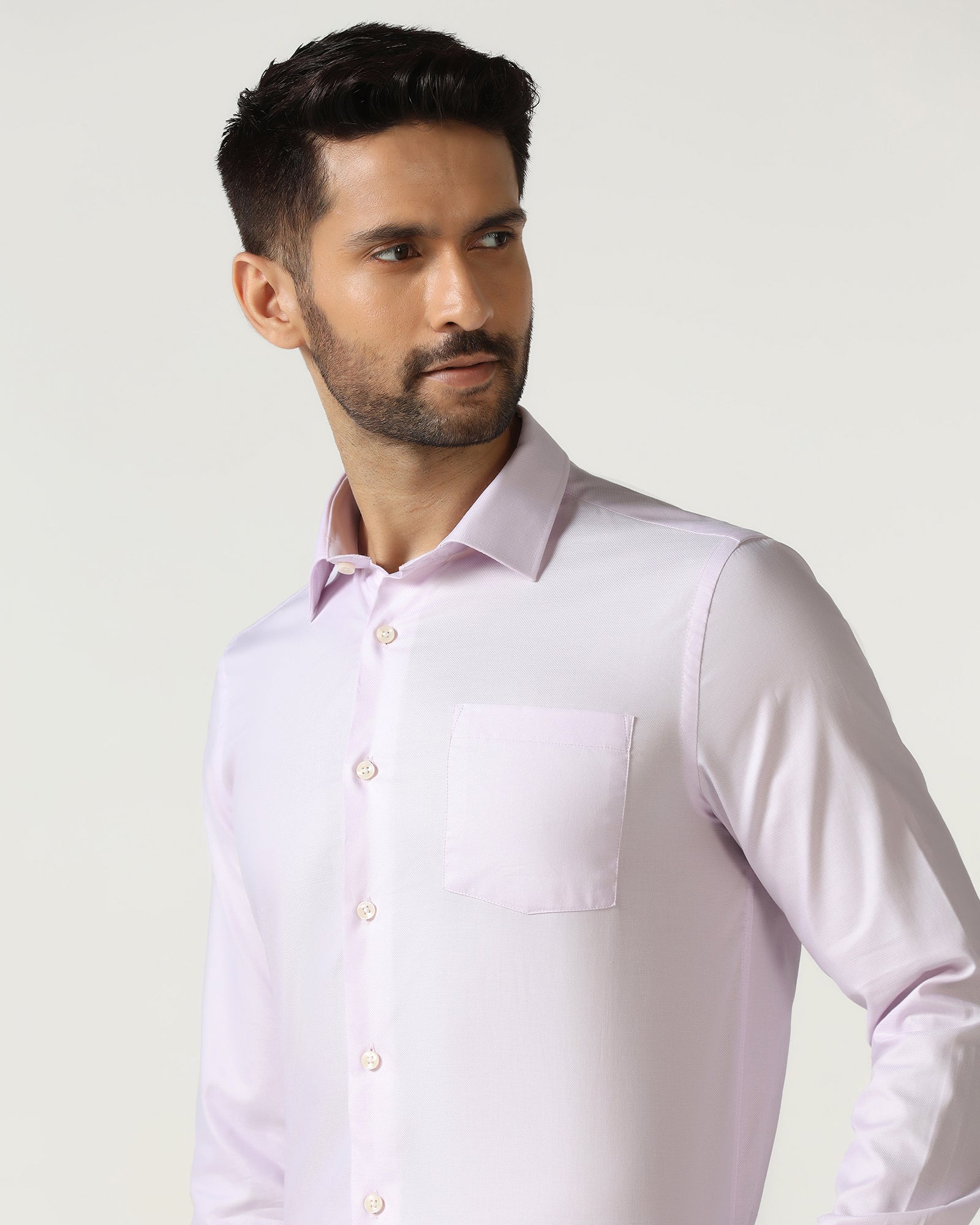 Polished and confident, this Formal Shirt is made from dobby woven fabric and has been tailored in an India fit to give a clean structure. The high stance collar and extended placket provide a well considered detail which will suit the sharpest of professional or evening looks. Designed for classy grace, this shirt brings together texture, balance, and polish.