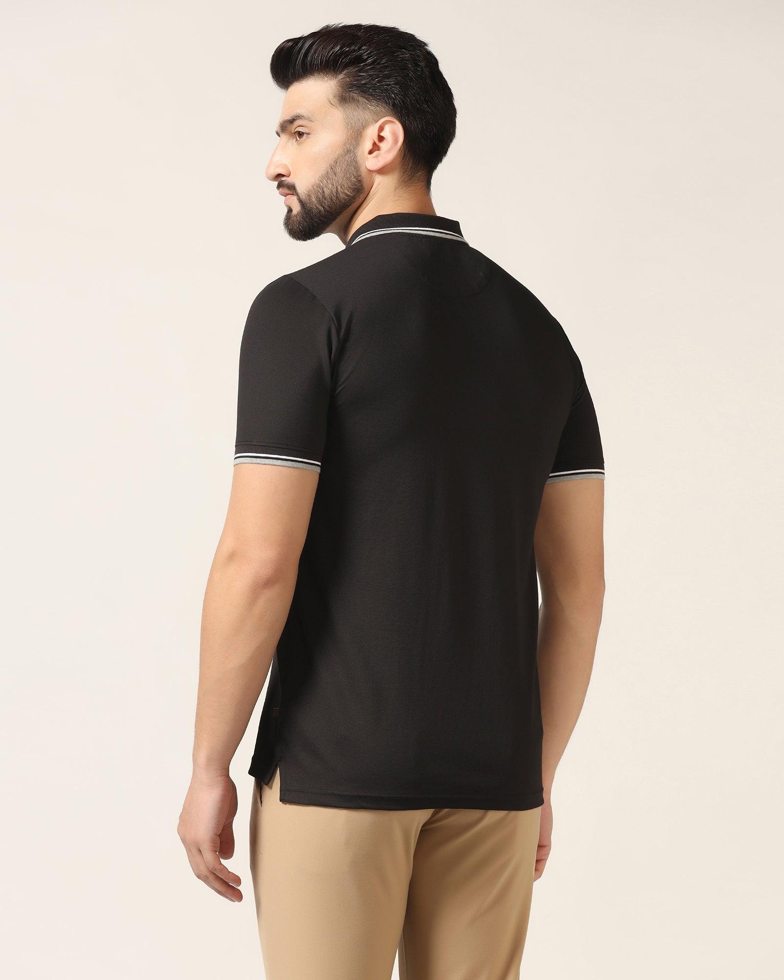Introduce a touch of modernity to your casual collection with the Black Polo Neck T-Shirt, epitomizing refined style. Tailored to a slim fit, this shirt showcases half sleeves and remarkable stretchability, ensuring both comfort and a modern silhouette. Crafted from knitted fabric in a black hue, this stunning t-shirt exudes understated luxury.