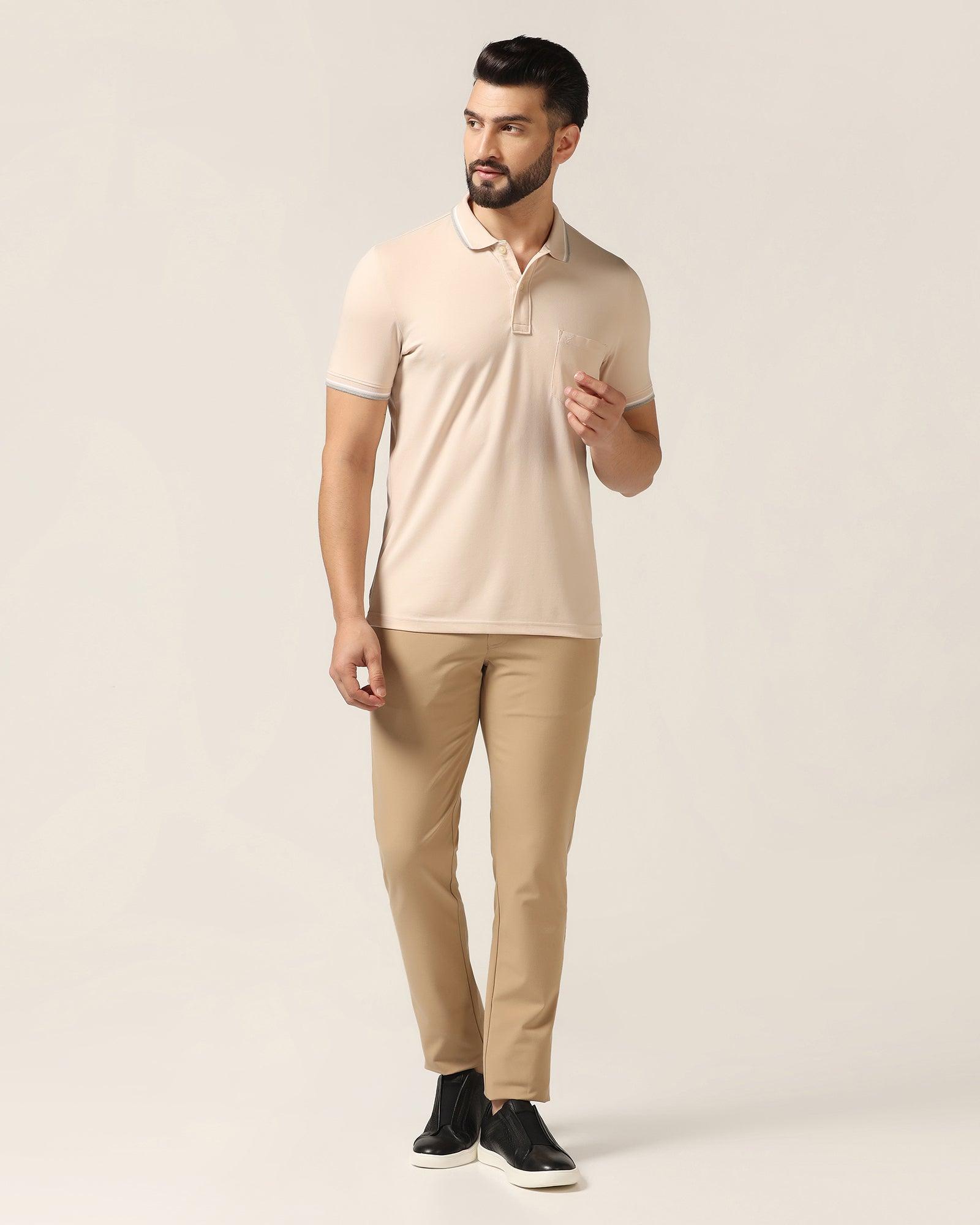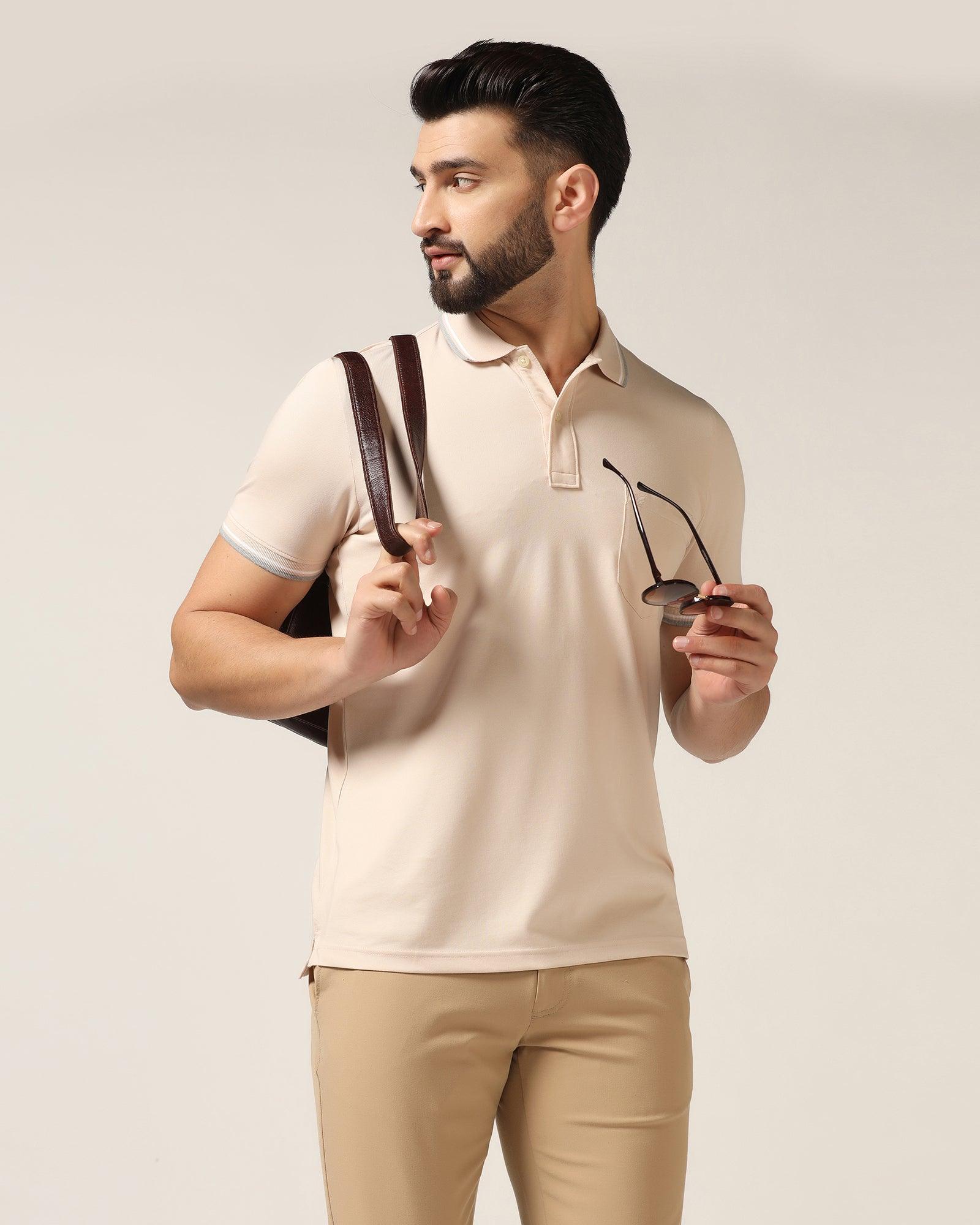Elevate your casual style with the Cream Solid T-Shirt, a pinnacle of refined comfort. Crafted from top-notch stretchable knitted fabric, this slim-fit t-shirt ensures comfort and style to keep you cosy throughout the day. The exquisite cream hue adds a touch of sophistication, while pocket detailing enhances its laid-back charm, making it a stand-out piece.