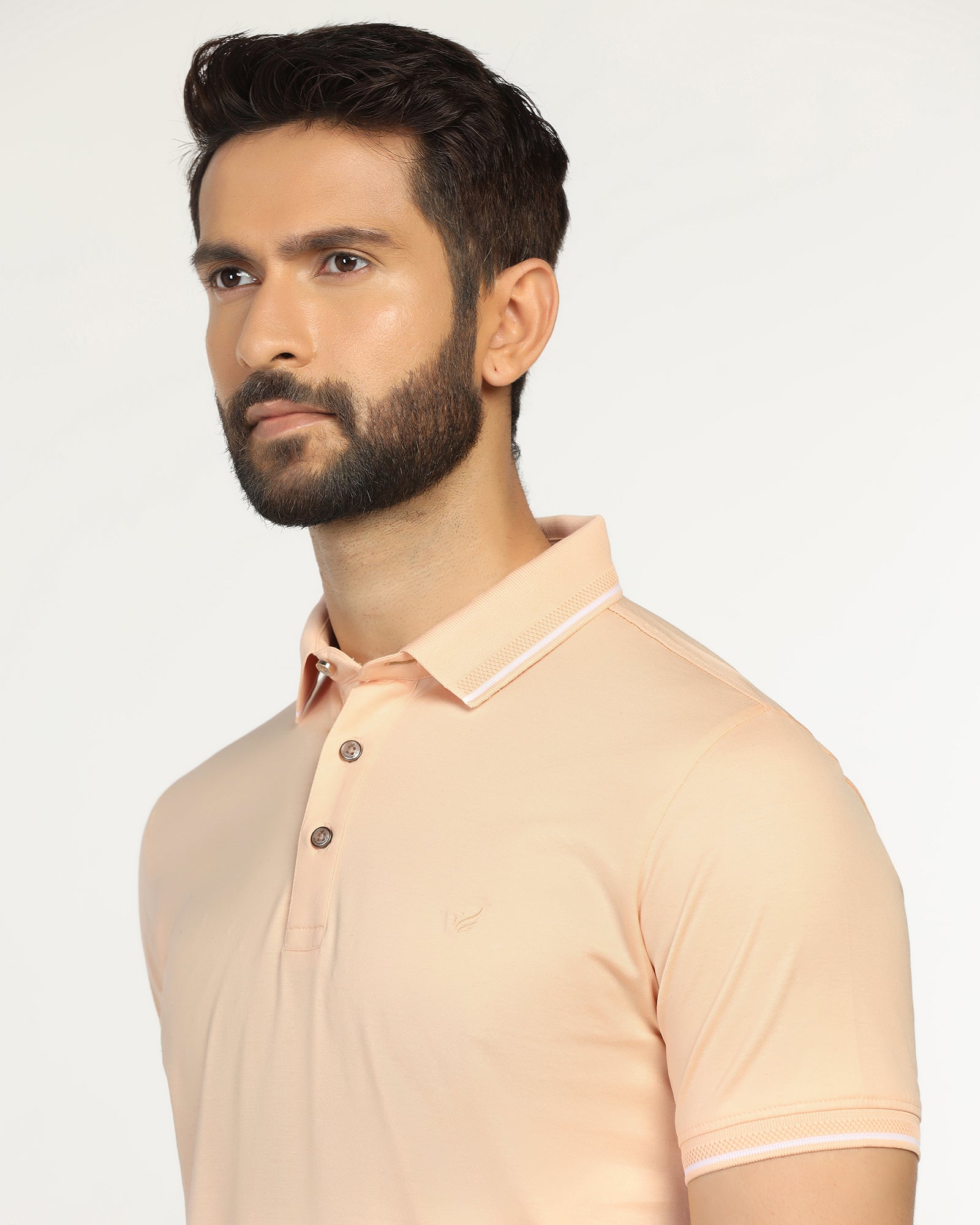 Indulge in contemporary fashion with the Solid Prime Polo T-Shirt, designed for easy grace. Crafted with a lustrous finish from 2-ply fine Giza yarn and mercerized cotton fabric, it offers a silky-soft touch. The slim fit, single jersey knit and button closure ensure a cool and classy silhouette.